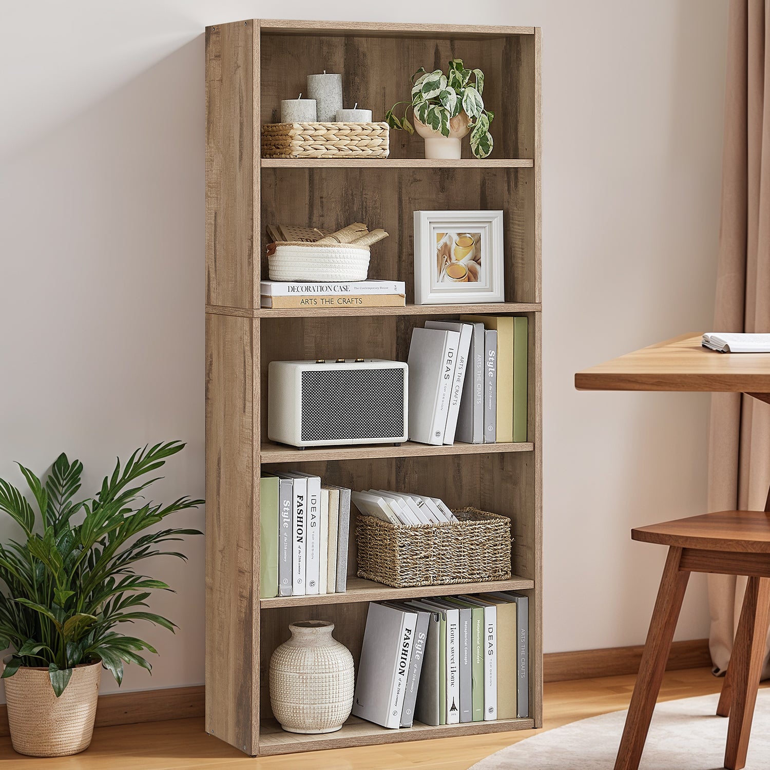 5-Tier Bookcase, Adjustable Open Shelf, 23.6" Wide Storage Unit for Books, Decor, Easy Assembly, Camel Brown