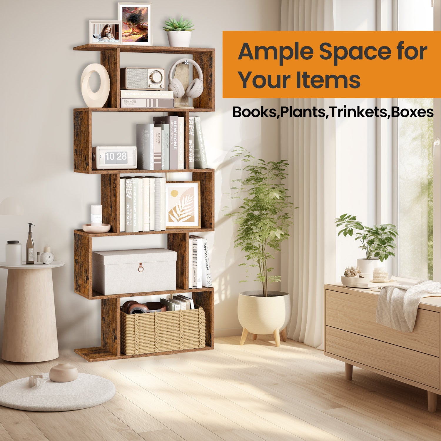 5-Tier Bookcase & Room Divider - Freestanding Storage Shelf for Home, Office, 27.6"L x 62.6"H, Decorative Display Shelving, Rustic Brown