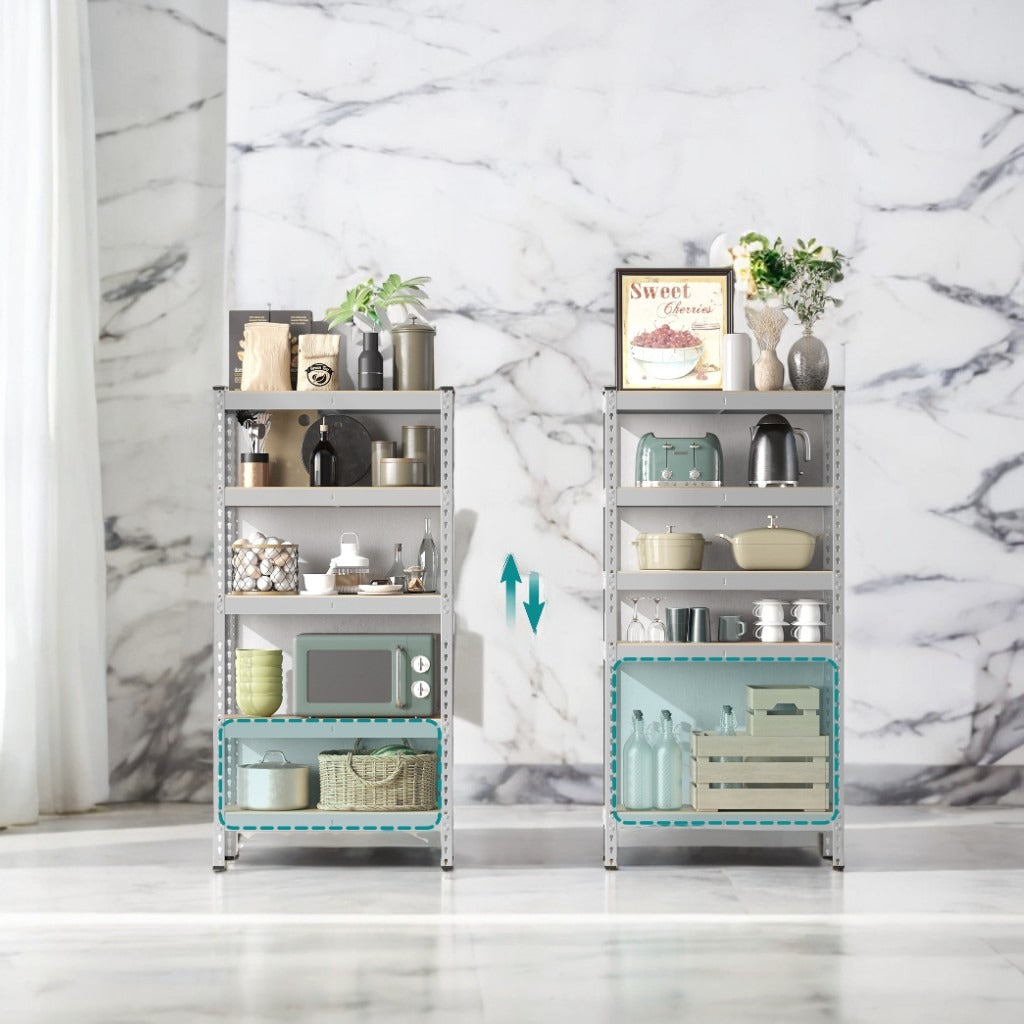 5-Tier Heavy Duty Storage Shelves, 2310 lb Capacity, Boltless Adjustable Shelving Unit, 17.7"x35.4"x70.9", for Garage Basement Study, Divisible into 2 Units, Silver,Beige