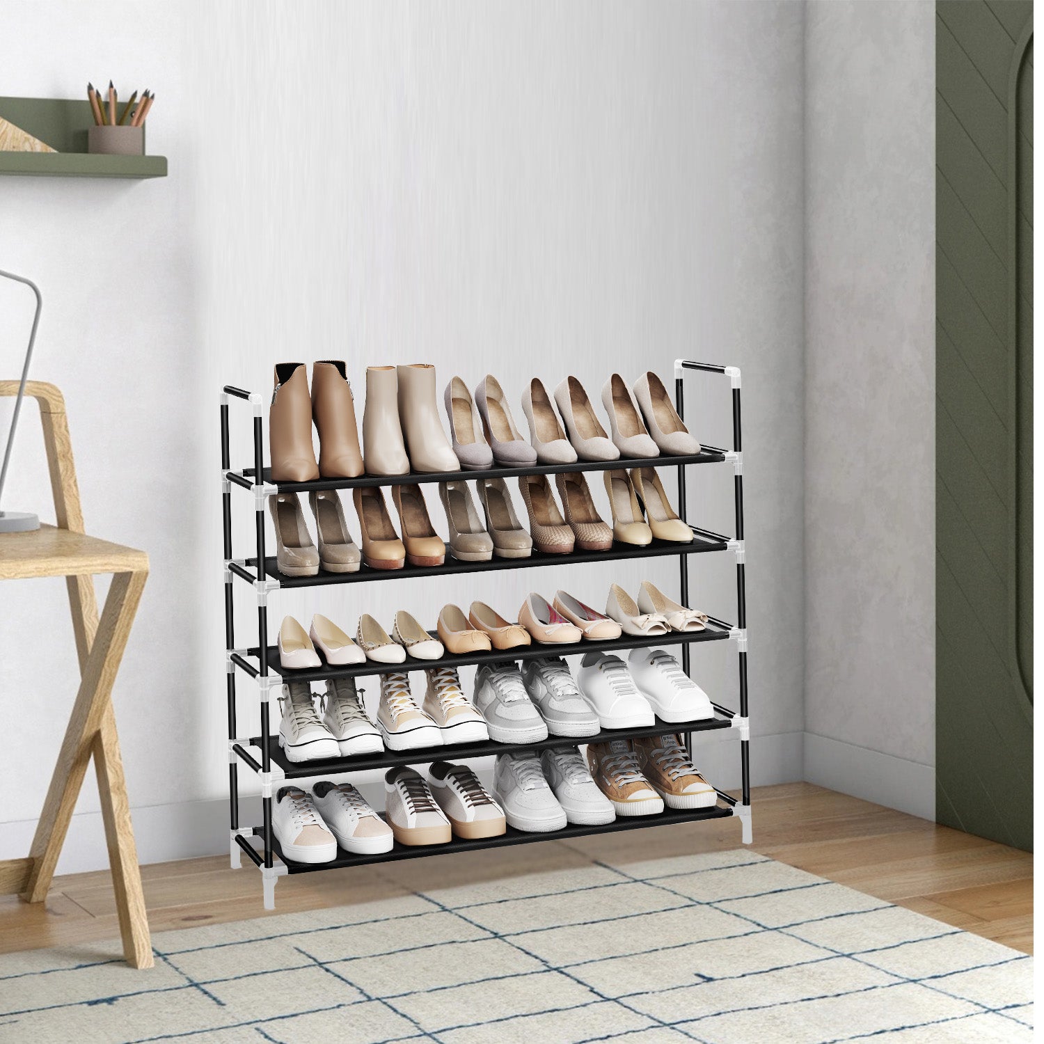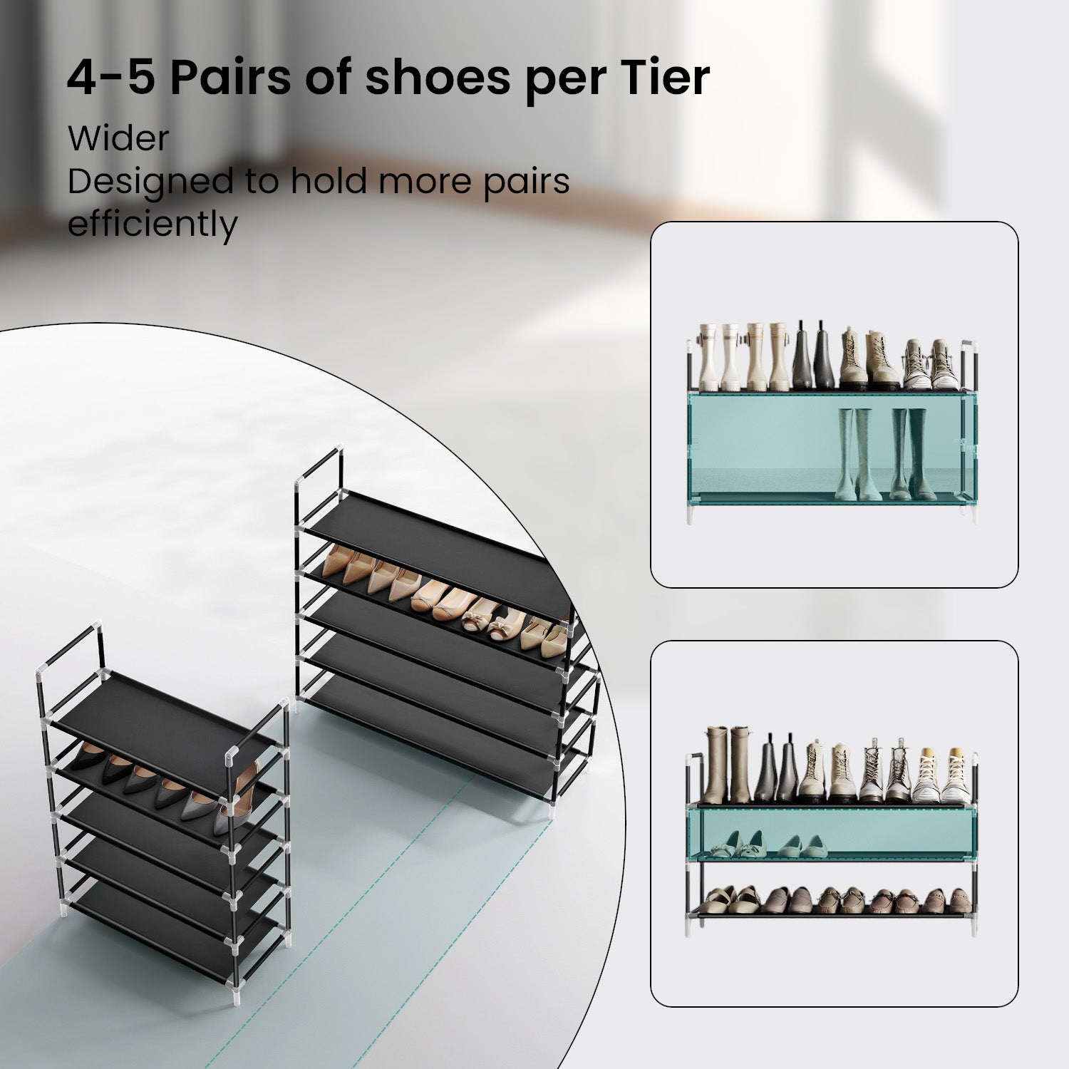 5-Tier Slim Shoe Rack for Hallway,Closet, Space-Saving Storage with Metal Frame & Non-Woven Shelves, Holds 20-25 Pairs, Black