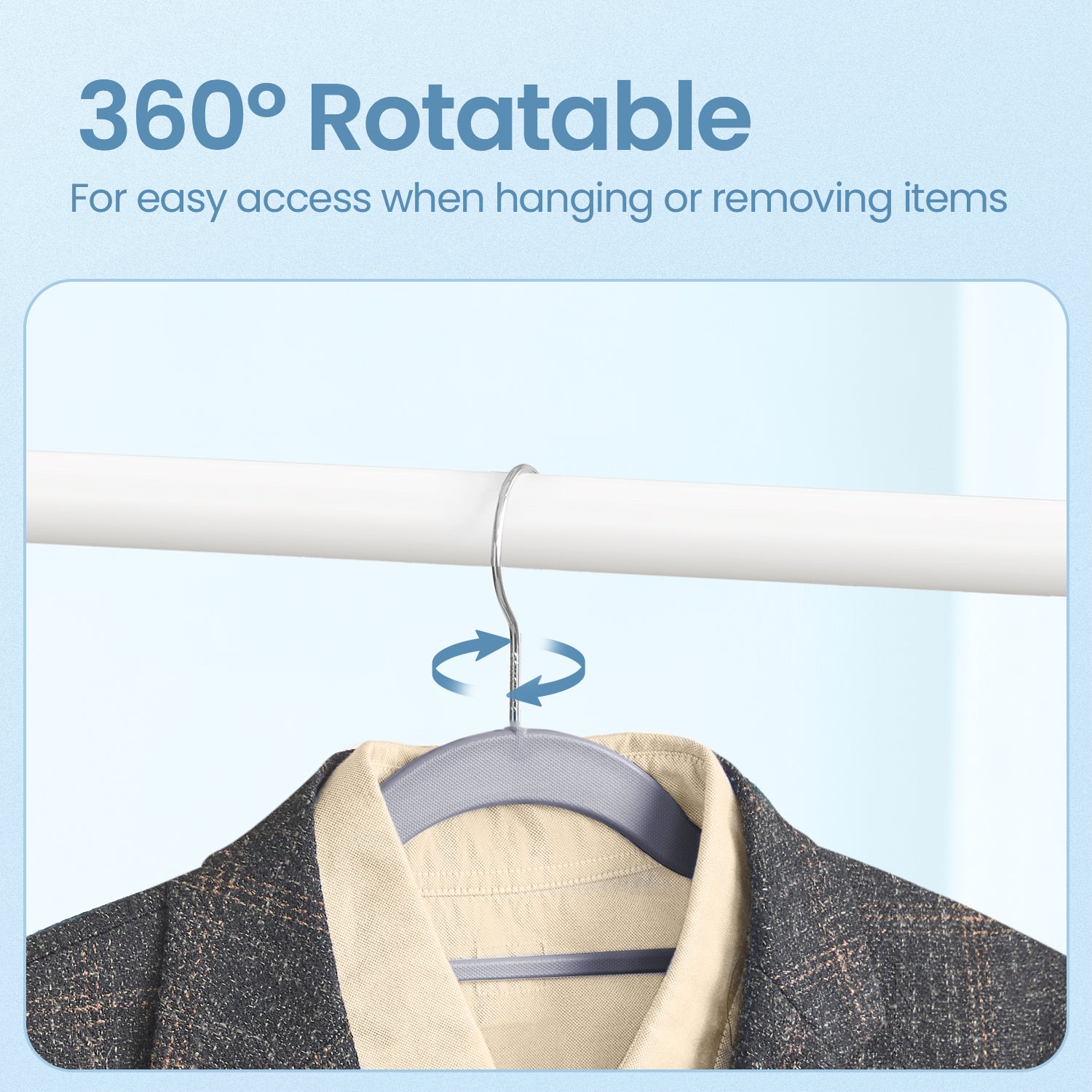 50-Pack Heavy-Duty Non-Slip Clothes Hangers, Slim Space-Saving Design, 360° Swivel Hook, 16.5" Wide, Holds Up to 11 lb, for Coats,Pants,Scarves,Ties, Light & Dark Gray