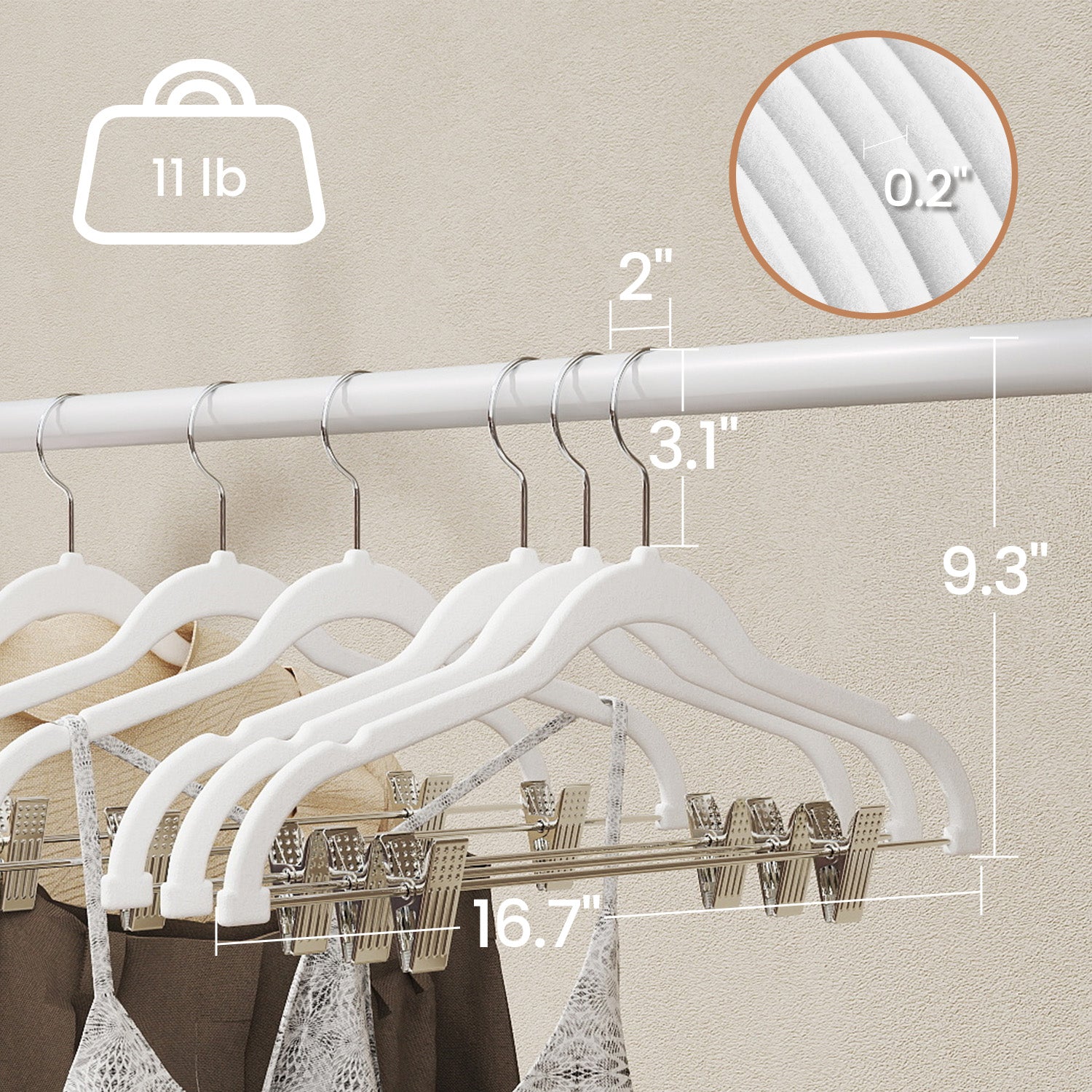 50-Pack Velvet Hangers with Adjustable Clips, 16.7-Inch Slim Non-Slip Clothes Hangers for Pants, Skirts, Dresses, Space Saving, White