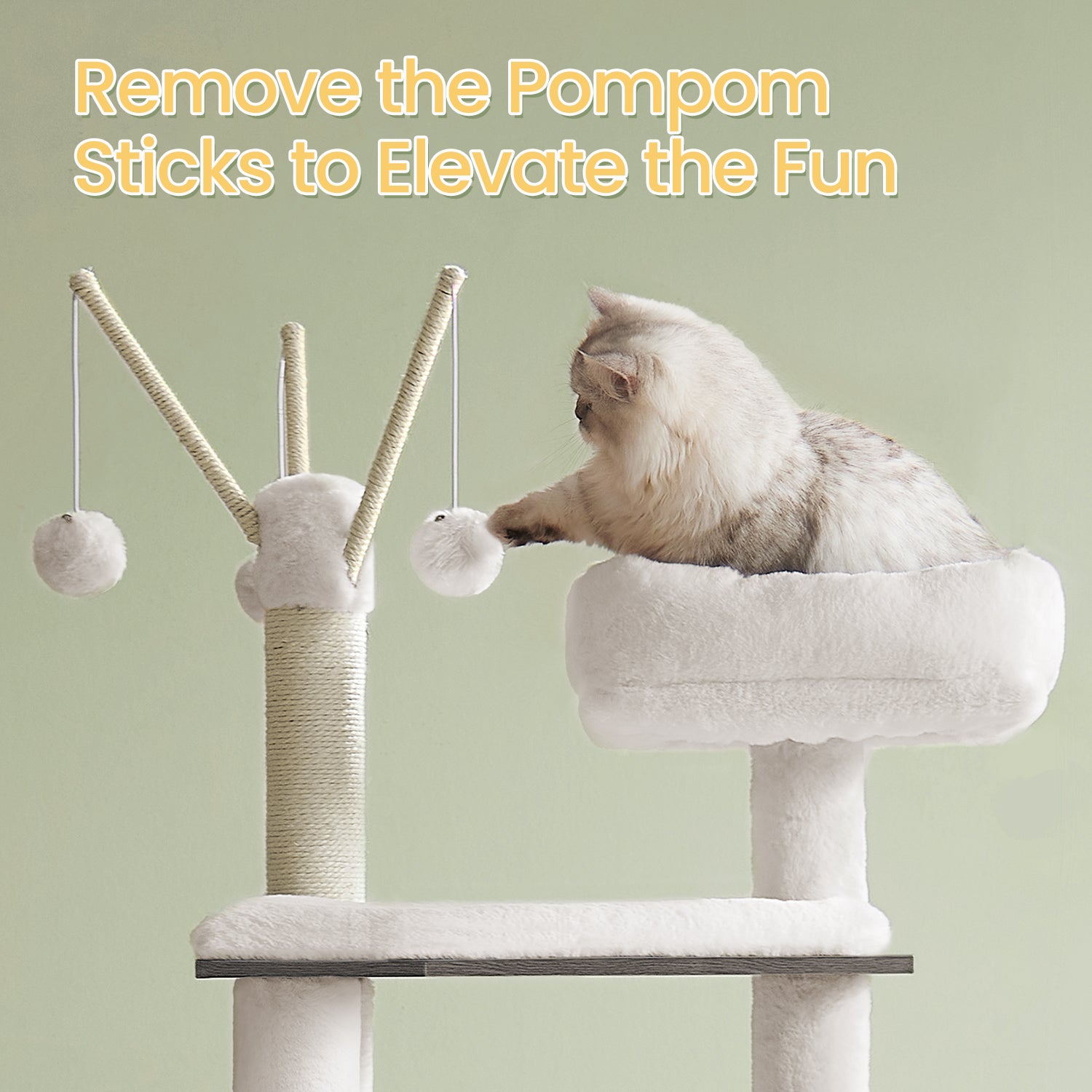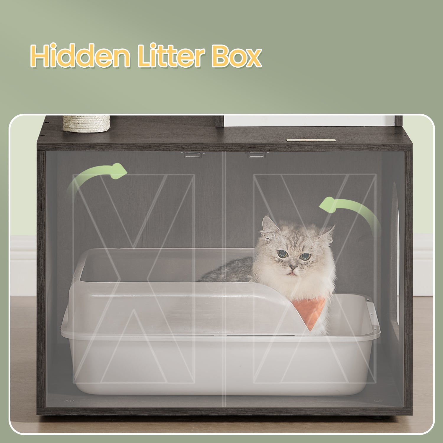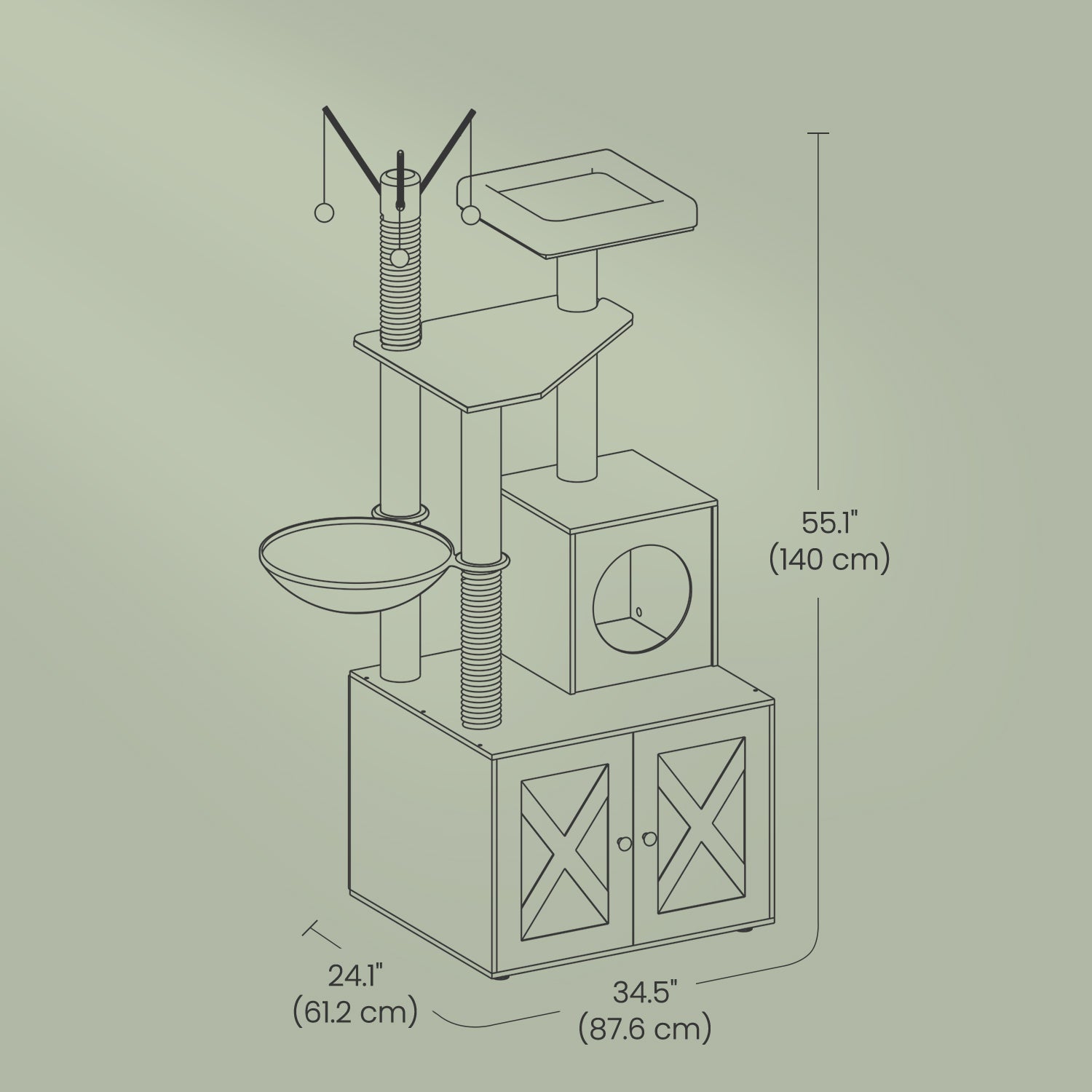 55.1" 2-in-1 Cat Tree & Litter Box Enclosure, Modern Cat Tower with Scratching Posts, Removable Toys, Space-Saving Design, Misty Gray