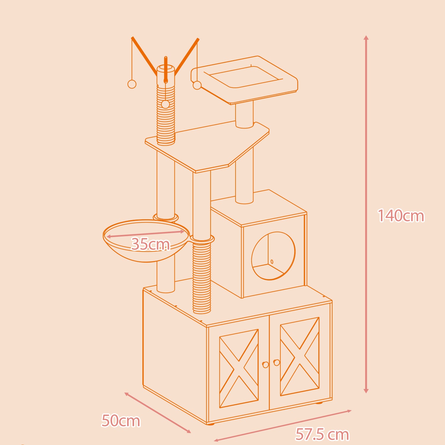 55.1" 2-in-1 Modern Cat Tree & Litter Box Enclosure, Multi-Level Cat Condo with Scratching Posts, Hidden Storage, Cloud White