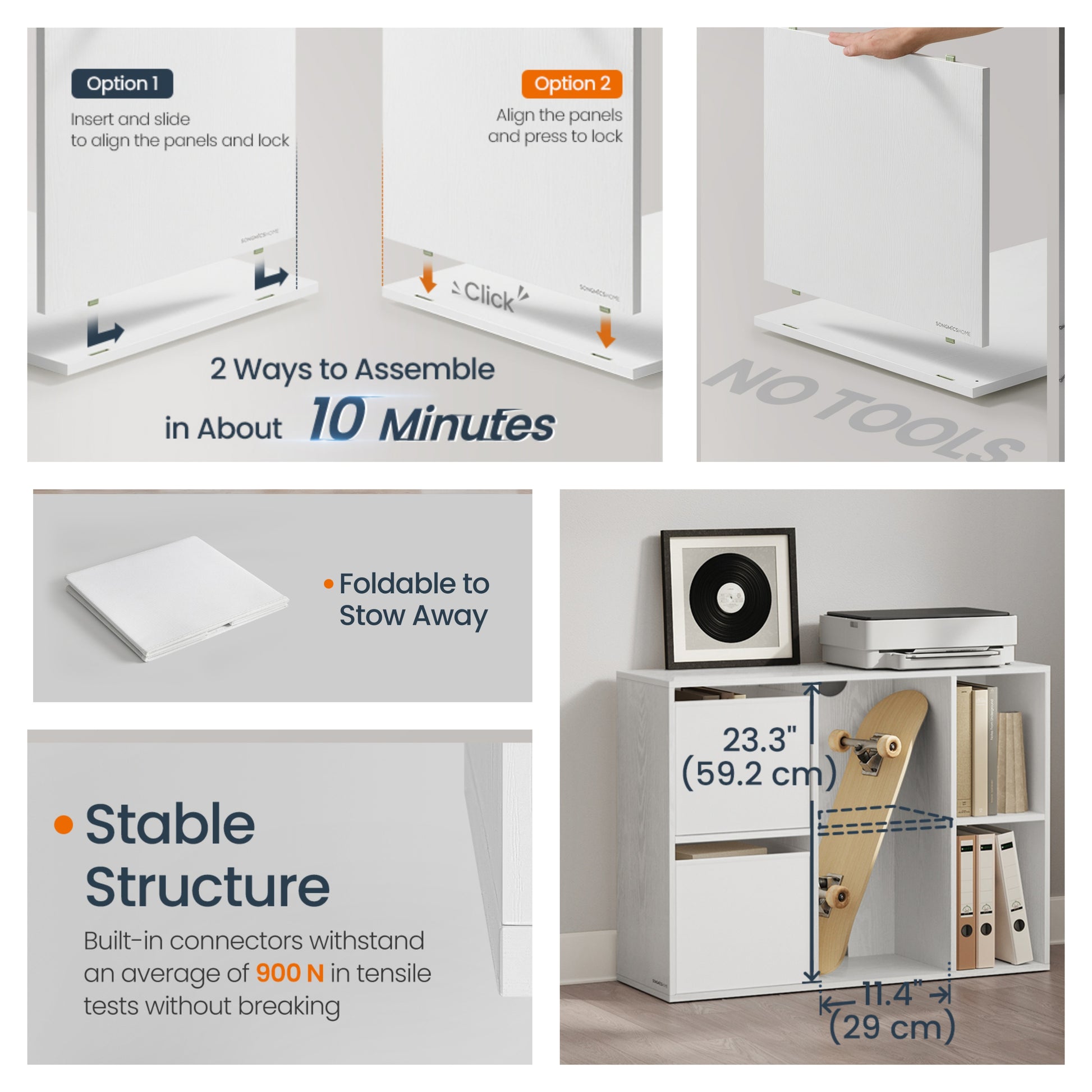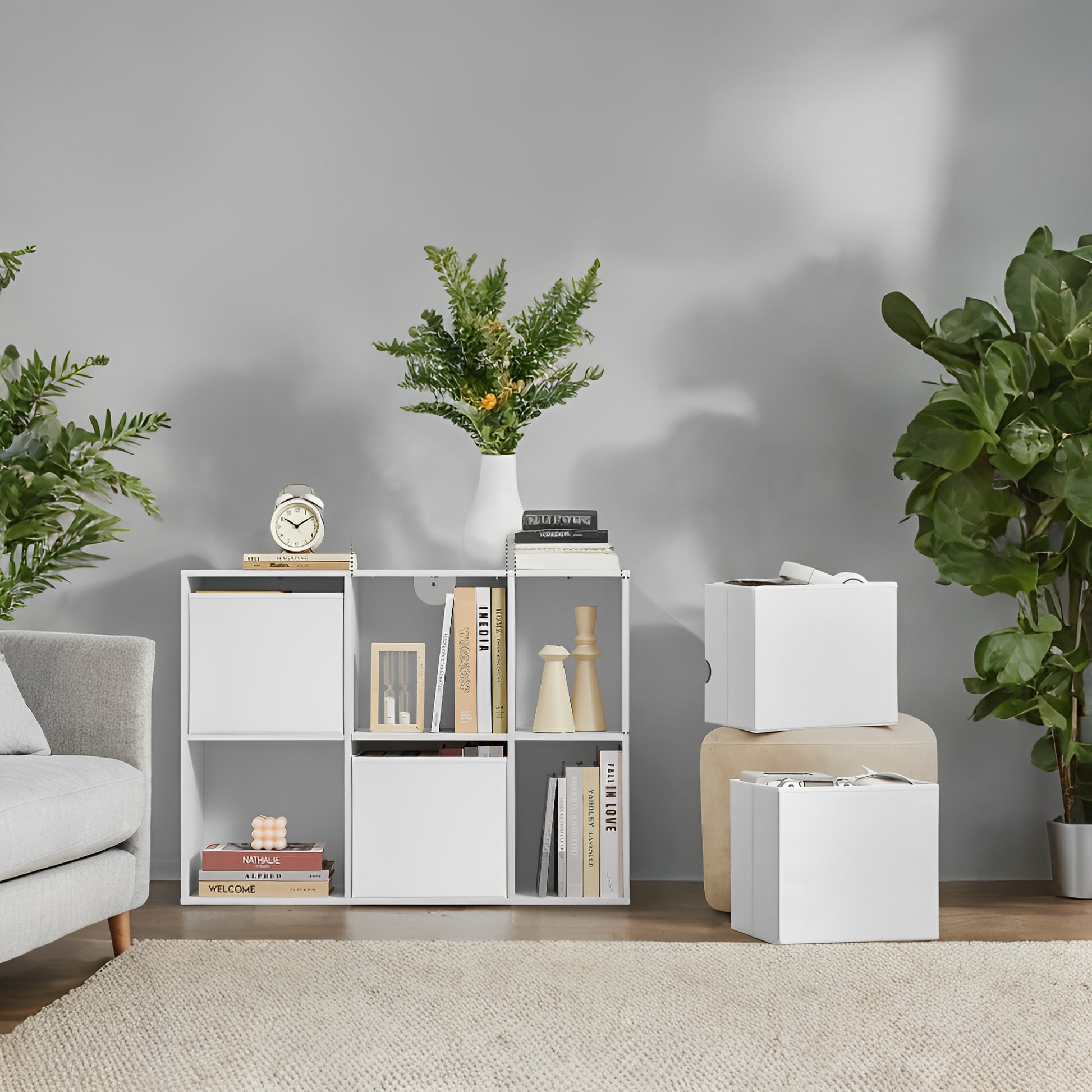 6-Cube Storage Shelf with 4 Fabric Drawers, Toolless Assembly, 132lb Capacity, Multi-Use Organizer for Home, Office, Wall-Mountable, Snow White