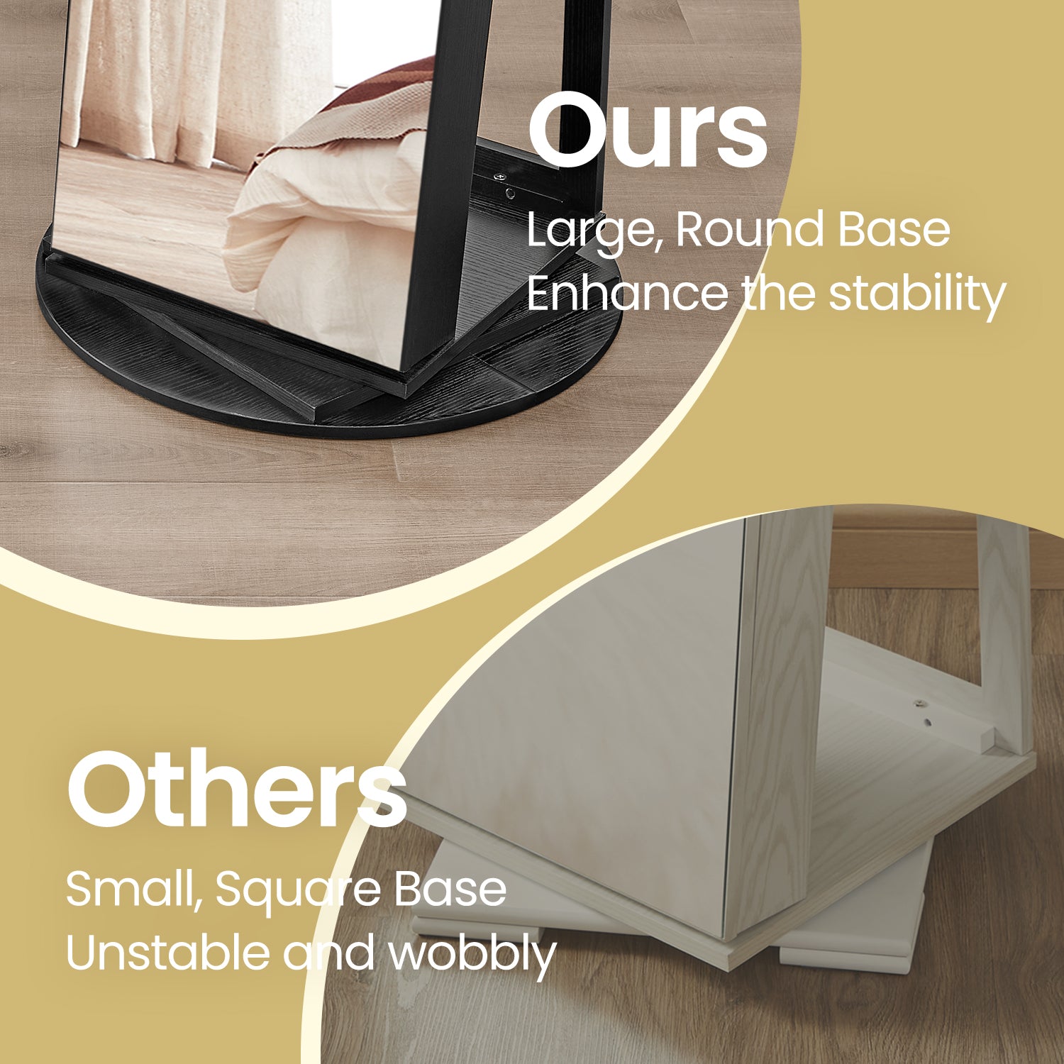6-LED Lockable Jewelry Cabinet with 360° Swivel Stand, Frameless Full-Length Mirror, 3 Storage Shelves & 4 Compartments, Black