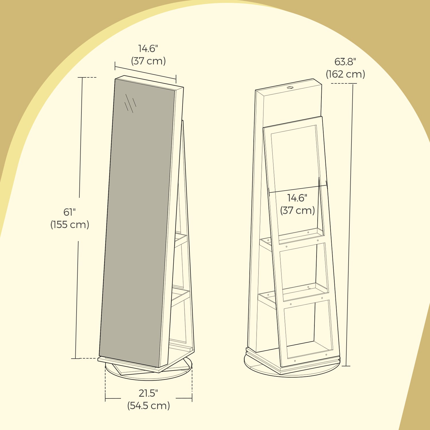 "1. Sleek Full-Length Mirror – A frameless 14.6"" x 61"" mirror offers flawless reflections, making outfit checks effortless and elegant.