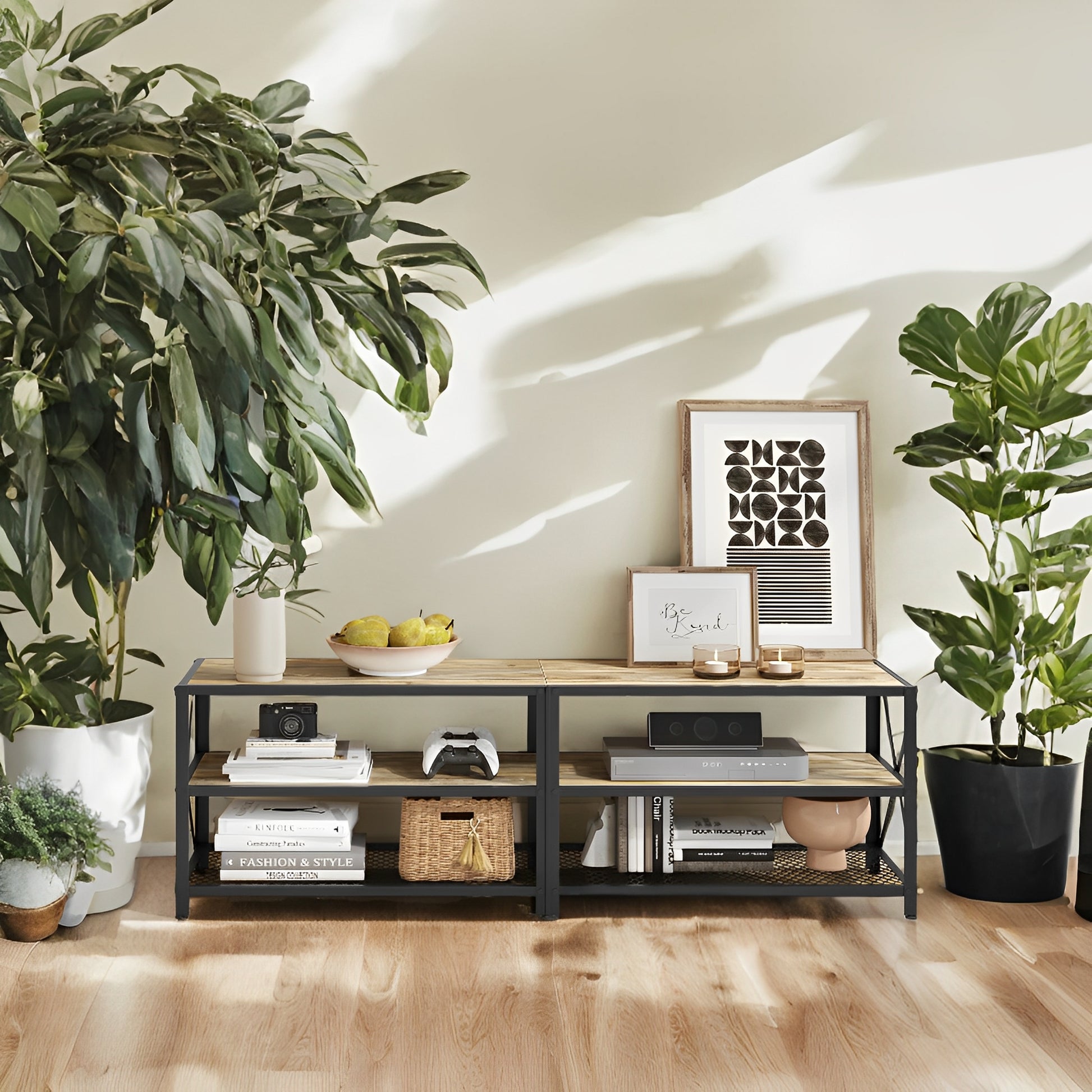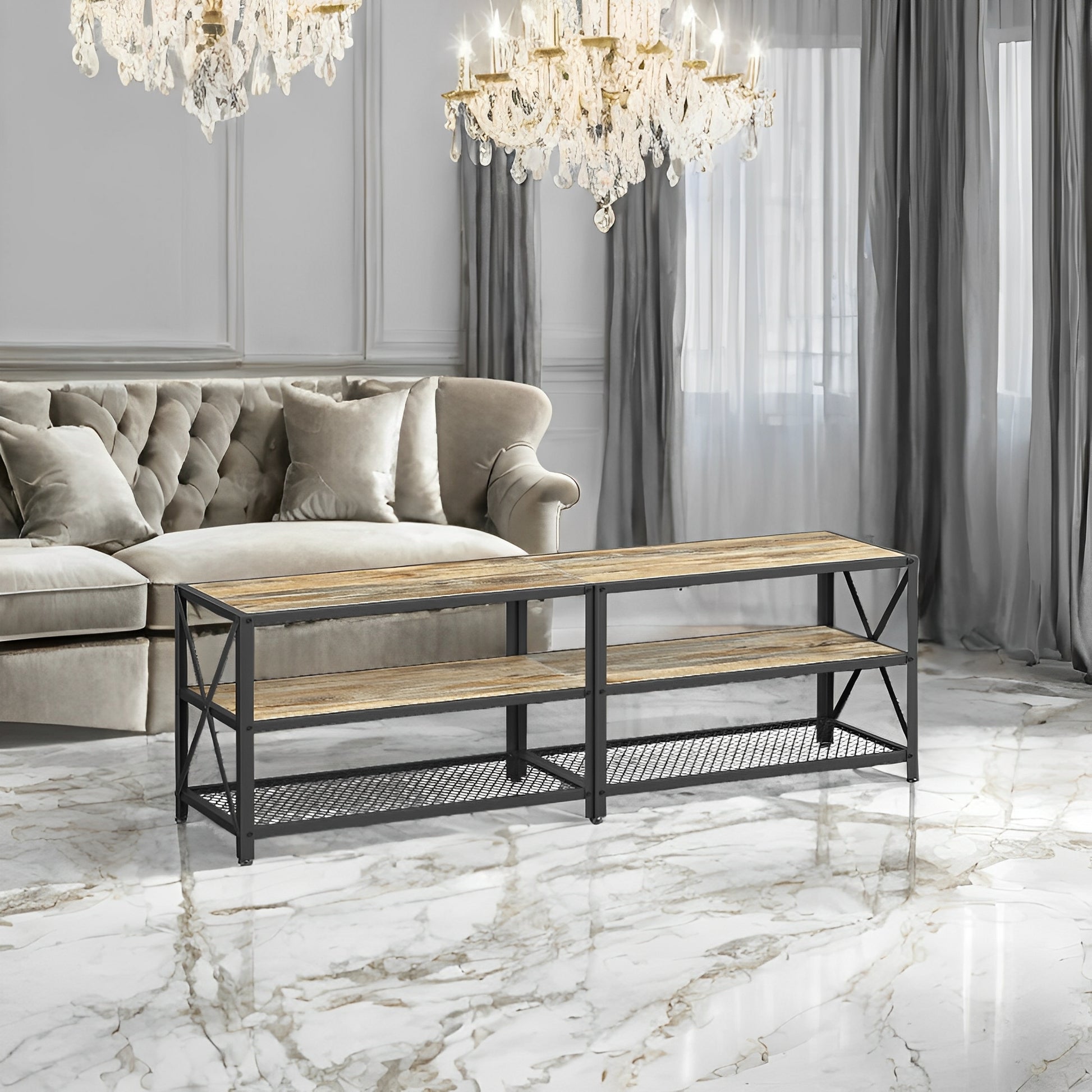 63" TV Stand for 70" TVs - Media Console with 3 Storage Shelves, Steel Frame, Easy Assembly, Turquoise Brown and Black
