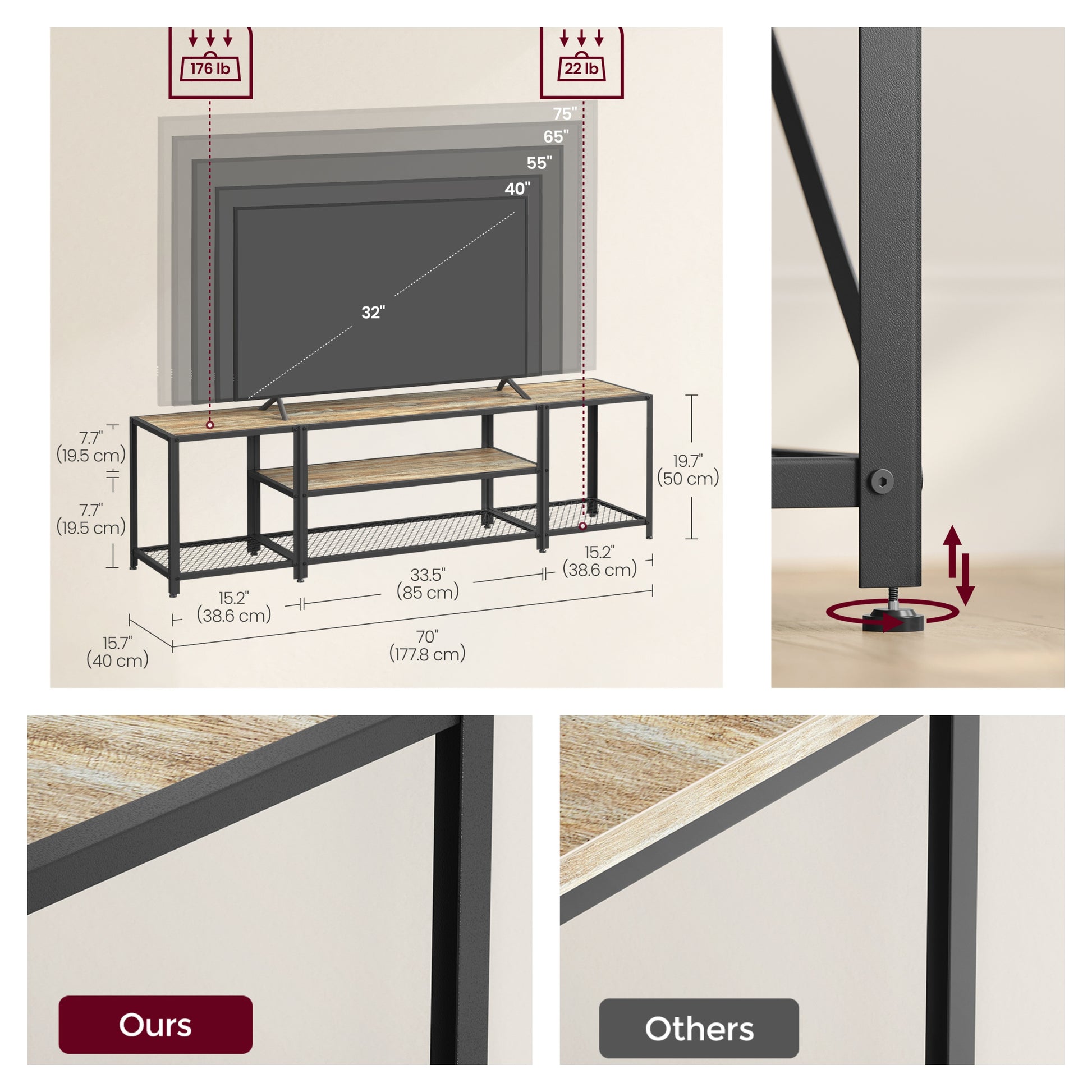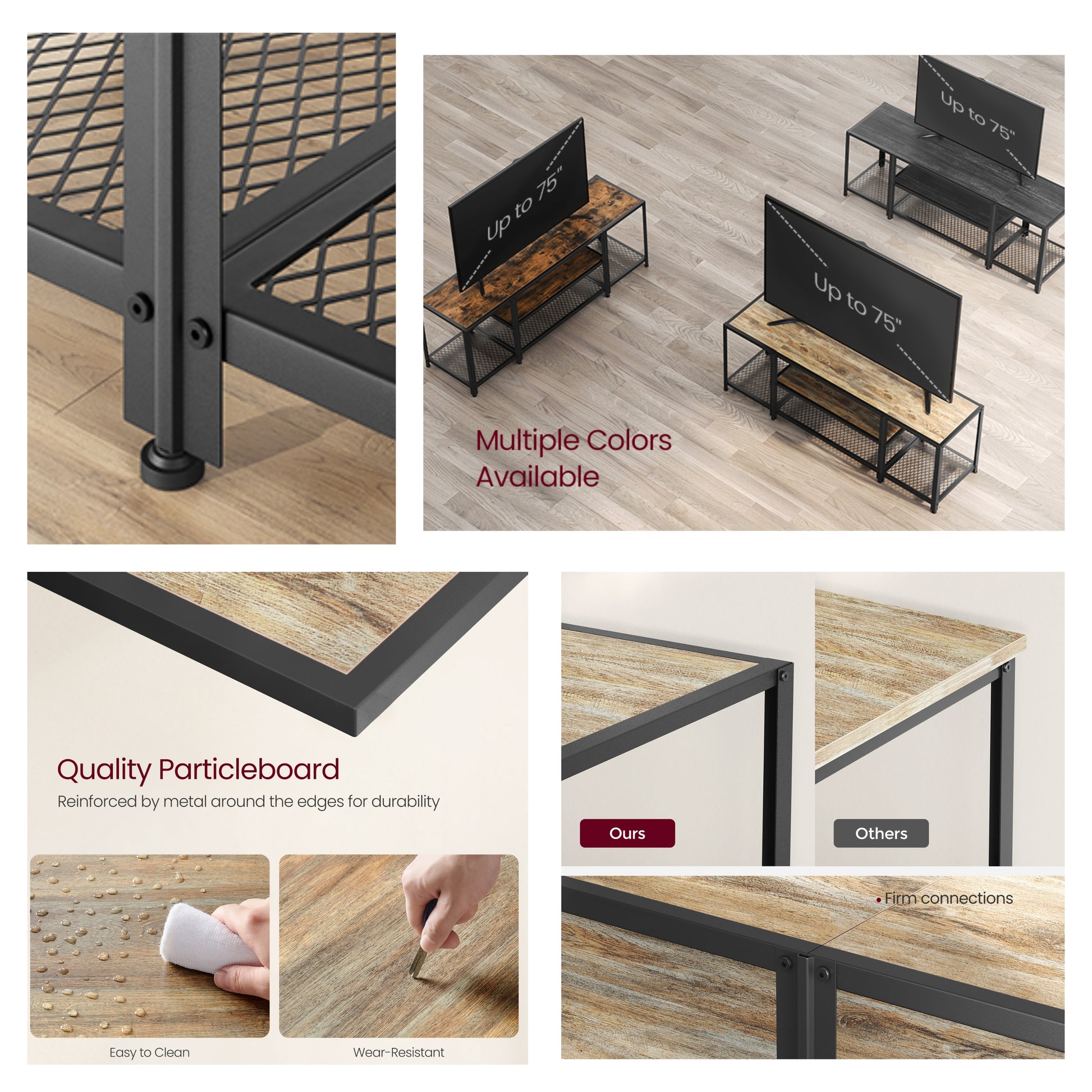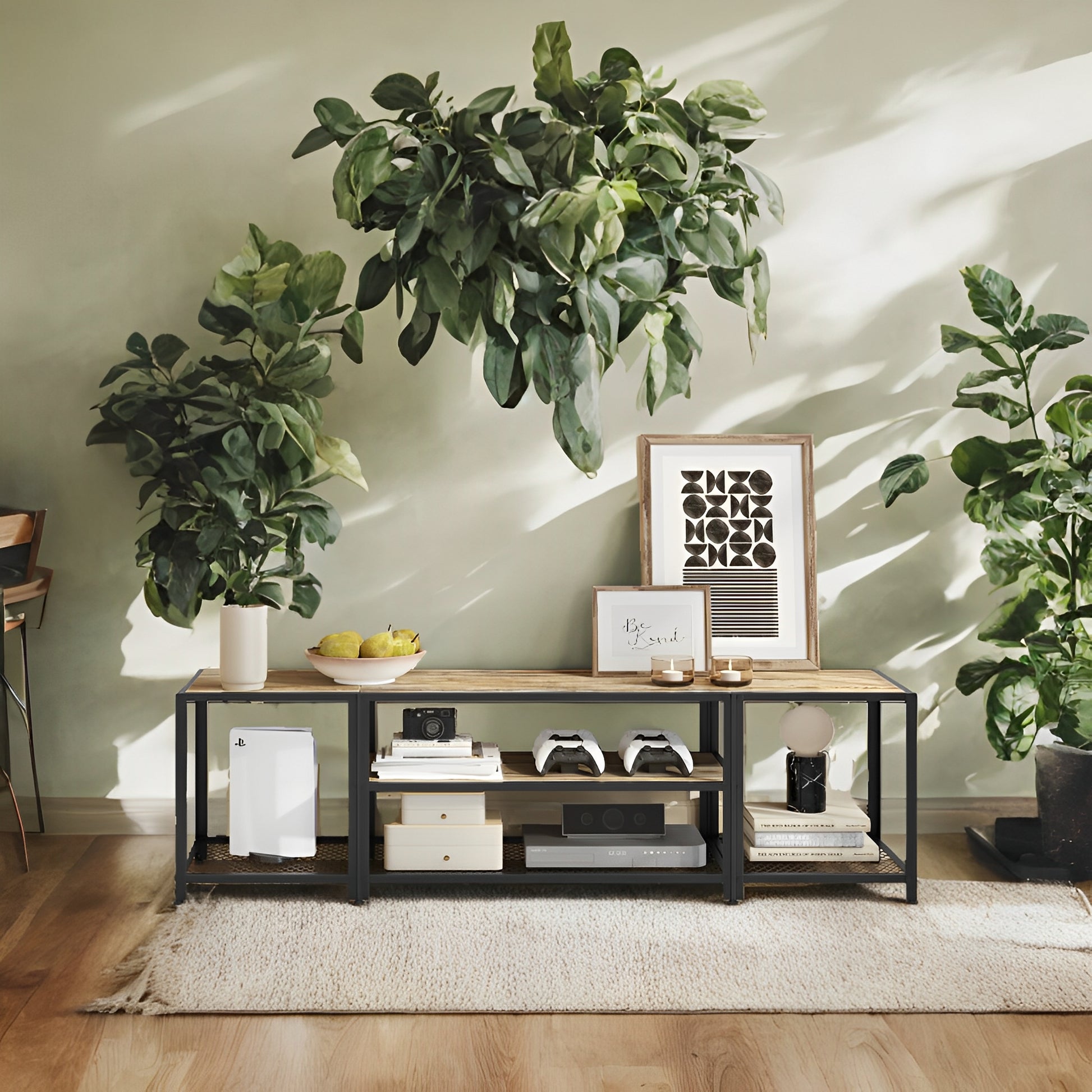 75" TV Stand - Industrial Entertainment Center with 3 Open Shelves, Media Console, Rustic Turquoise Brown and Black