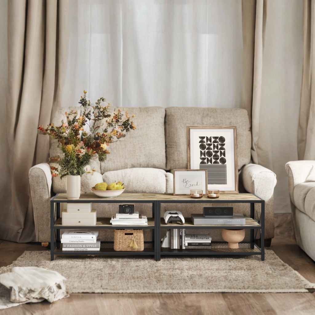75" TV Stand with 3 Storage Shelves - 70.1" Wide Media Console, Steel Frame & Wood Finish, for Living Room, Bedroom, Turquoise Brown and Black