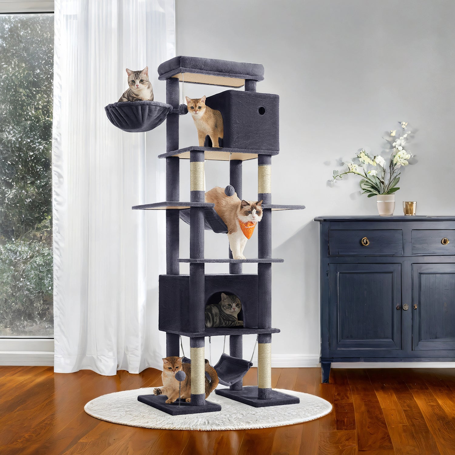 79.1-Inch Multi-Level Cat Tree with 4 Scratching Posts & 2 Hammocks - Large Cat Condo with Anti-Tip Kit, Dark Gray