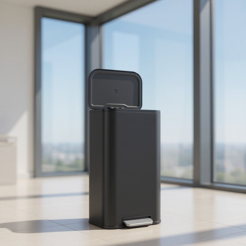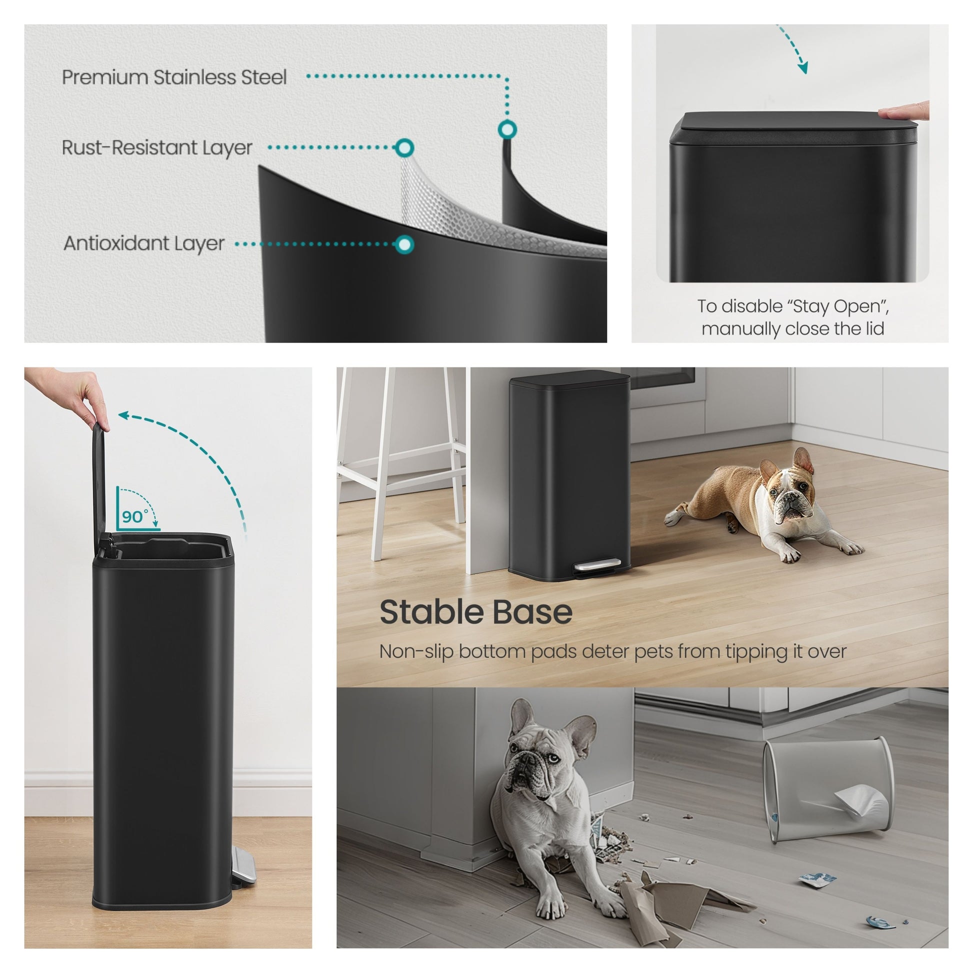 8-Gallon Step Trash Can, Soft-Close Stay-Open Lid, Inner Bucket, Non-Slip Pedal, Compact Stainless Steel Bin for Kitchen,Ink Black