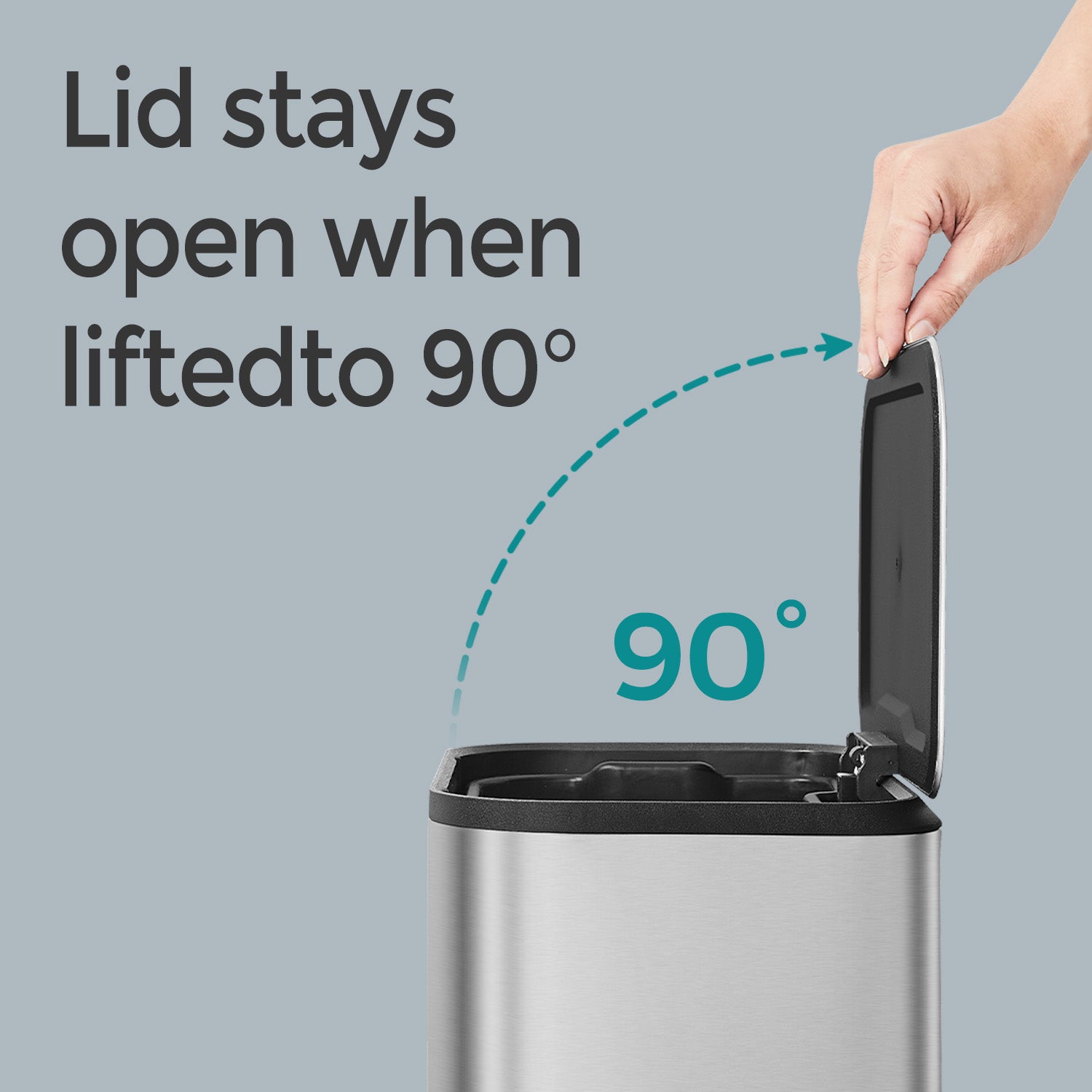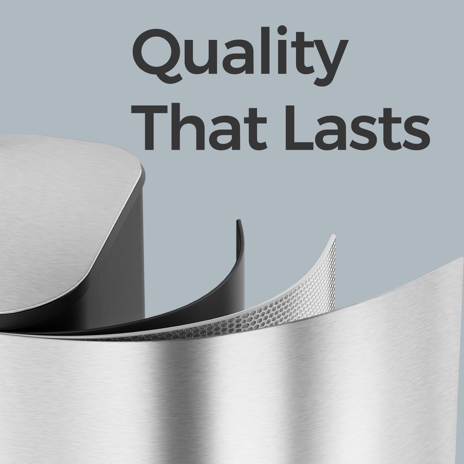 8-Gallon Step Trash Can, Soft-Close Stay-Open Lid, Inner Bucket, Non-Slip Pedal, Compact Stainless Steel Bin for Kitchen,Metallic Silver