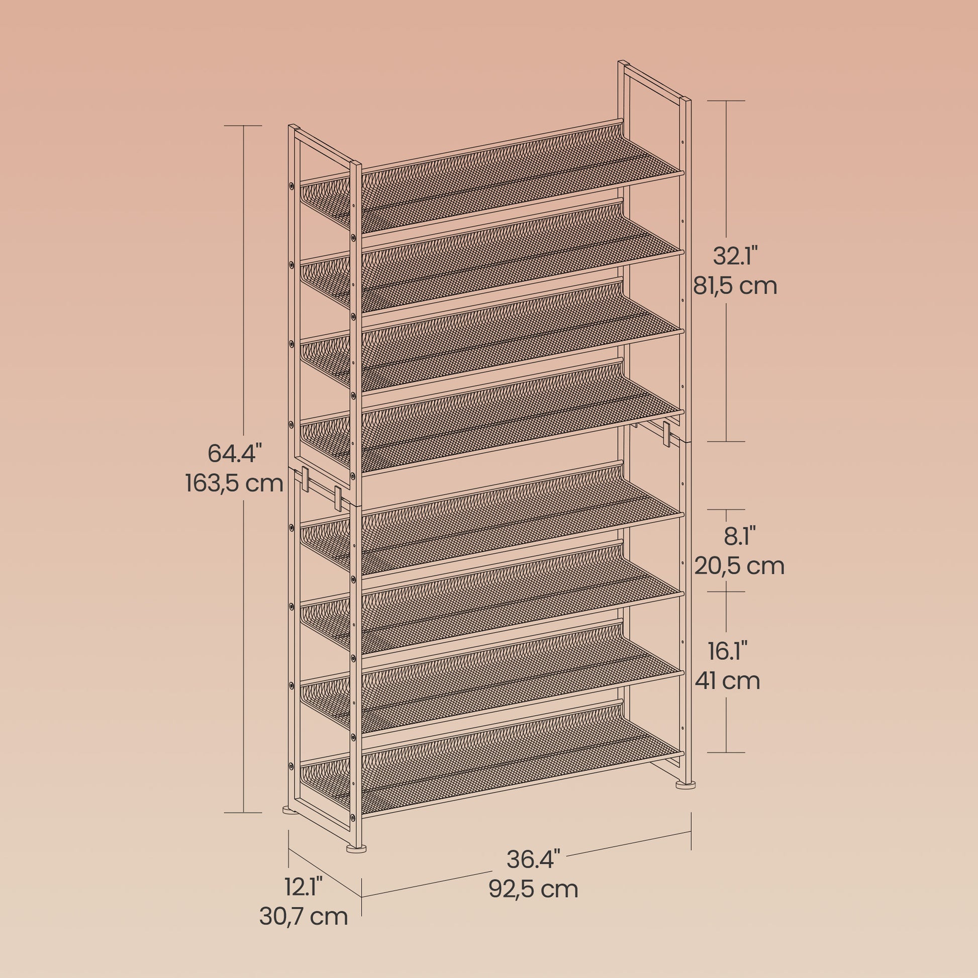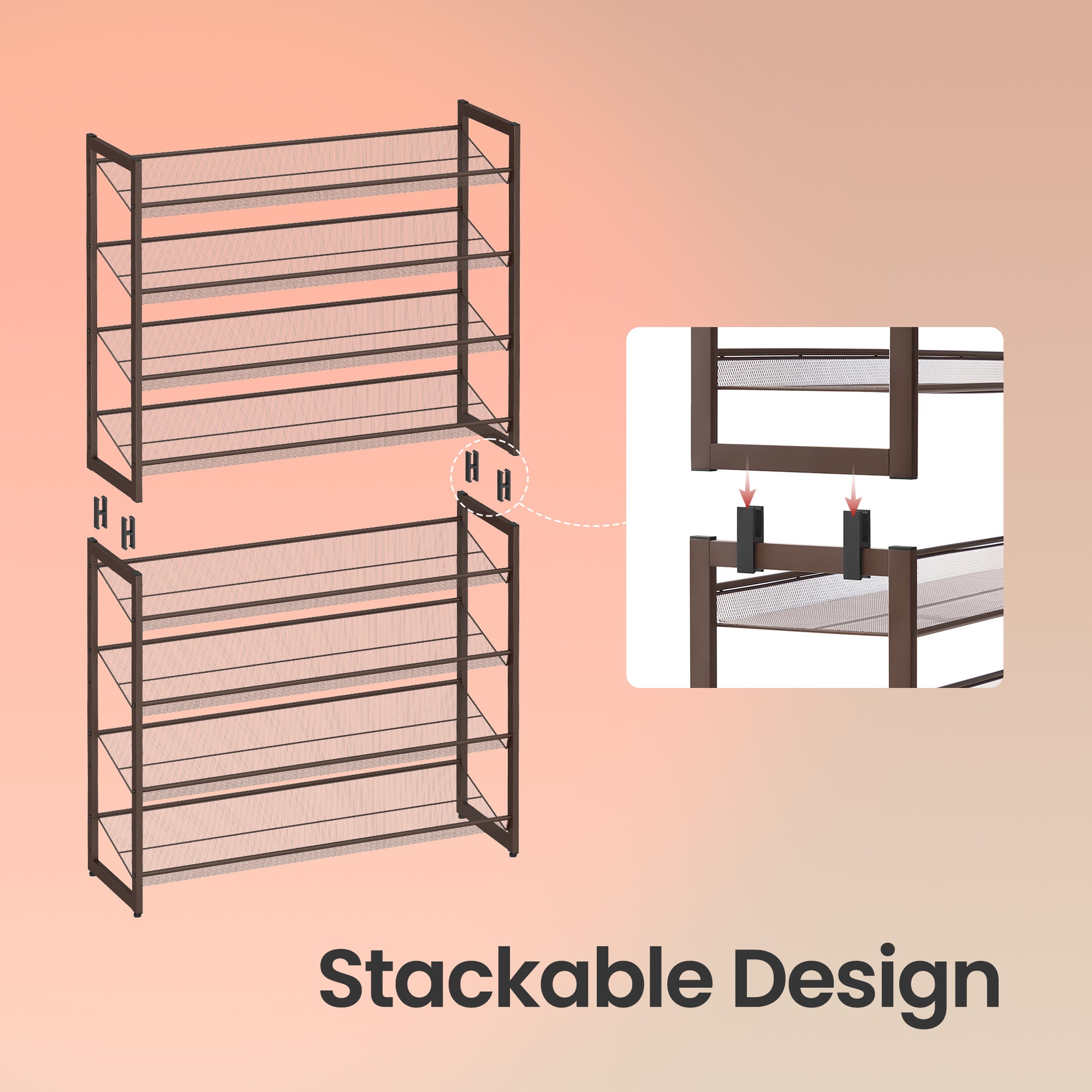 8-Tier Shoe Rack Organizer, Stackable & Adjustable Shelves (Flat,Angled), Metal Frame, Holds 32-40 Pairs, Convertible to 2x 4-Tier, Bronze