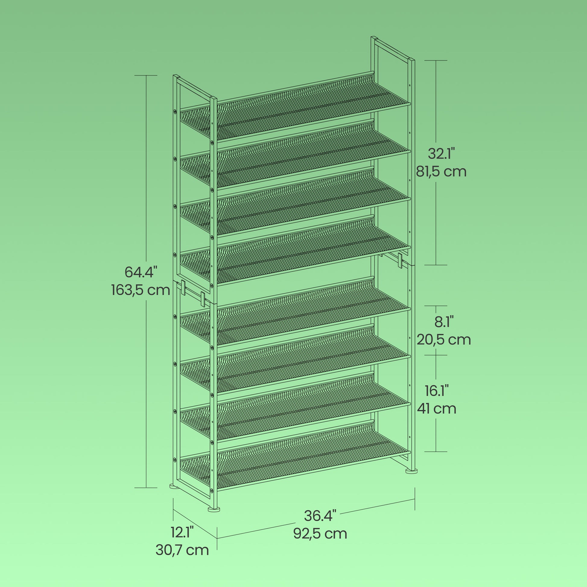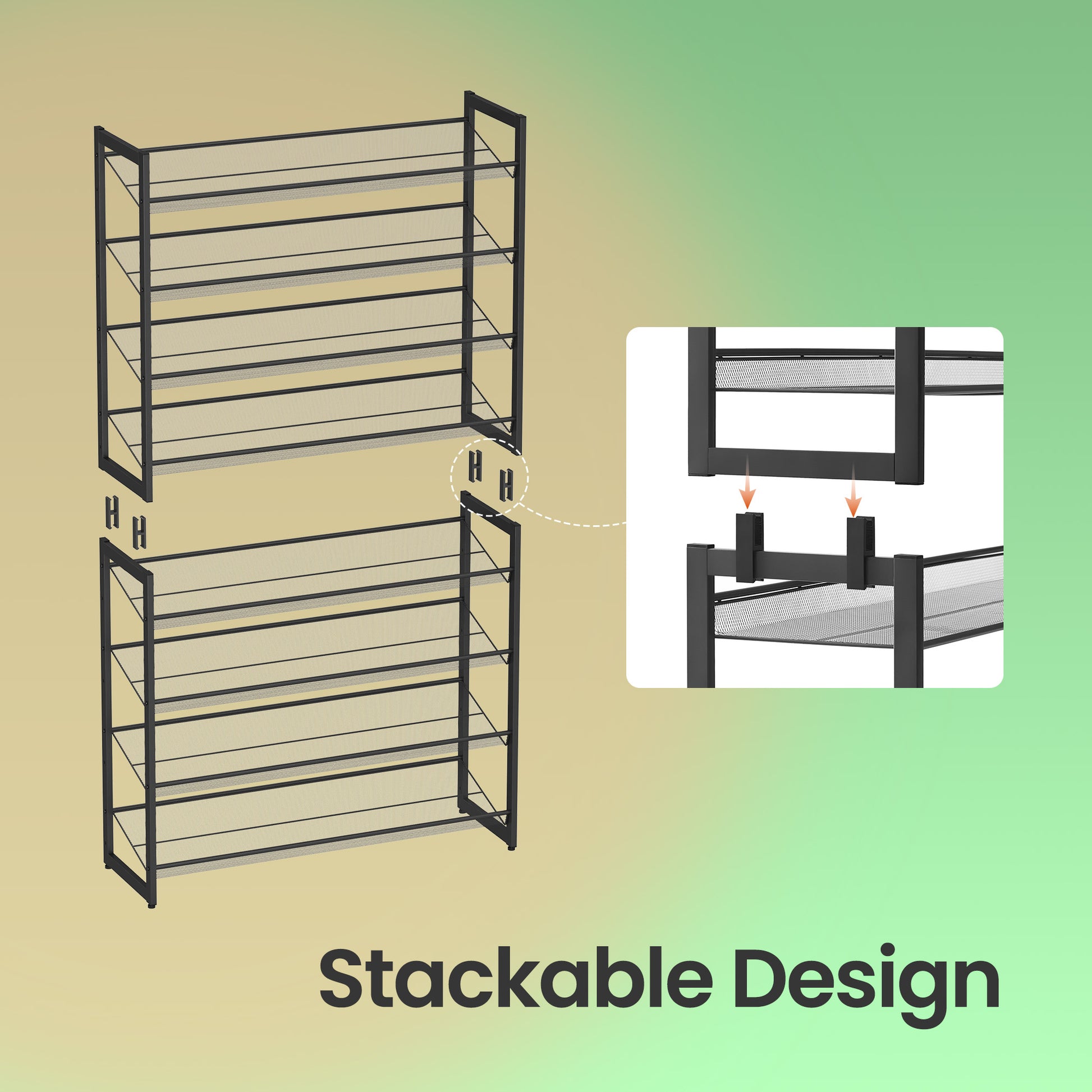 8-Tier Stackable Shoe Rack Organizer, Adjustable Flat,Angled Shelves for Garage,Entryway, Set of 2 (4-Tier Each), Holds 32-40 Pairs, Fits High Heels & Boots, Black