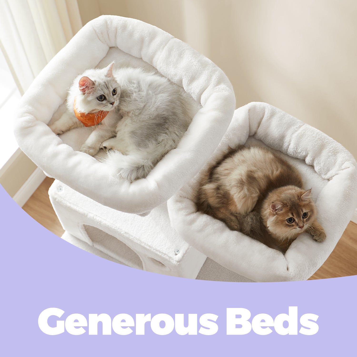 81.1-Inch Multi-Level Cat Tree with 13 Scratching Posts & Hammock - Large Cat Tower with 2 Perches & Caves, Cream White
