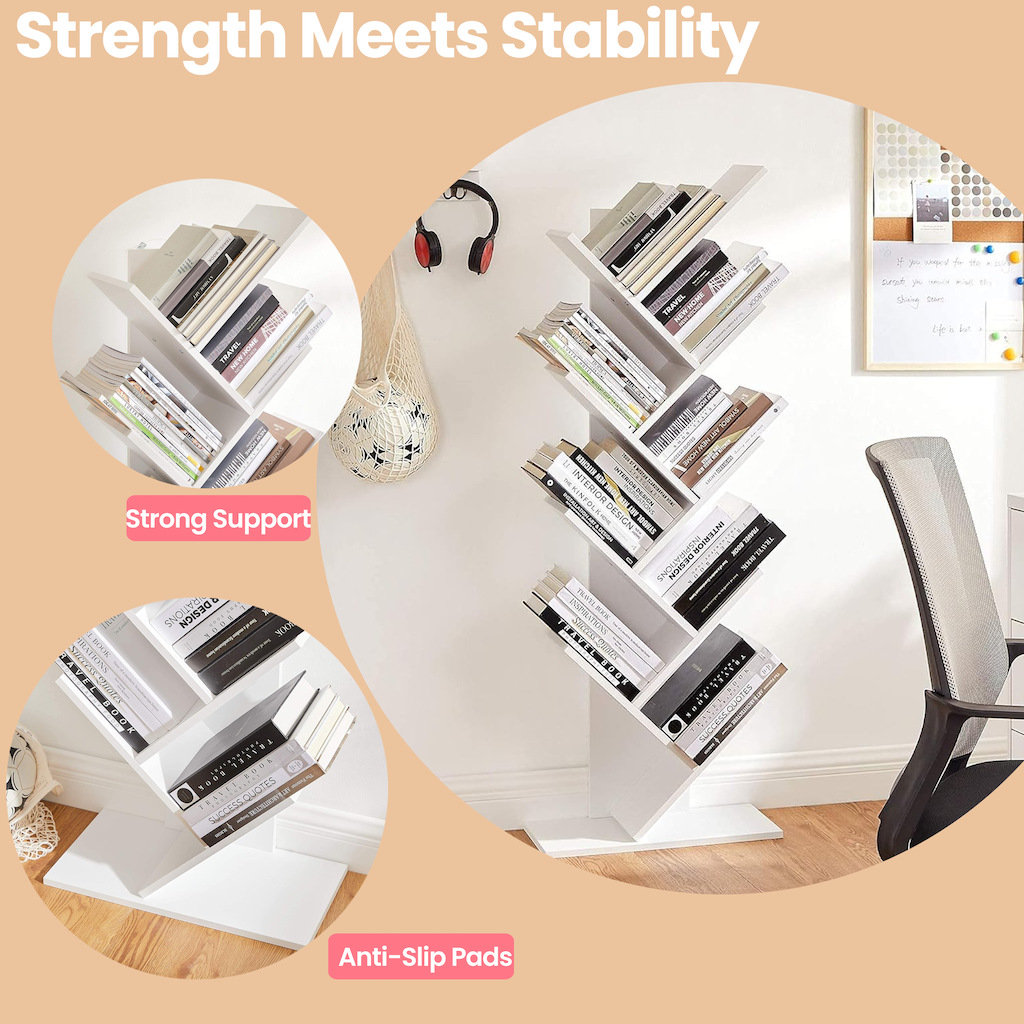 9-Tier Tree Bookshelf, Space-Saving Corner Bookcase for Living Room, Bedroom, Office, Holds 22lb/Shelf, Anti-Tip Design, Cloud White