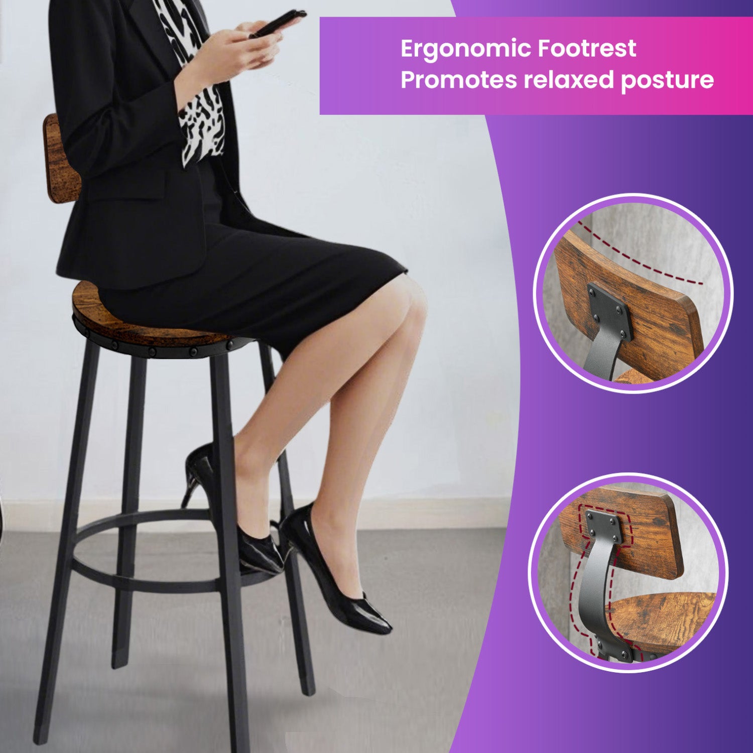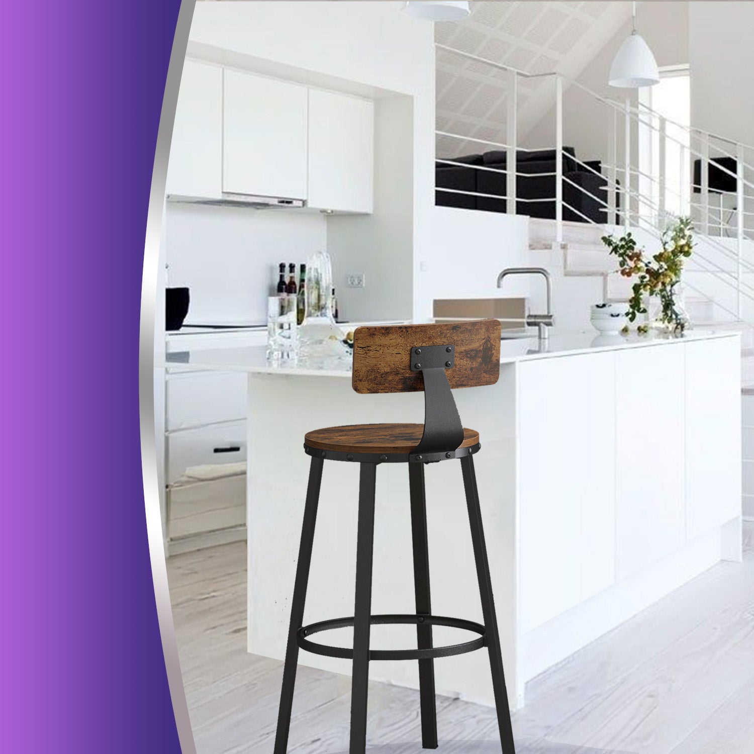 Bar Stools Set of 2, Counter Height Barstools with Backrest & Footrest, 28.7" Sturdy Steel Frame, Ergonomic Design for Kitchen,Dining,Bar, Rustic Brown & Black