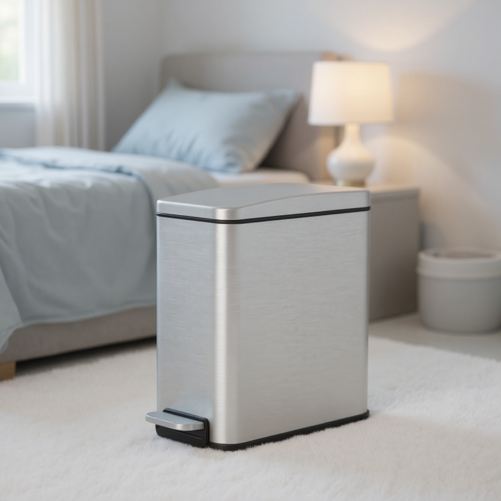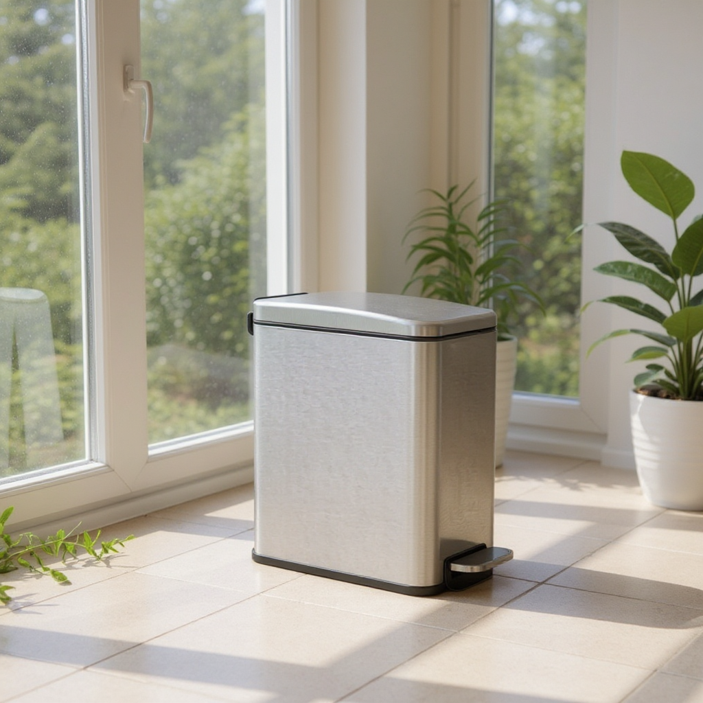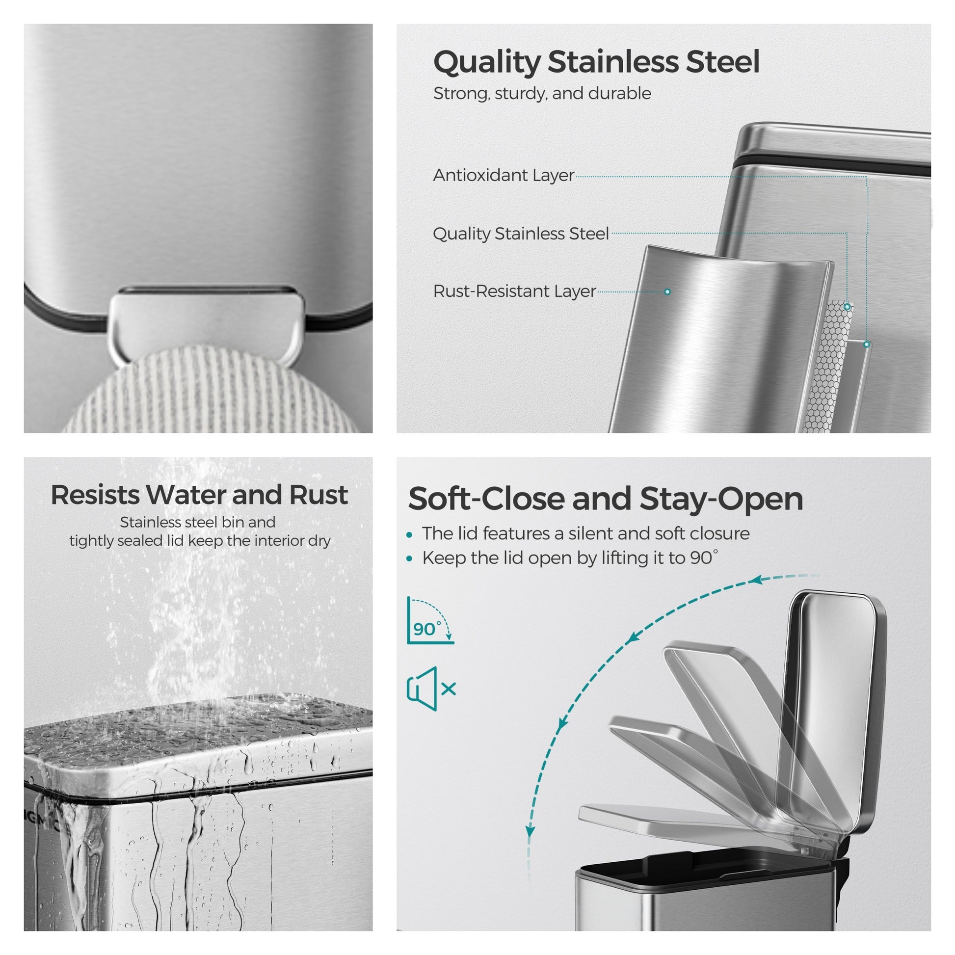 Bathroom Trash Can & Toilet Brush Set, 1.3 Gallon Slim Lid Step Bin with Soft Close - Small Space, Brushed Stainless Steel,Silver