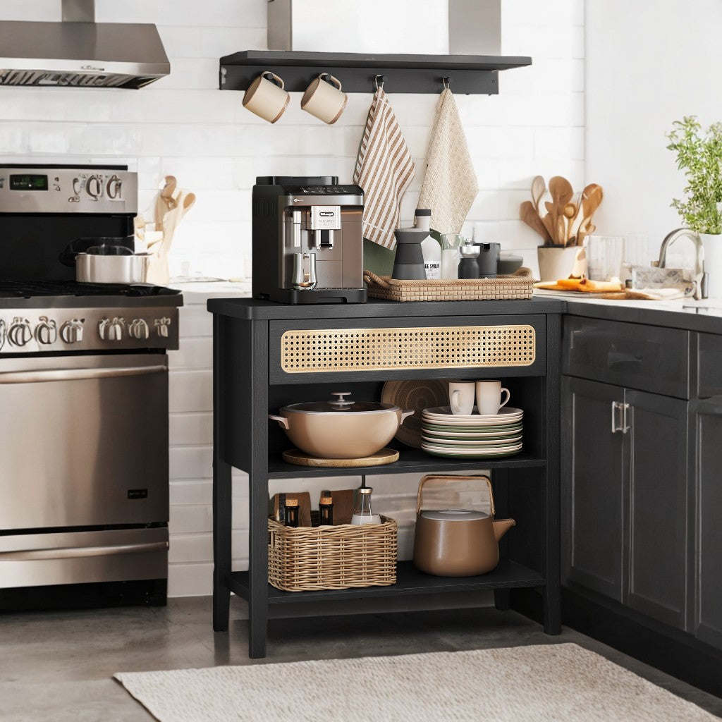 Boho Console Table with Power Outlets - Entryway Table with Drawer & Shelf, 2 AC + 2 USB Ports, Ash Black
