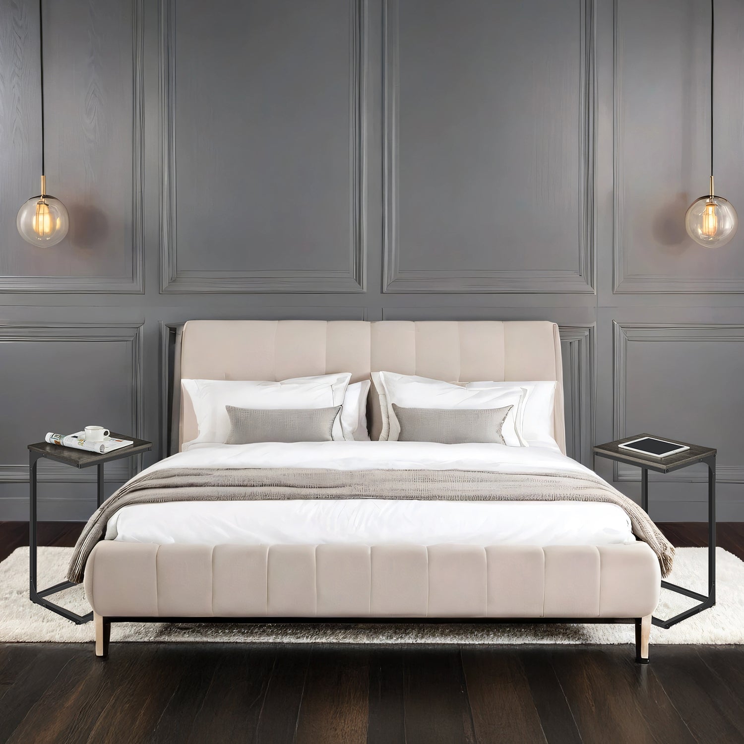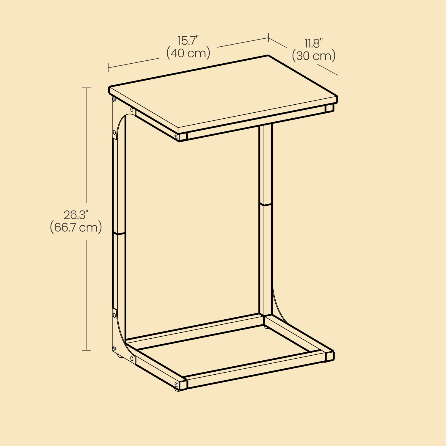 C-Shaped End Table Set of 2 - Sofa Side Tables with Metal Frame, Space-Saving Design, Ebonized Oak and Black