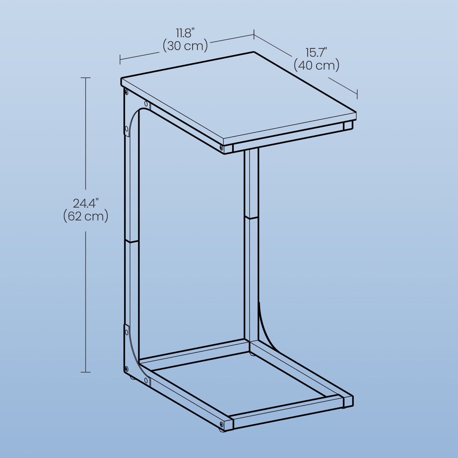 C-Shaped End Table - Slim Sofa Side Table with Metal Frame, Space-Saving Bedside Table for Living Room & Bedroom, Rustic Brown
