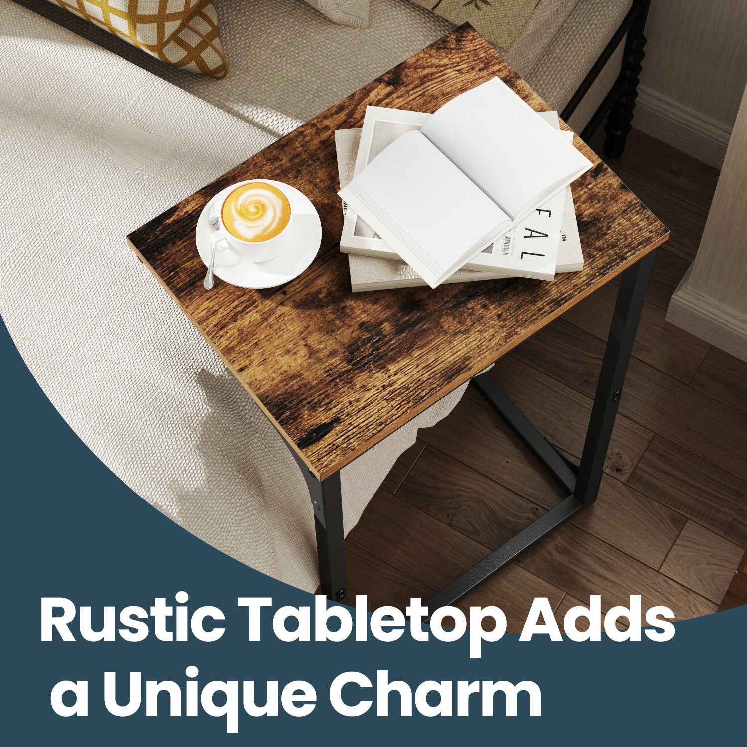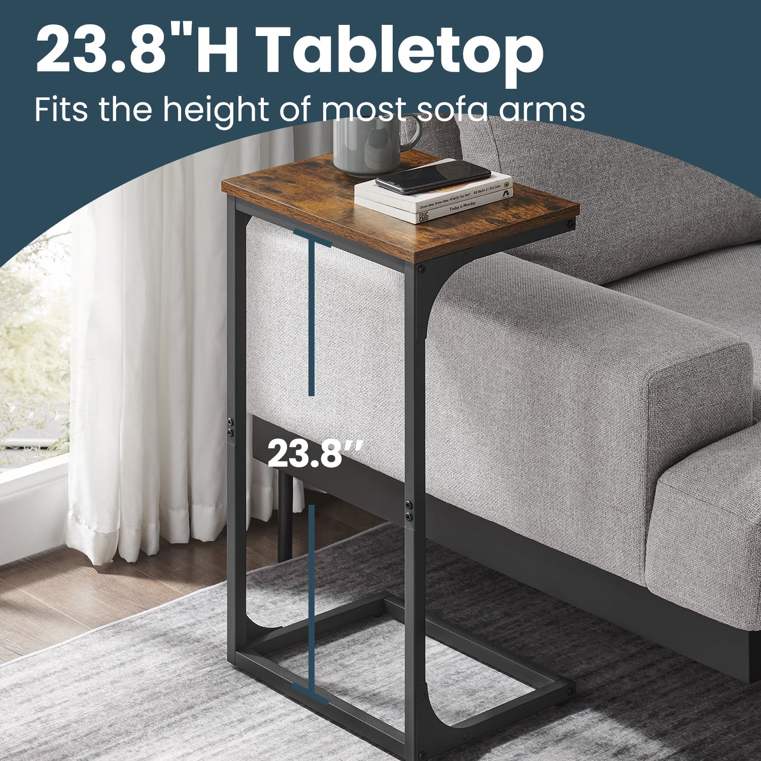 C-Shaped End Table - Sofa Side Table with Metal Frame, Space-Saving Design, 26.3" Height, Rustic Brown and Black