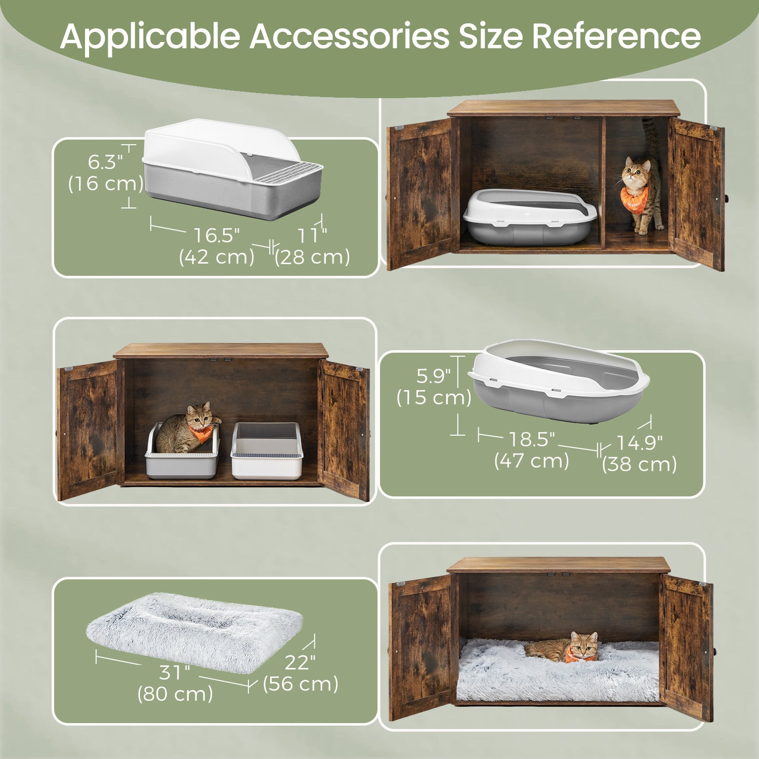 Cat Litter Box Furniture Enclosure with Barn Doors & Adjustable Space, Multi-Functional End Table for Indoor Cats, 31.5x20.9x19.7in, Rustic Brown