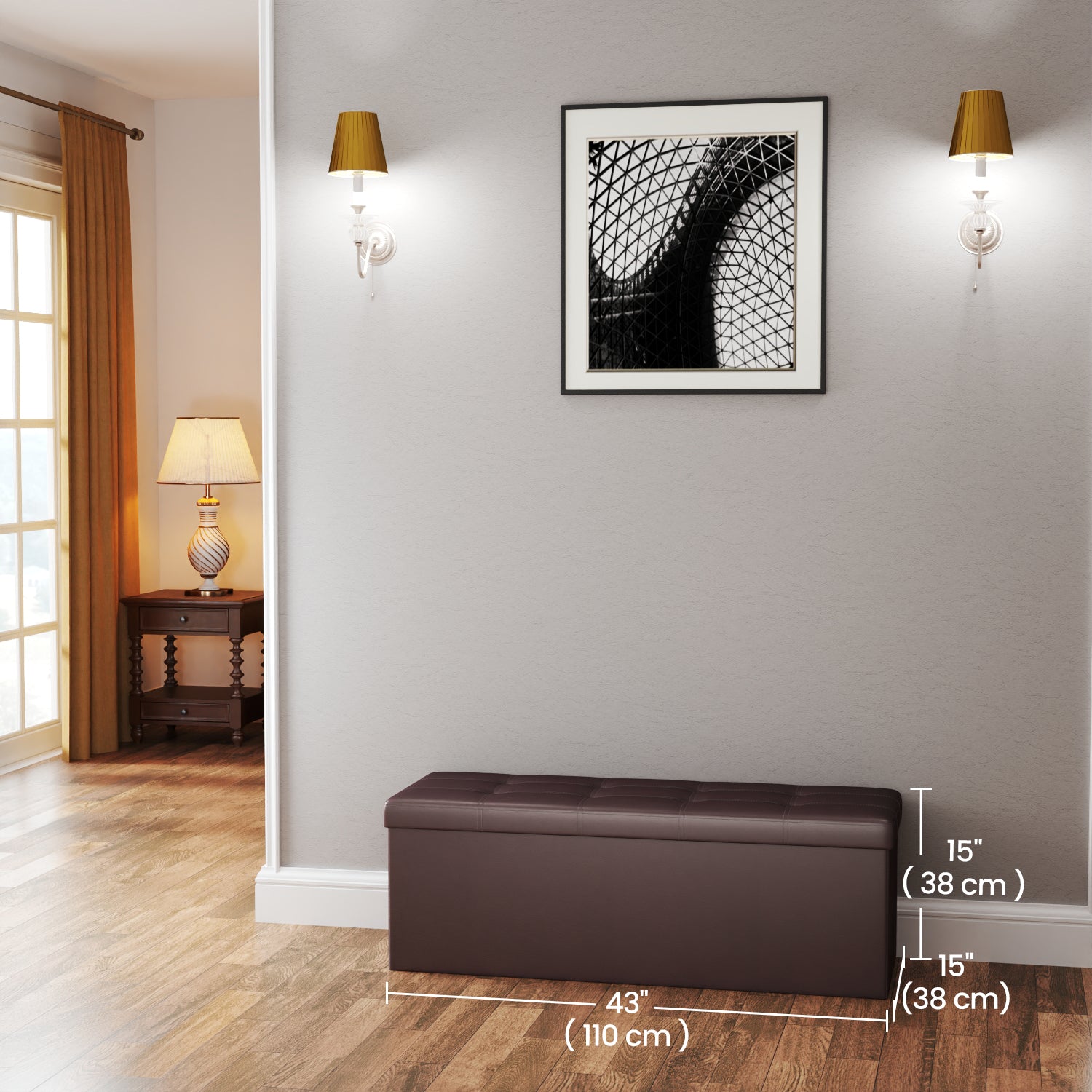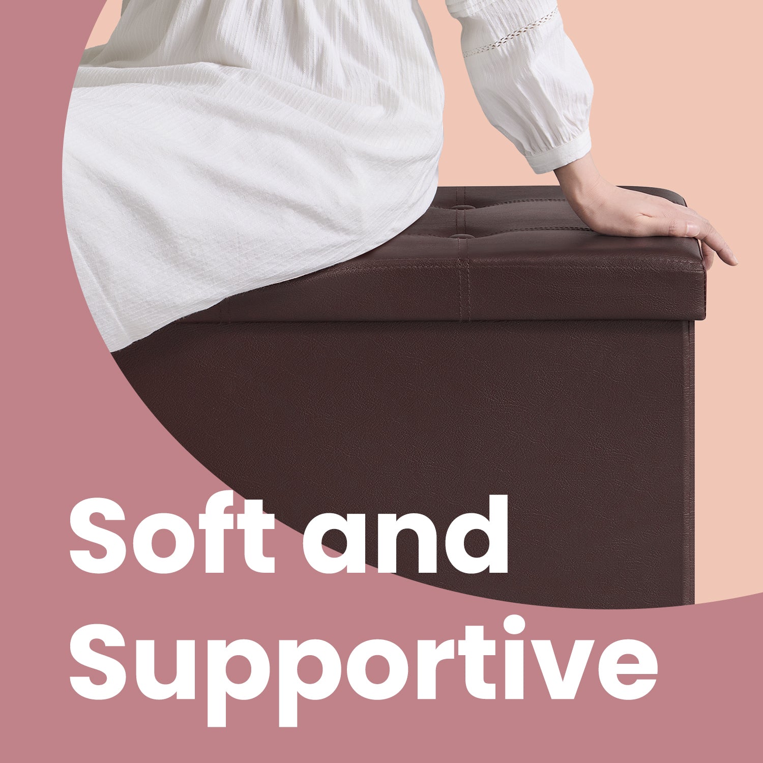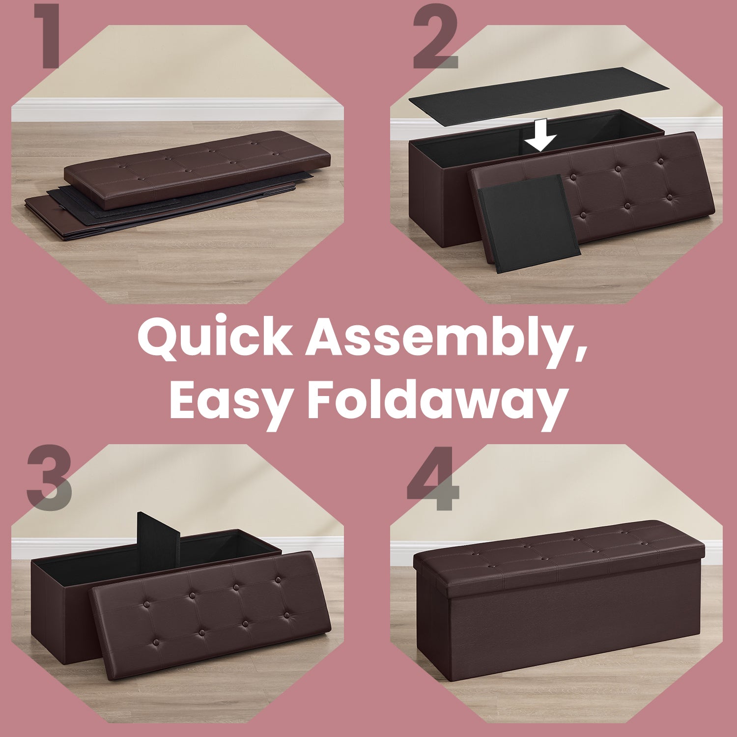 Collection - 43" Foldable Storage Ottoman Bench, 660lb Capacity, 3-in-1 Multi-Functional, Easy-Clean Synthetic Leather, Brown