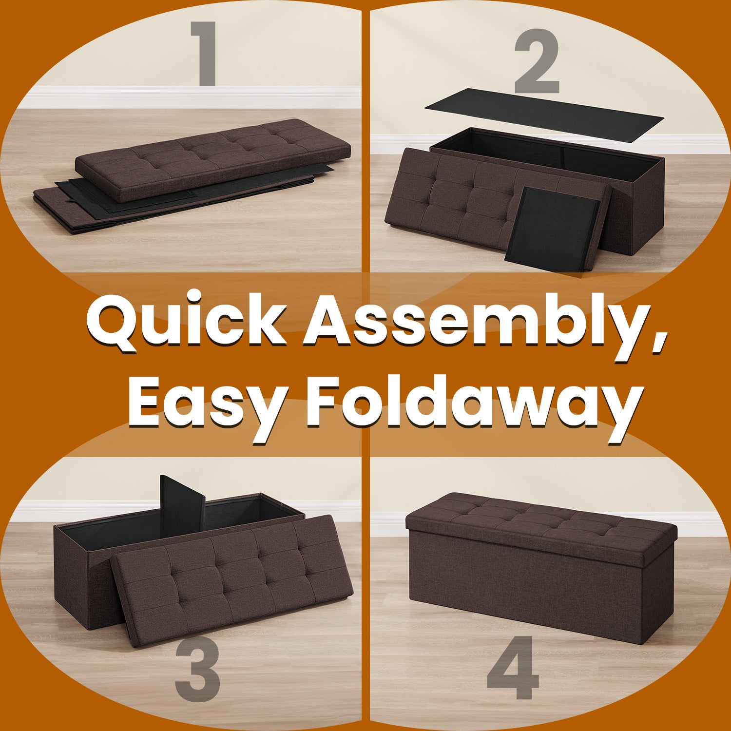 Collection - 43" Foldable Storage Ottoman Bench, 660lb Capacity, Multi-Functional Footrest & Organizer, Removable Divider, Brown