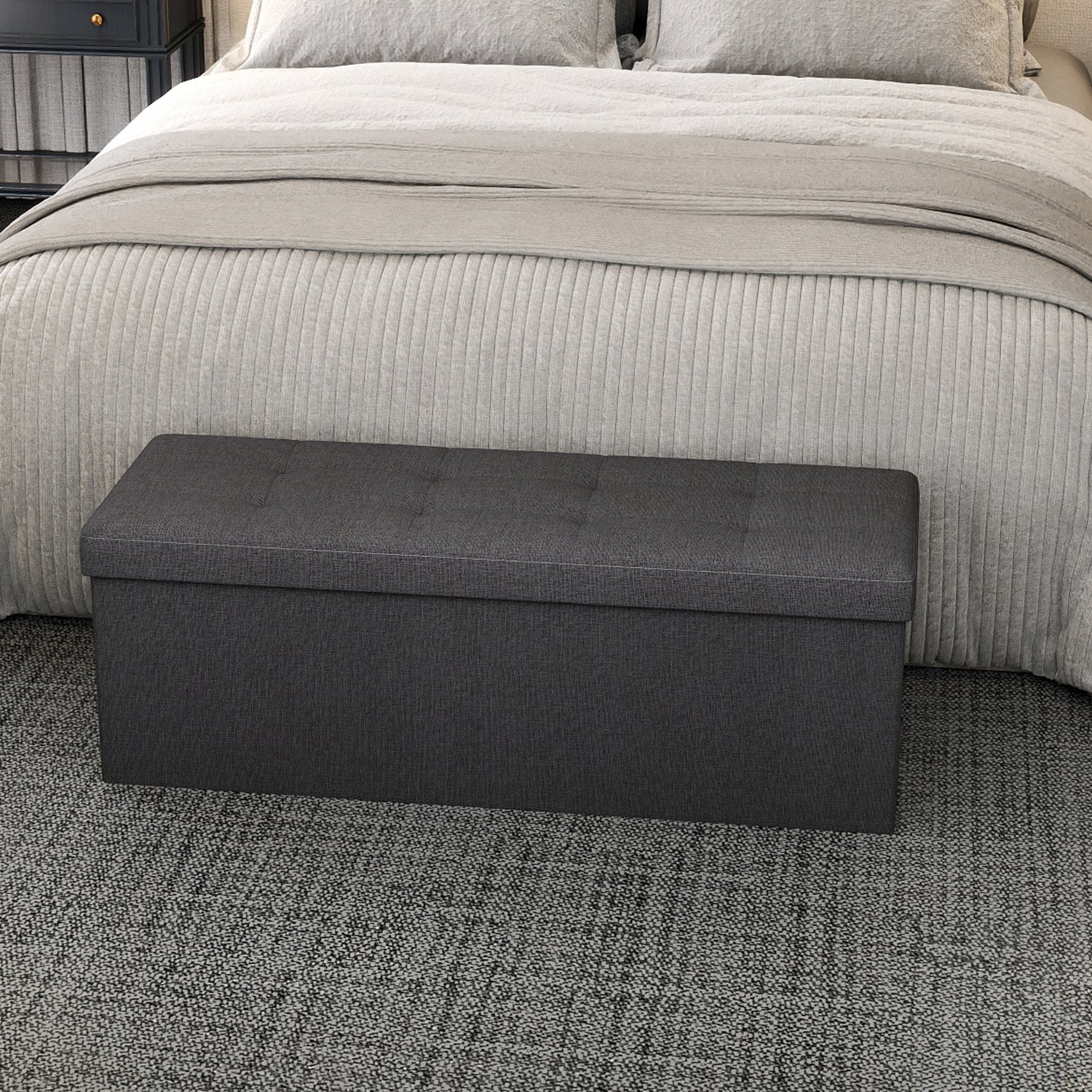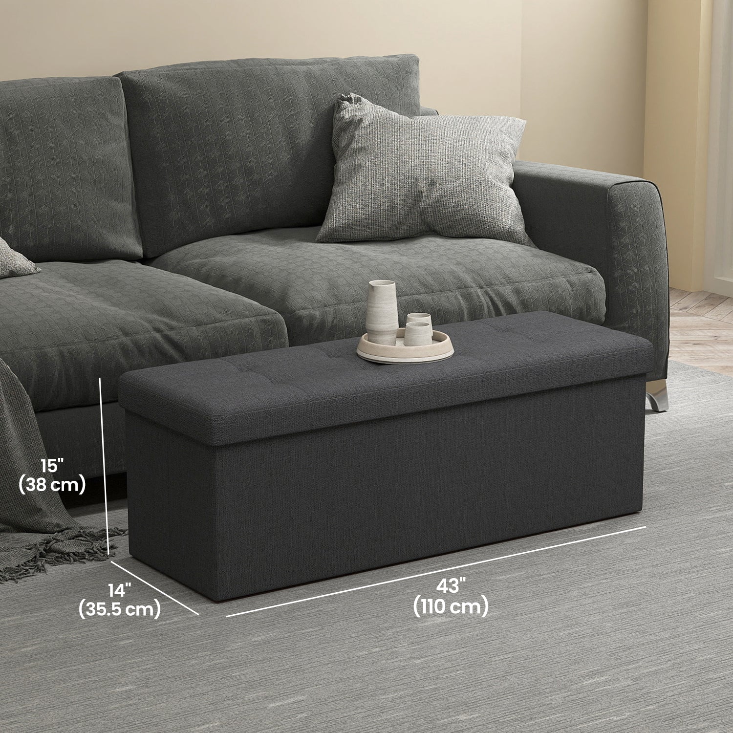 Collection - 43" Foldable Storage Ottoman Bench, 660lb Capacity, Multi-Functional Footrest, Seat, Storage, 35 Gal, Removable Divider, Ink Black