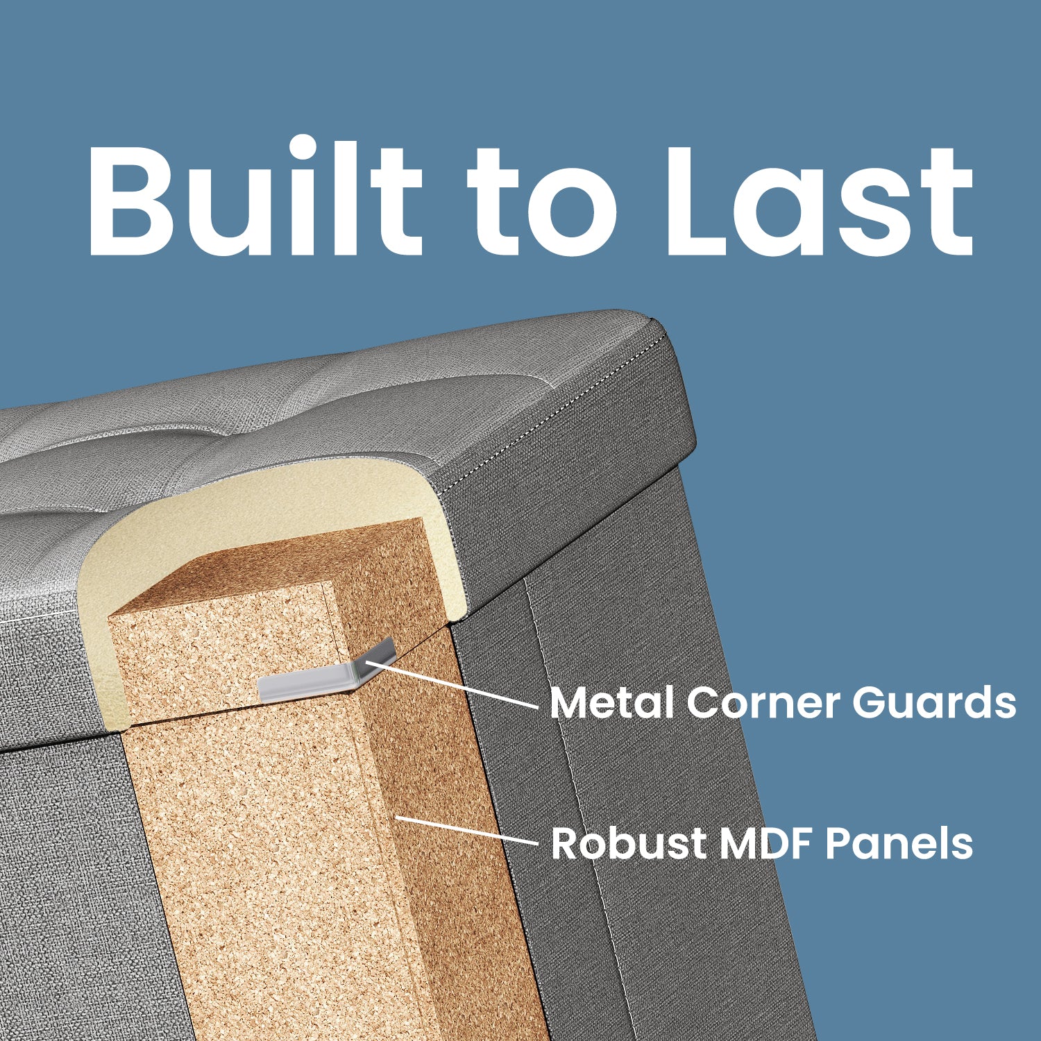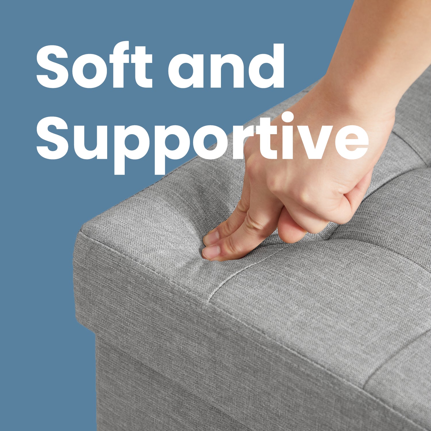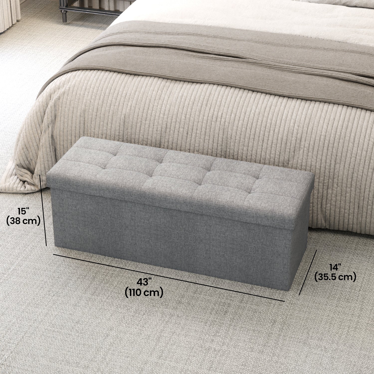 Collection - 43" Instant-Fold Storage Ottoman Bench, 660lb Capacity, Multi-Functional Organizer with Adjustable Divider, Light Gray