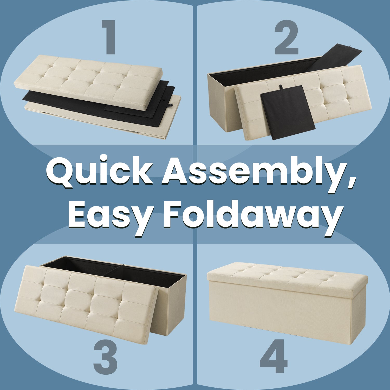 Collection - 43" Multi-Functional Folding Ottoman, 660lb Capacity Storage Bench with Removable Divider, Cream White