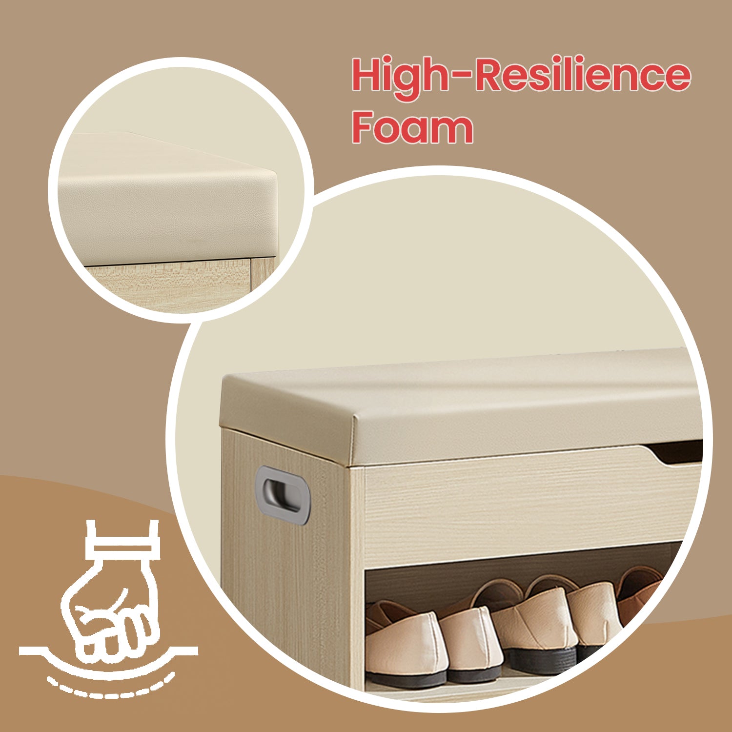 Plush Comfort Seating: Relax in style with a 2"" foam cushion wrapped in easy-clean PU leather—perfect for putting on shoes or taking a quick break.