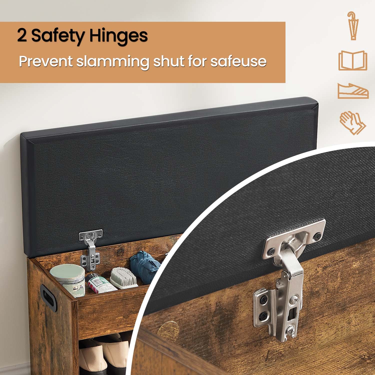 Double-Duty Storage: Hides small items in the seat compartment while displaying 7 pairs of shoes below—maximizing space without clutter.