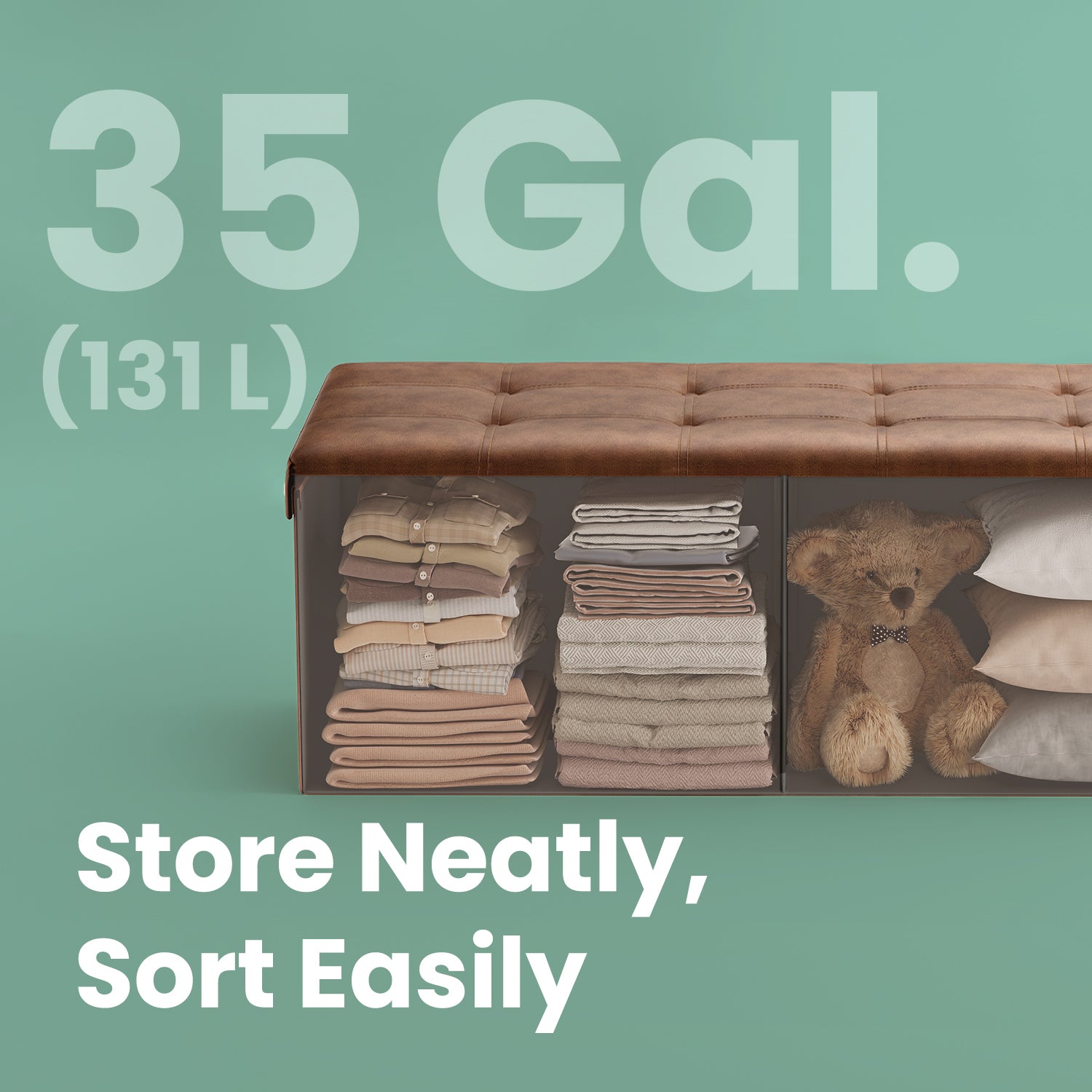 Collection Storage Ottoman - 43" Multi-Functional Bench, 660lb Capacity, 35-Gallon Storage, Synthetic Leather, Coffee Brown