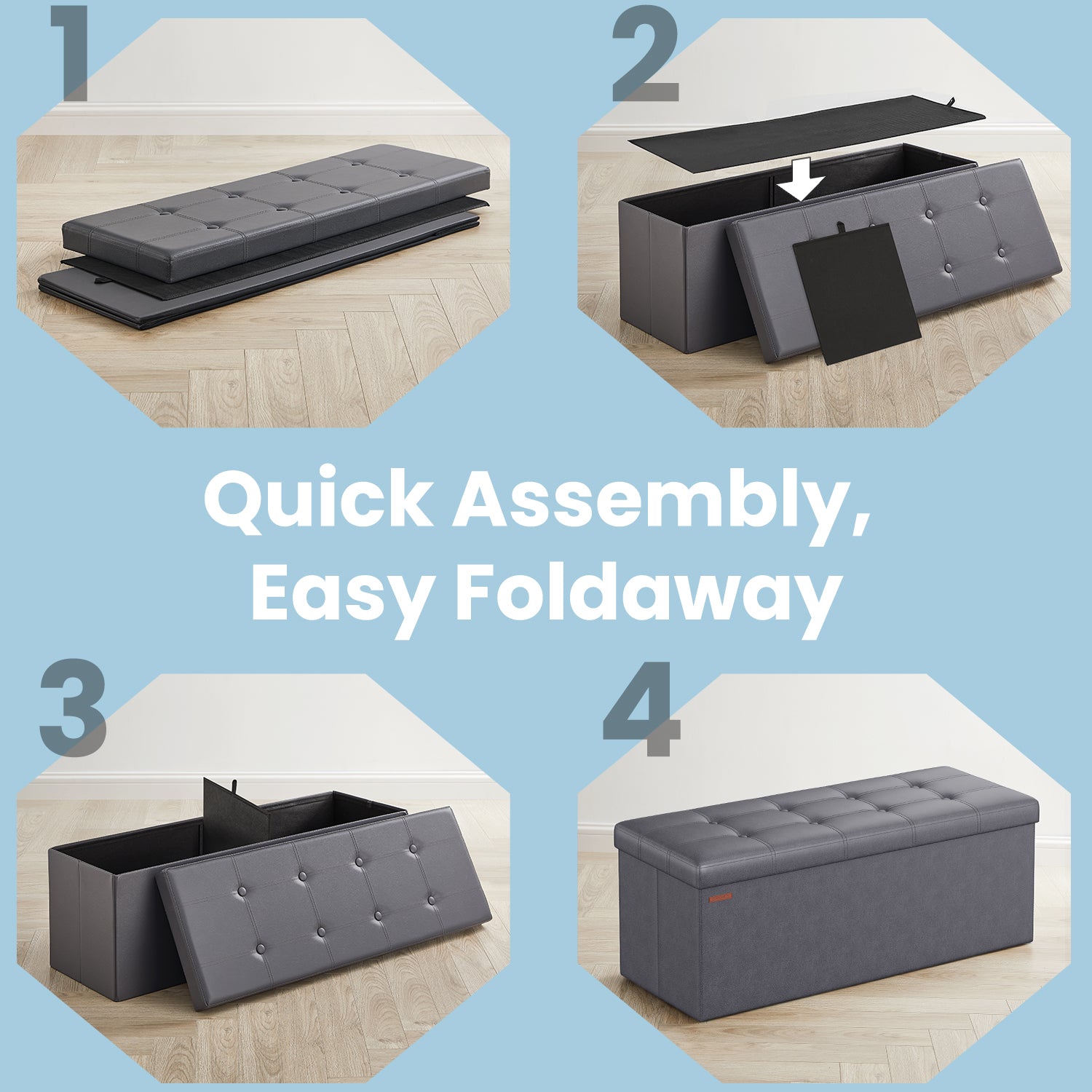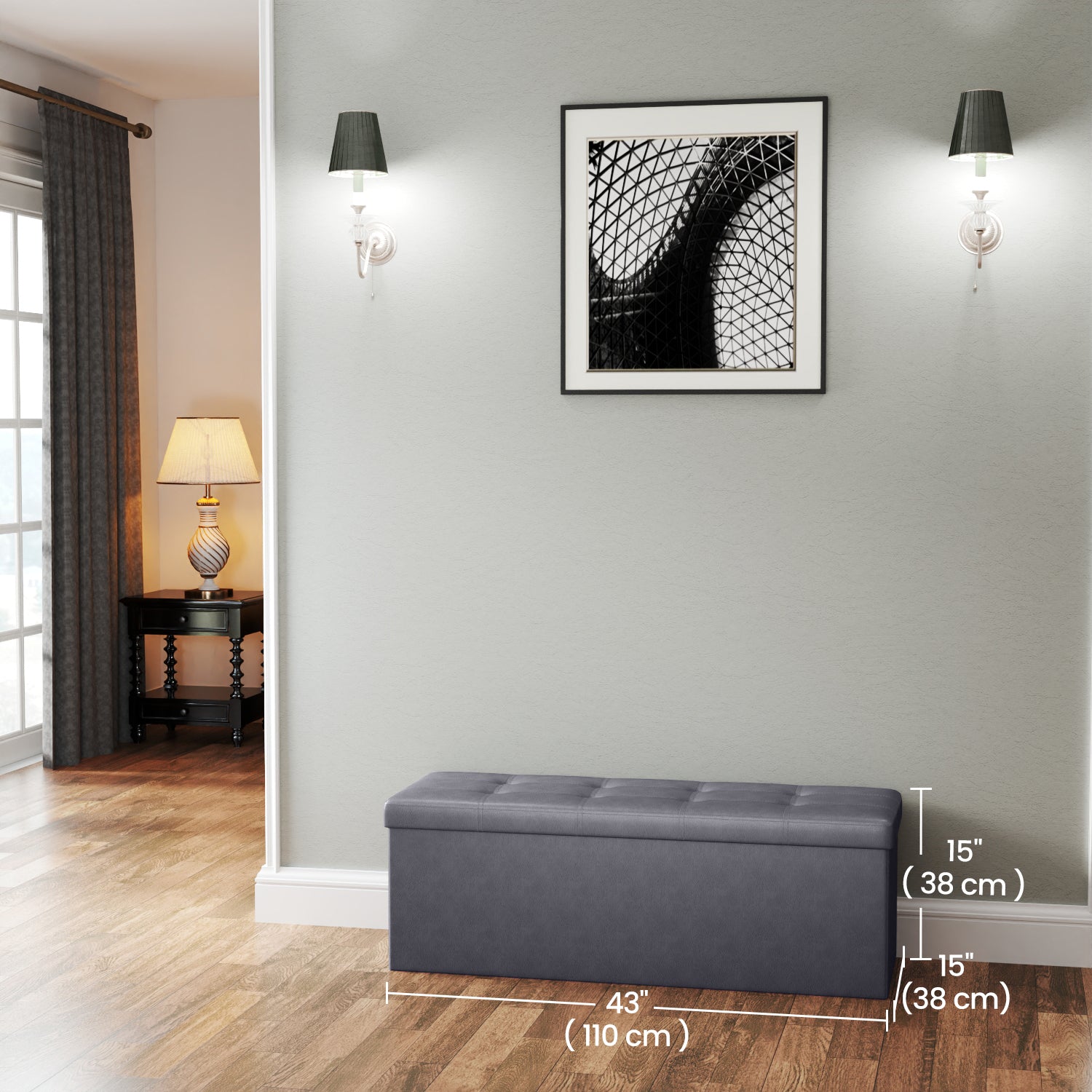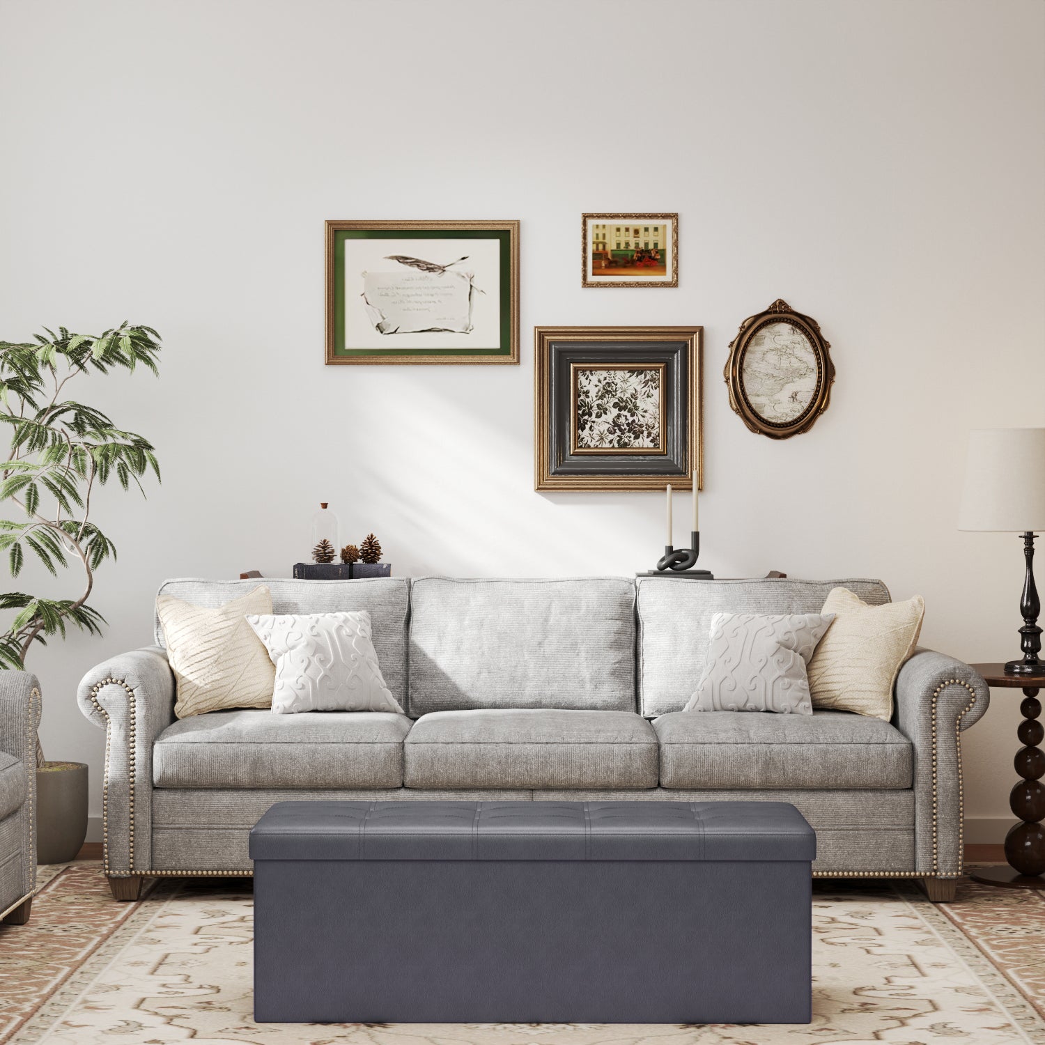 Collection Storage Ottoman - 43" Multi-Functional Bench, 660lb Capacity, 35-Gallon Storage, Synthetic Leather, Dark Gray