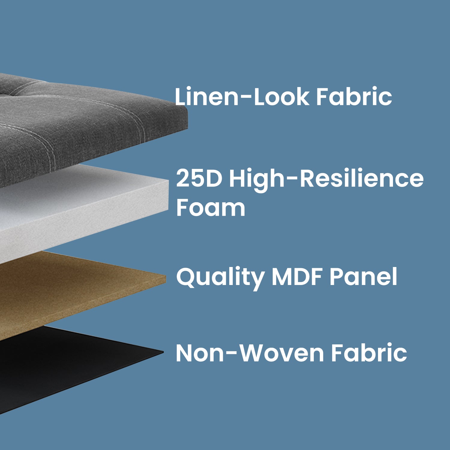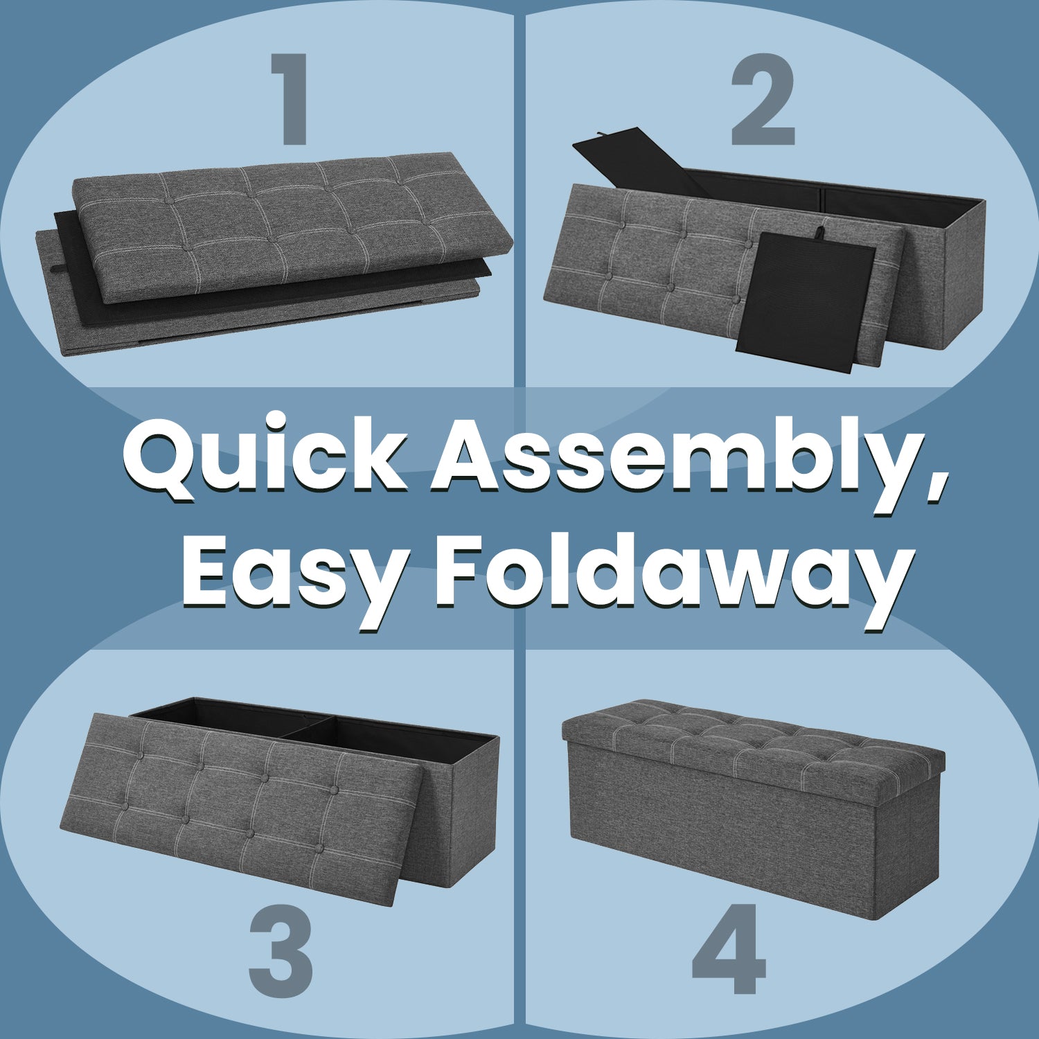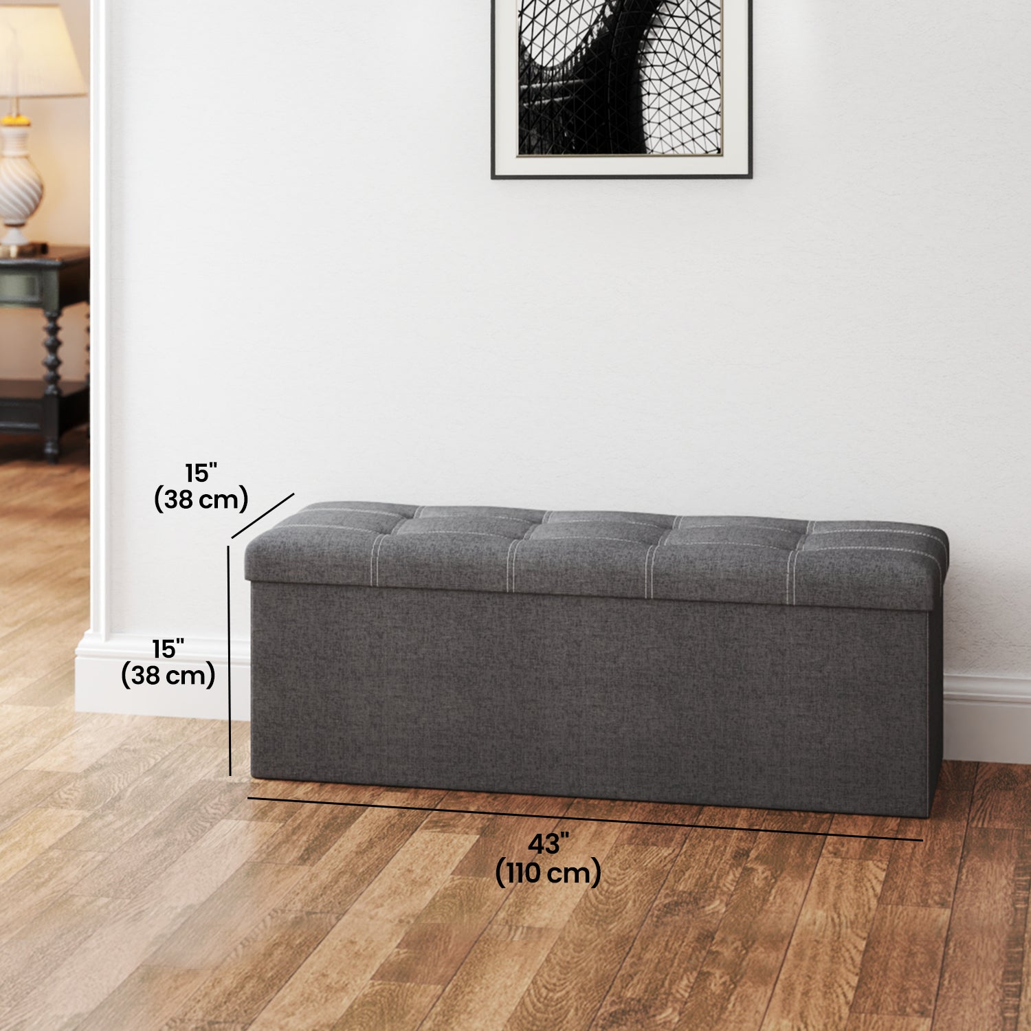 Collection Storage Ottoman Bench, 43" Extra Large 35 Gal Capacity, 660 lb Weight Capacity, Sturdy MDF Frame with Linen-Look Fabric, Multi-Functional for Living Room, Entryway, Bedroom, Dark Gray