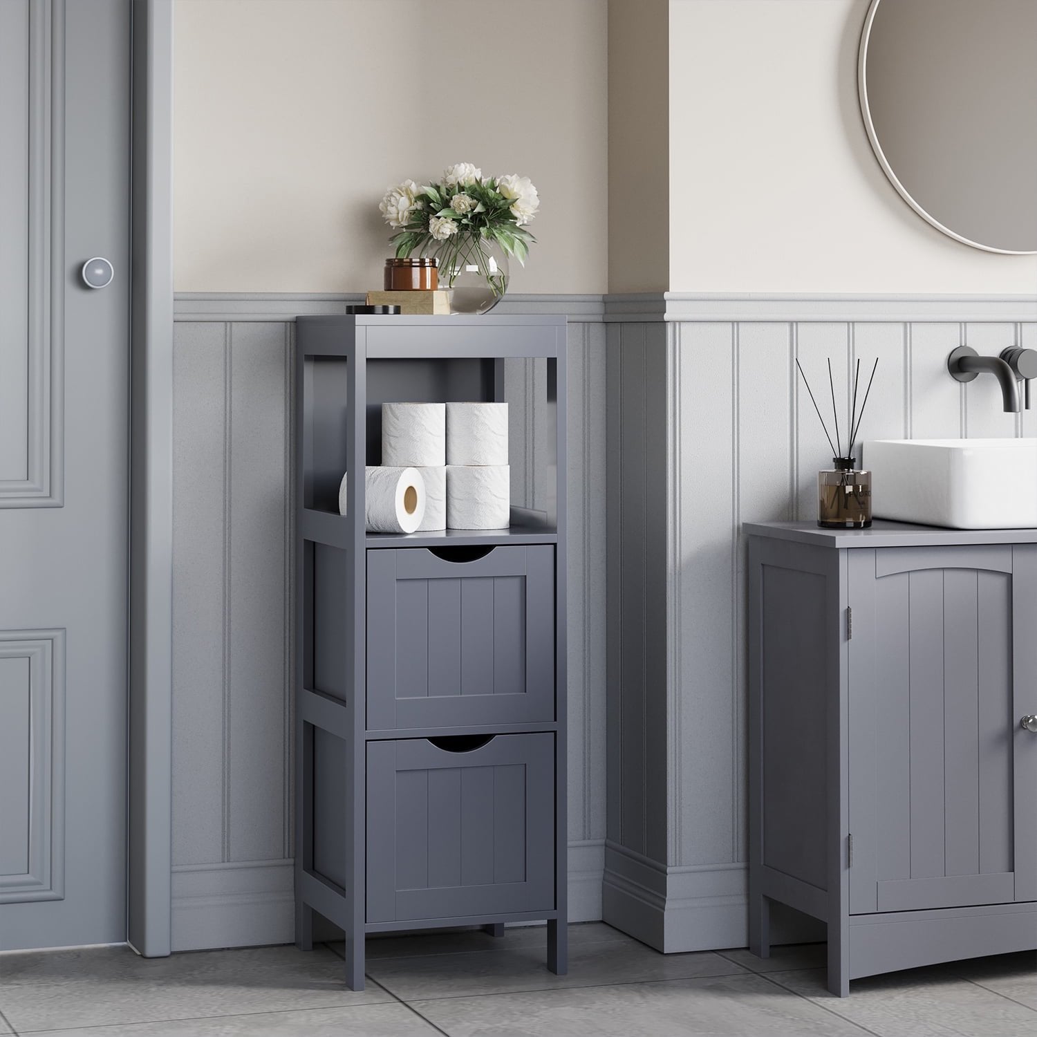 Corner Bathroom Cabinet with 2 Drawers & Open Shelf - 35" Tall Storage Organizer, Freestanding Design, Space-Saving, Grey