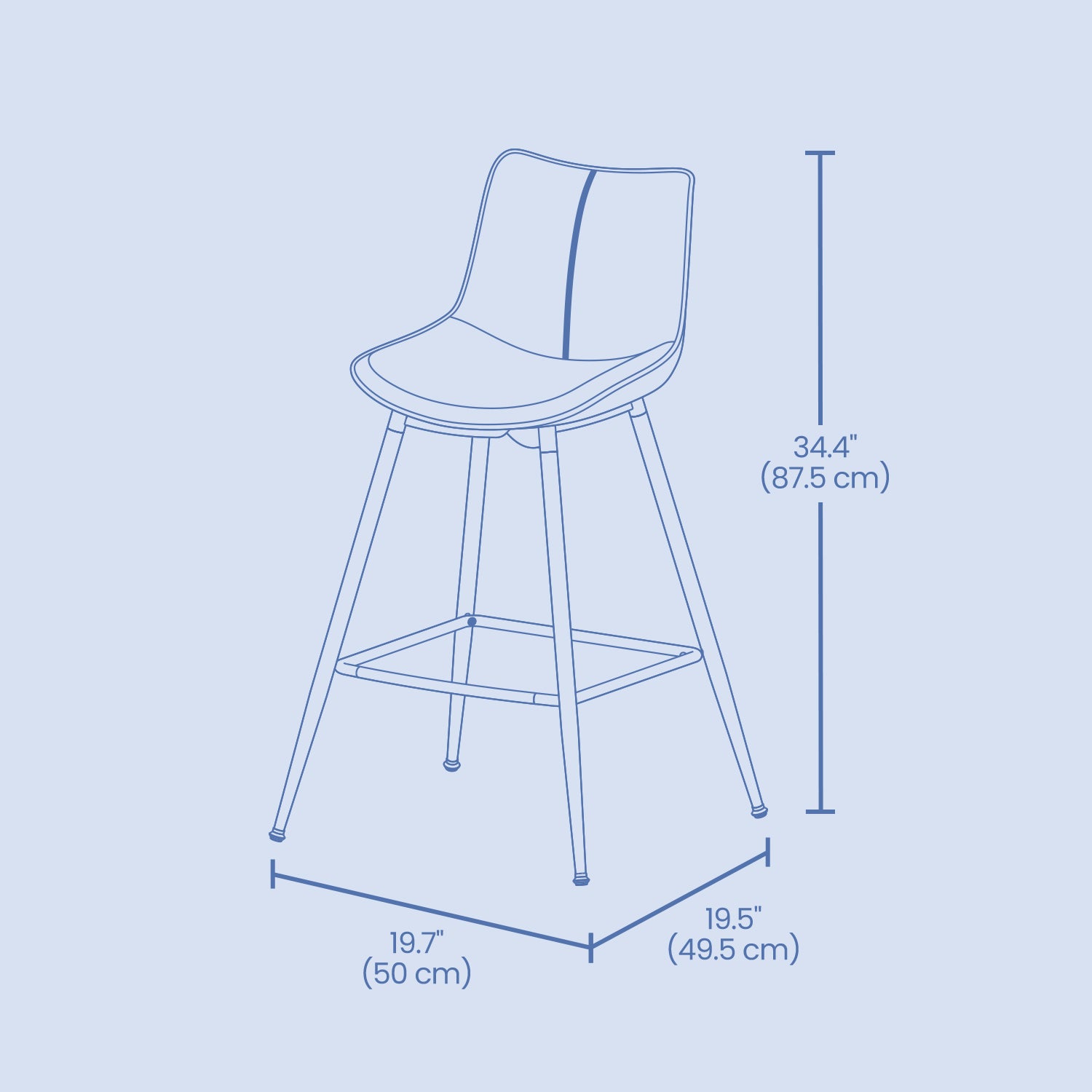 Counter Height Bar Stools Set of 2, Ergonomic Backrest & Synthetic Leather Seat, Sturdy Steel Frame, Swivel Leveling Feet, for Kitchen Island,Home Bar, Ink Black