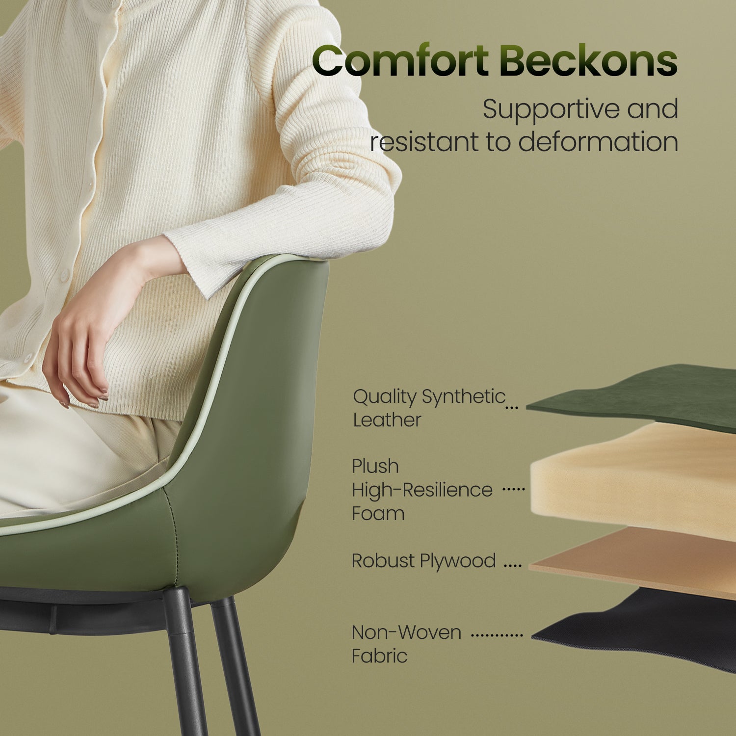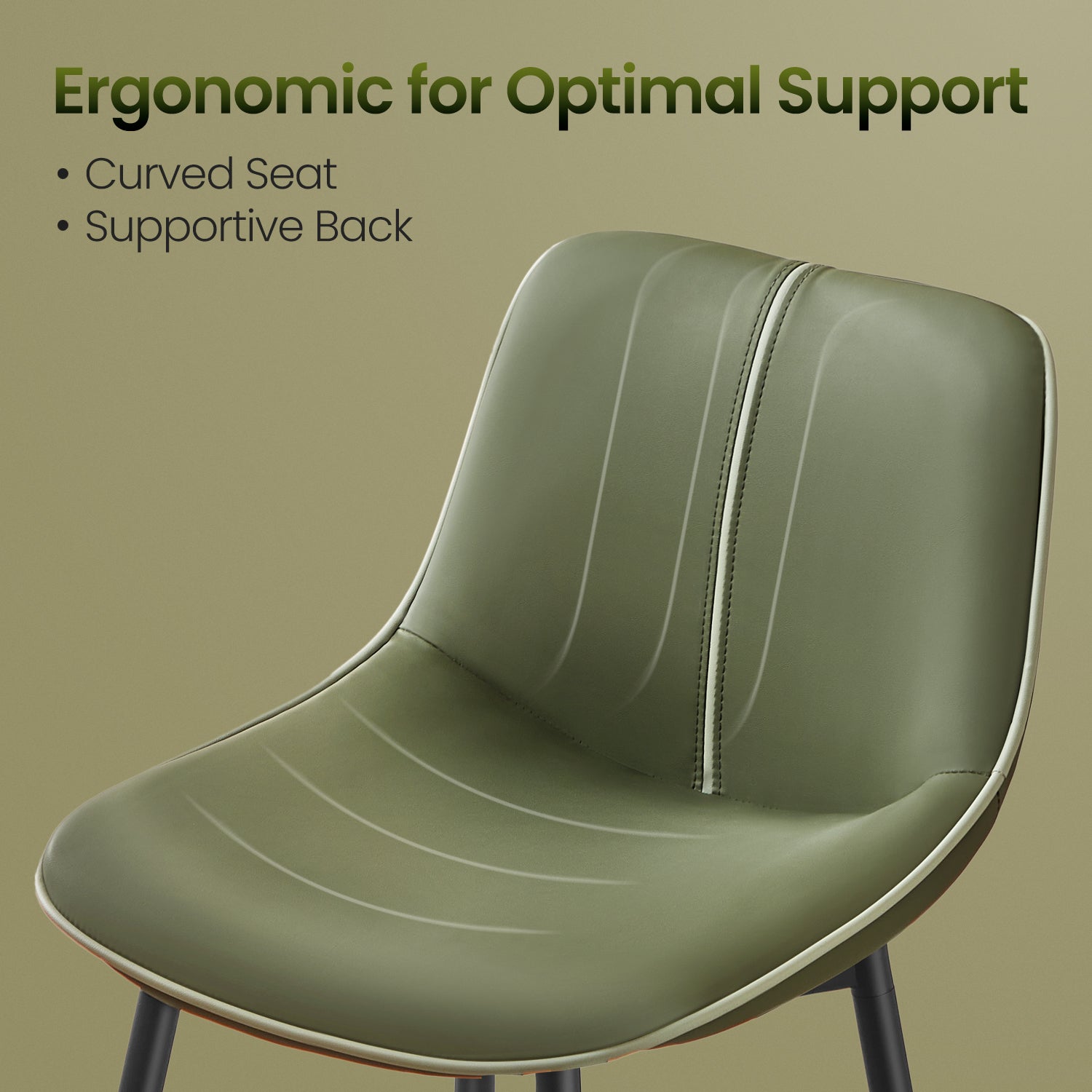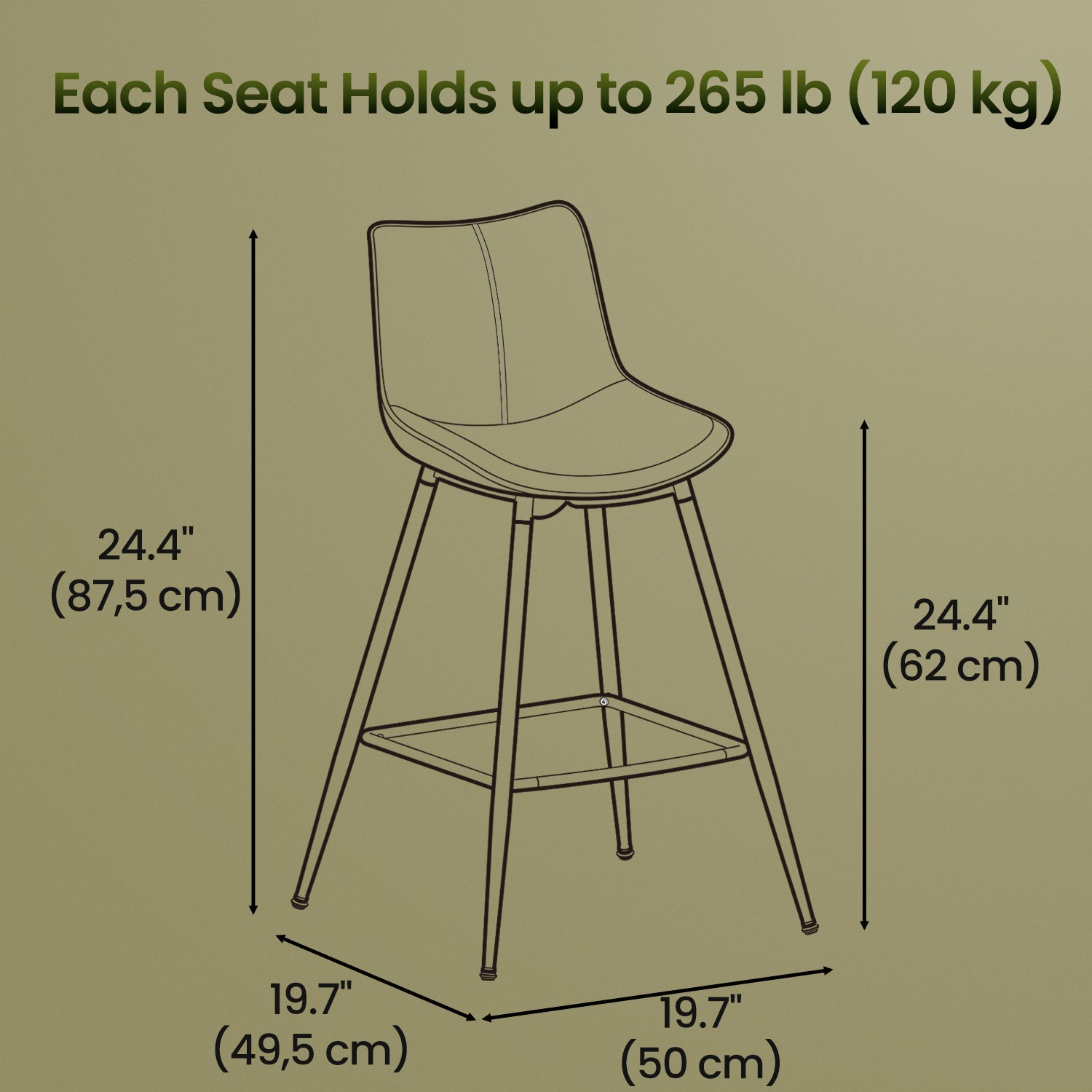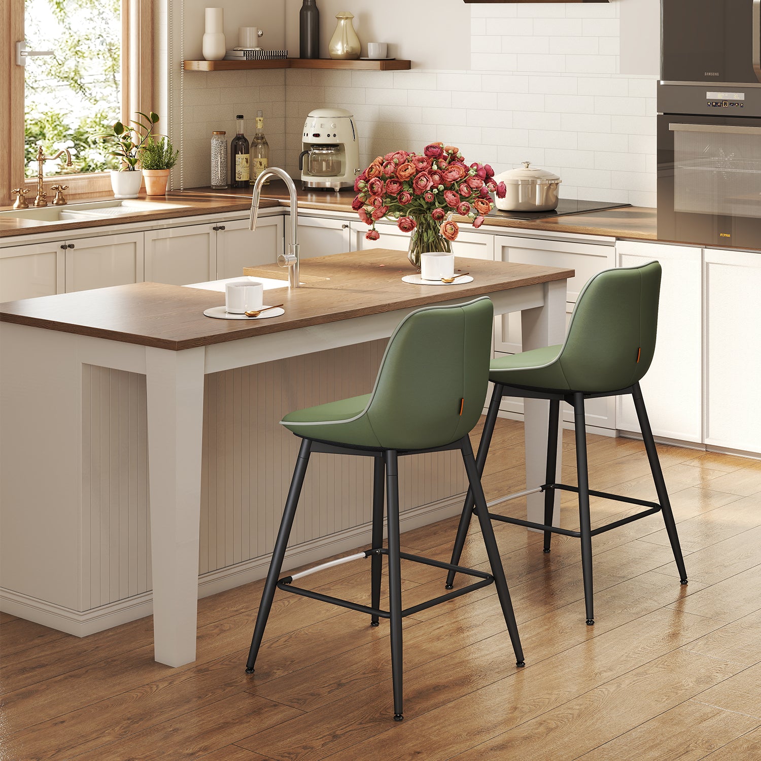 Counter Height Bar Stools Set of 2 with Ergonomic Backrest, Synthetic Leather Seat, Sturdy Metal Legs & Leveling Feet for Kitchen Island, Home Bar – Forest Green