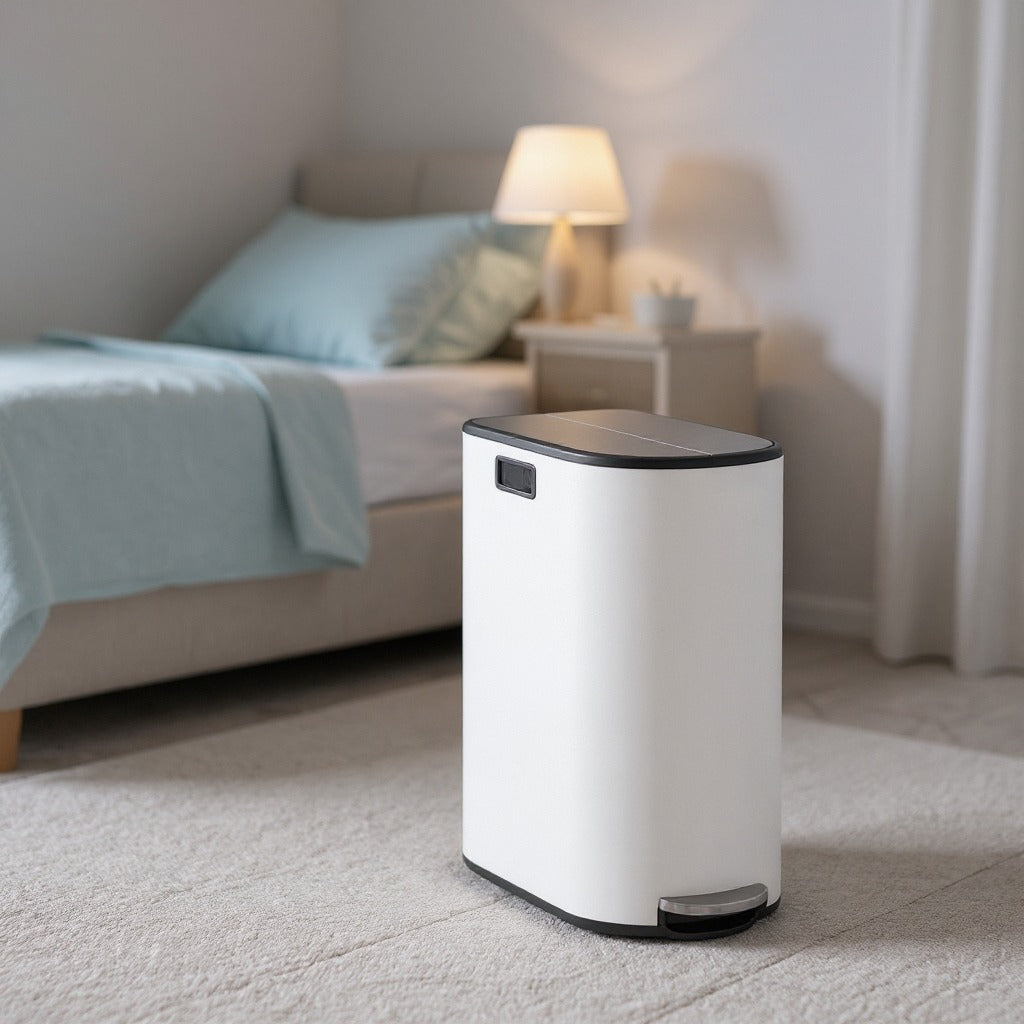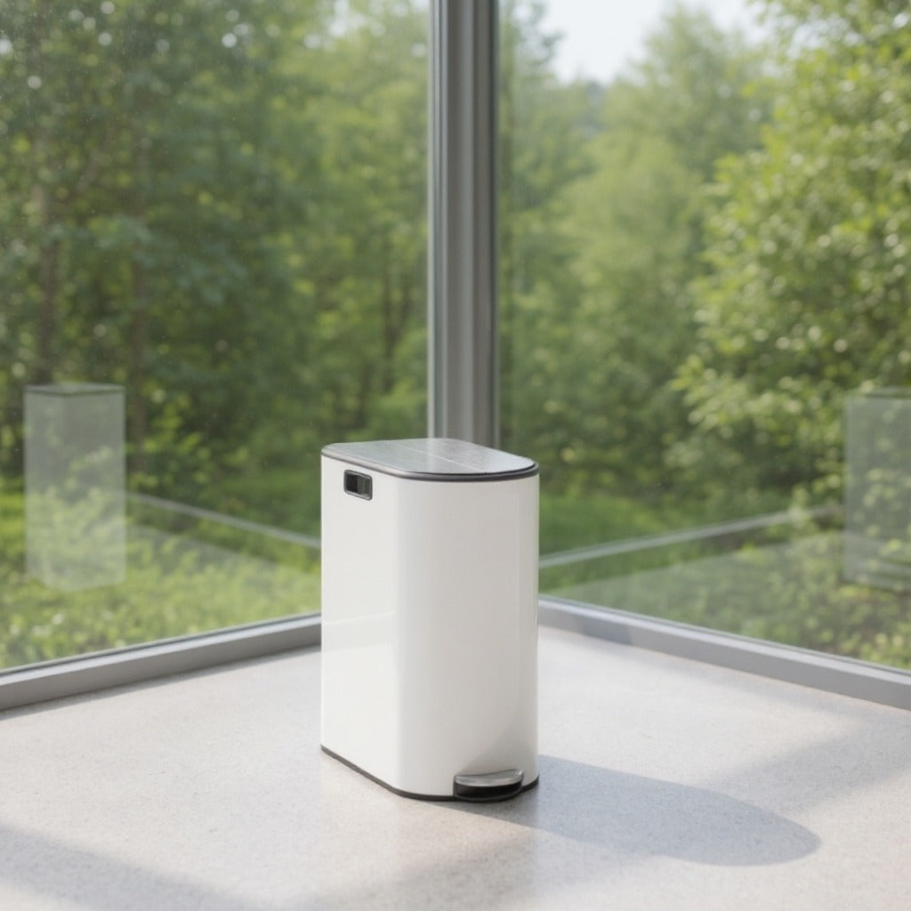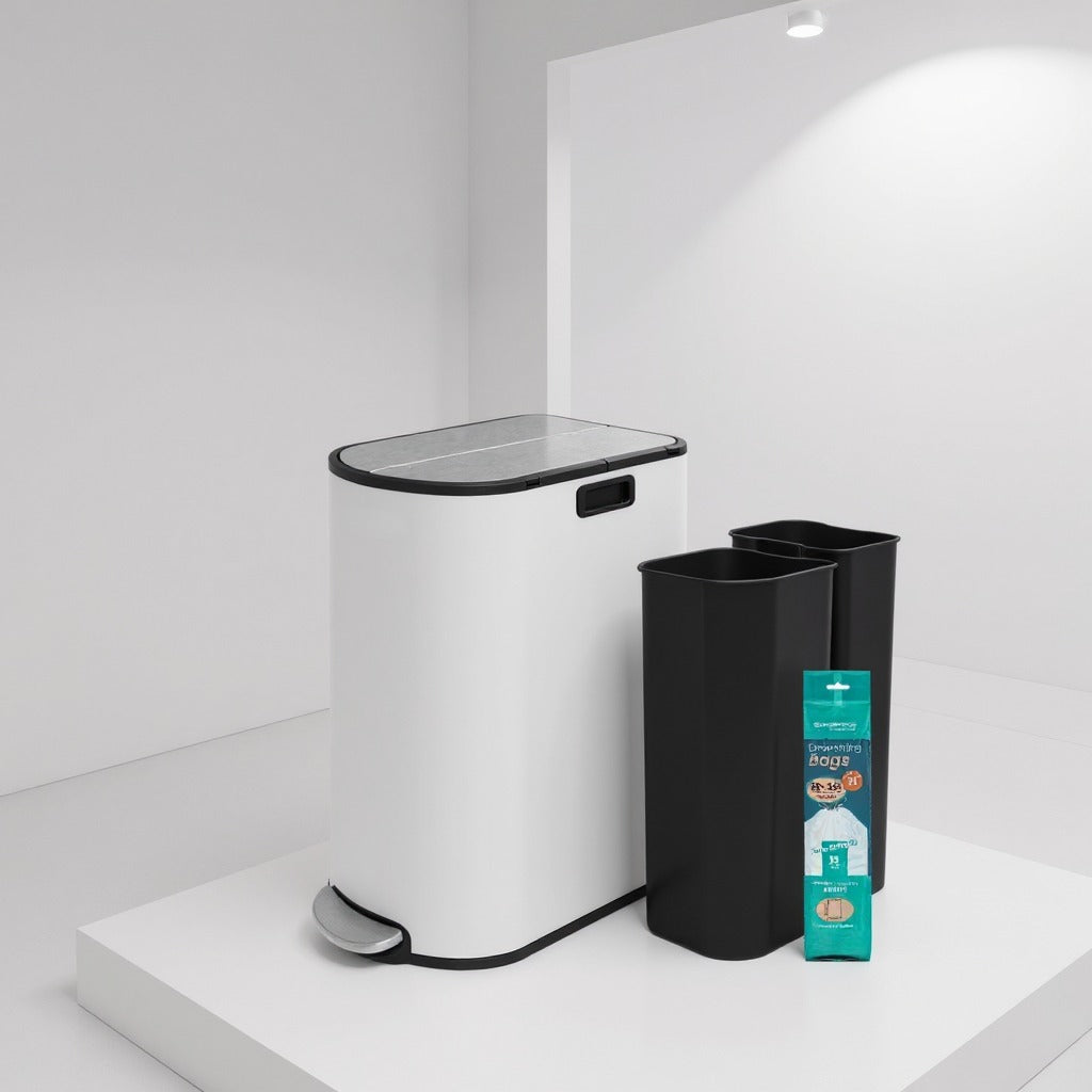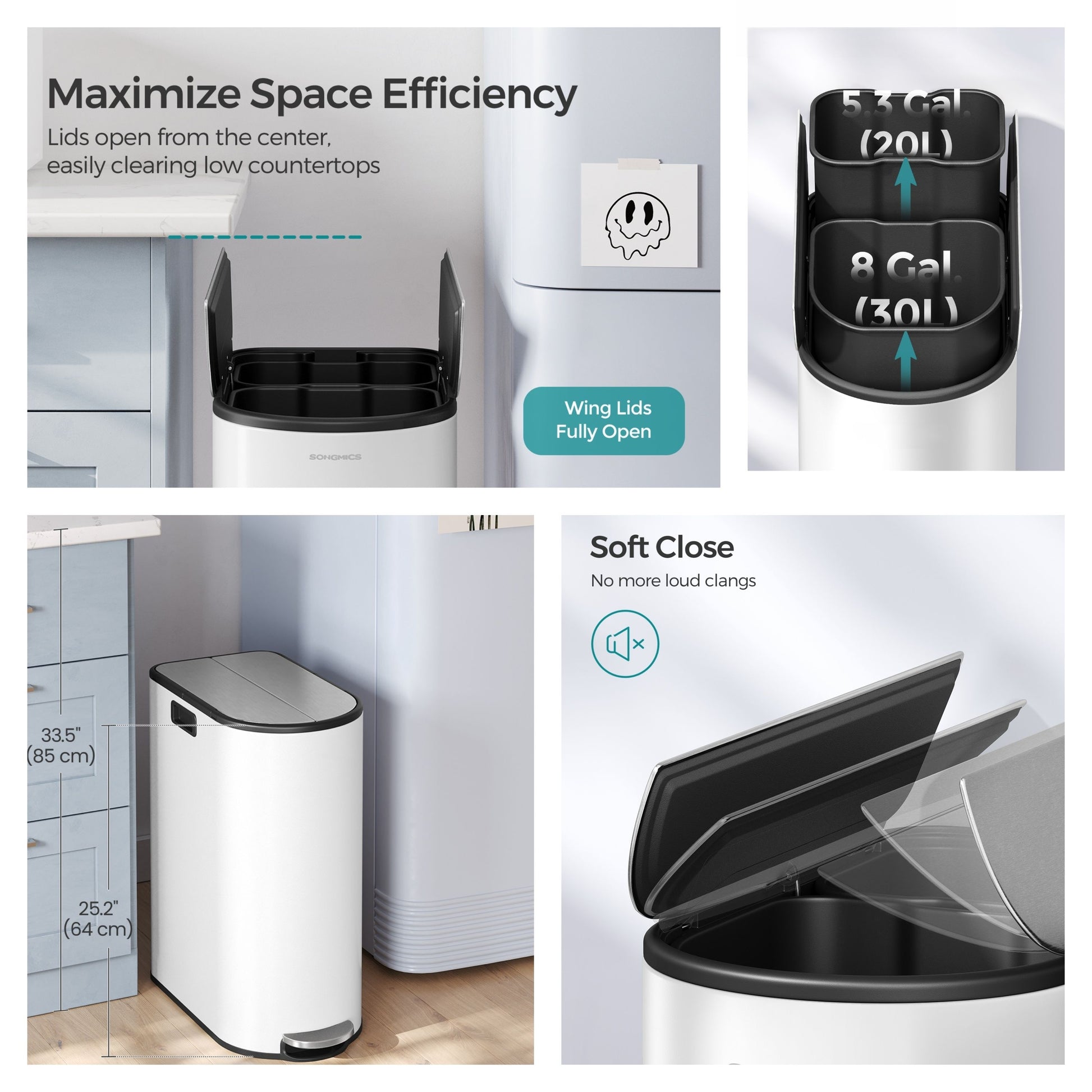 Dual Compartment Kitchen Trash Can, 13-Gallon Wing Lid Recycling Bin, Soft-Close & Dog-Proof Design - Stainless Steel,Cloud White and Metallic Silver