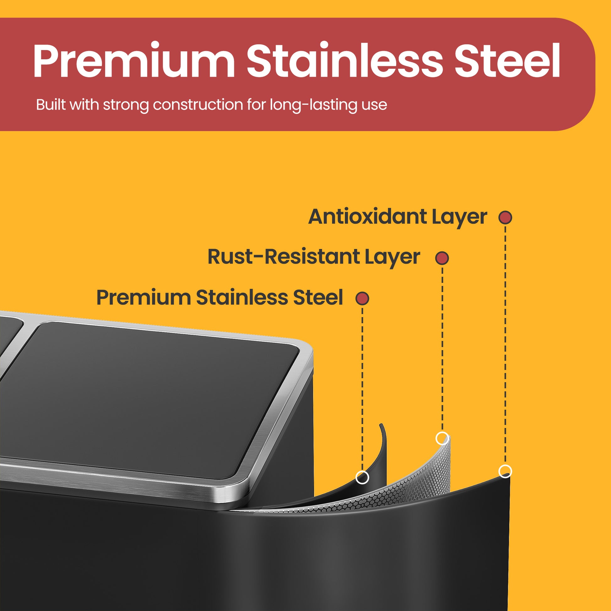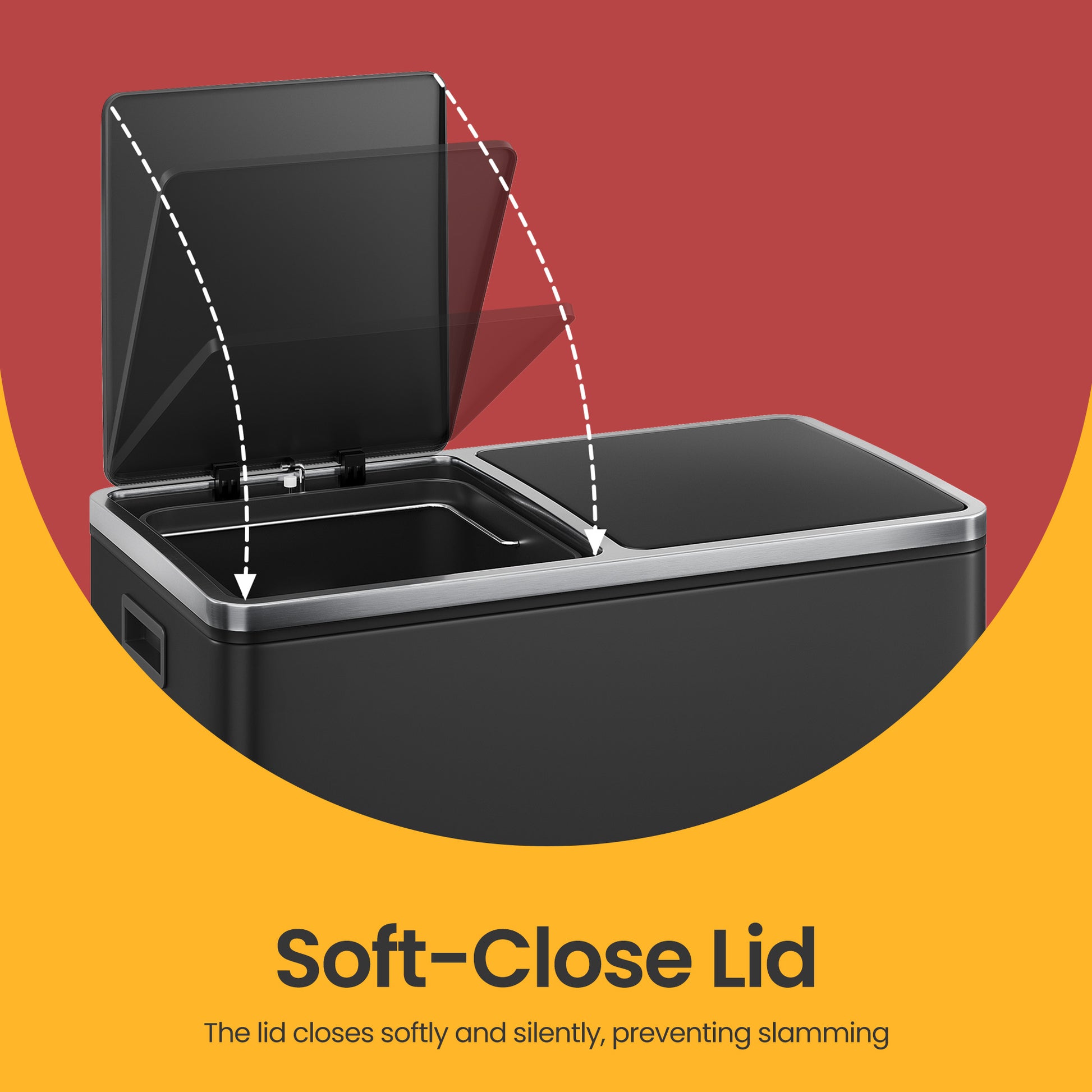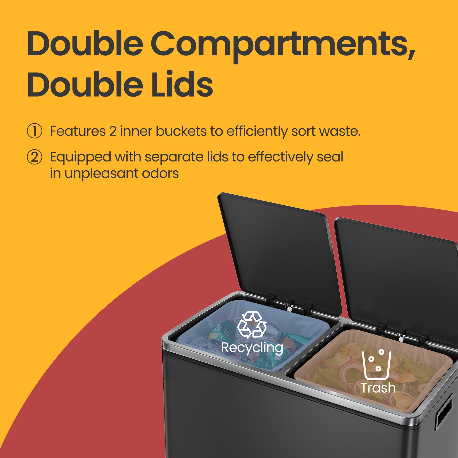 Dual Compartment Kitchen Trash Can, 2x8 Gallon Step Bin with Inner Buckets & Soft-Close Lid, Includes 15 Trash Bags,Black