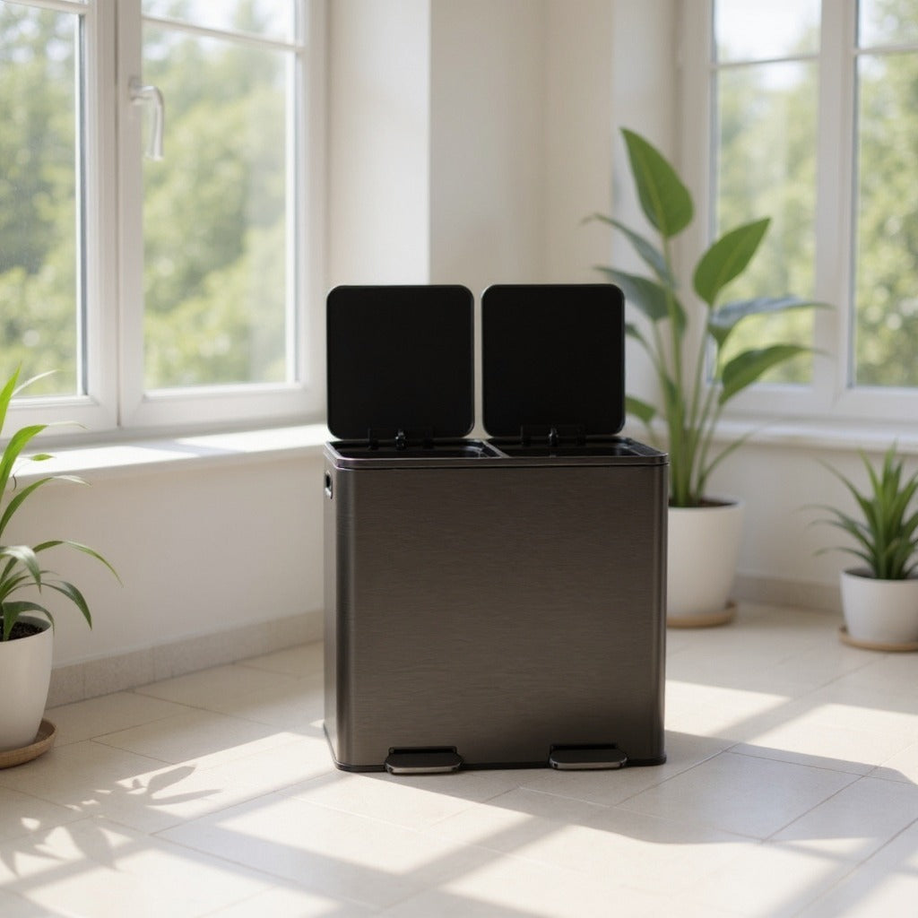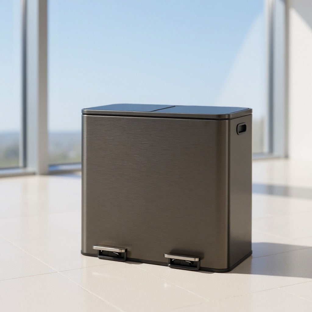 Dual Compartment Step Trash Can, 2 x 10.6-Gallon Kitchen Garbage Bin with Pedal, Inner Buckets, Hinged Lids and Trash Bags Included, Slate Gray