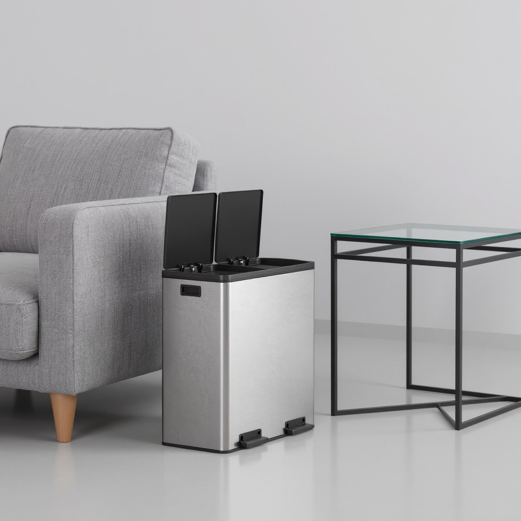 Dual Compartment Trash Can 2 x 30L, with 15 Liners, Metal Pedals, Inner Buckets, Soft-Close Lid, for Kitchen Recycling, Argent et Noir