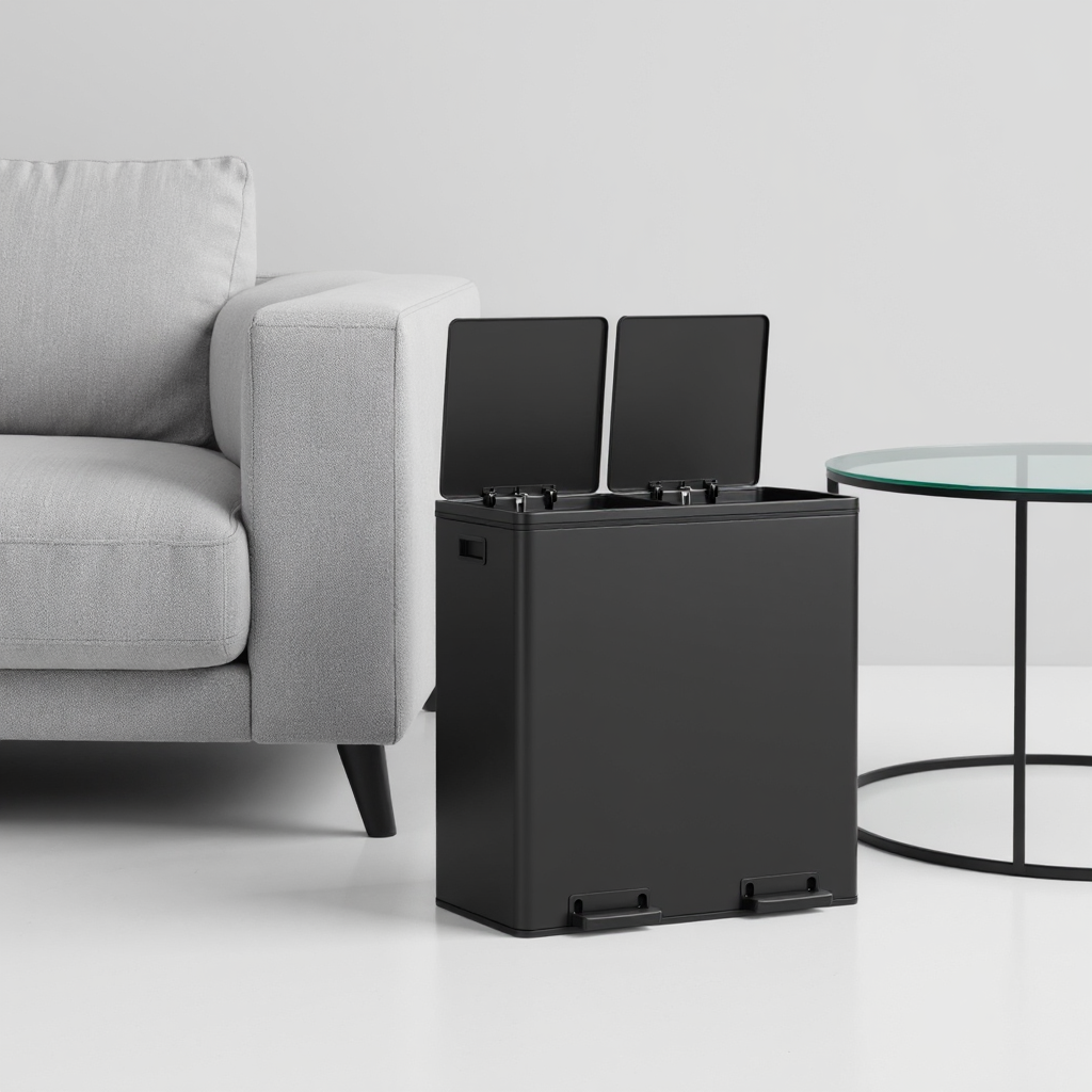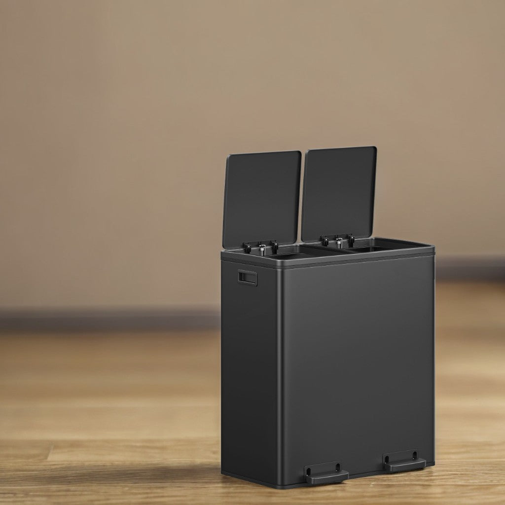 Dual Compartment Trash Can 2 x 30L, with 15 Liners, Metal Pedals, Inner Buckets, Soft-Close Lid, for Kitchen Recycling, Black