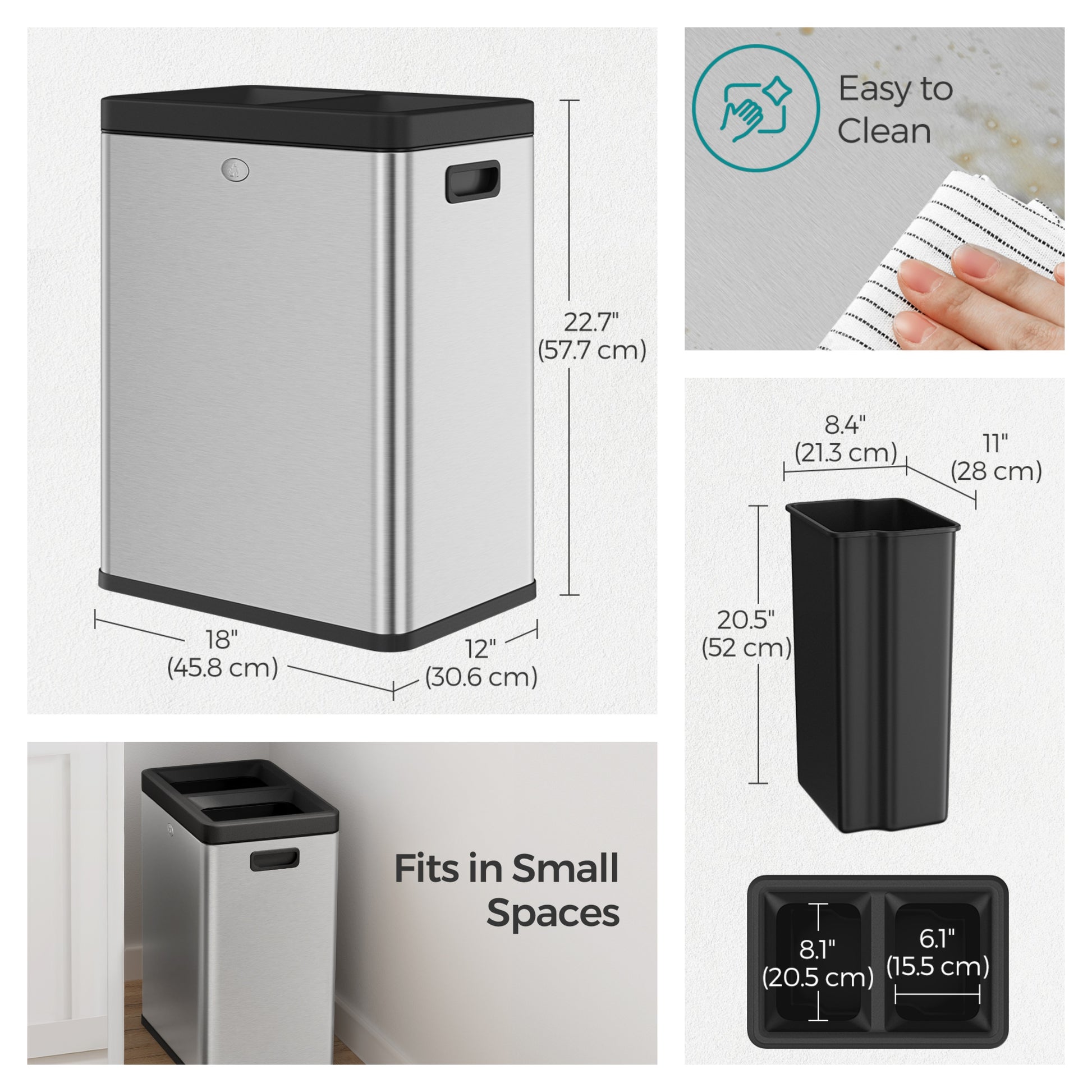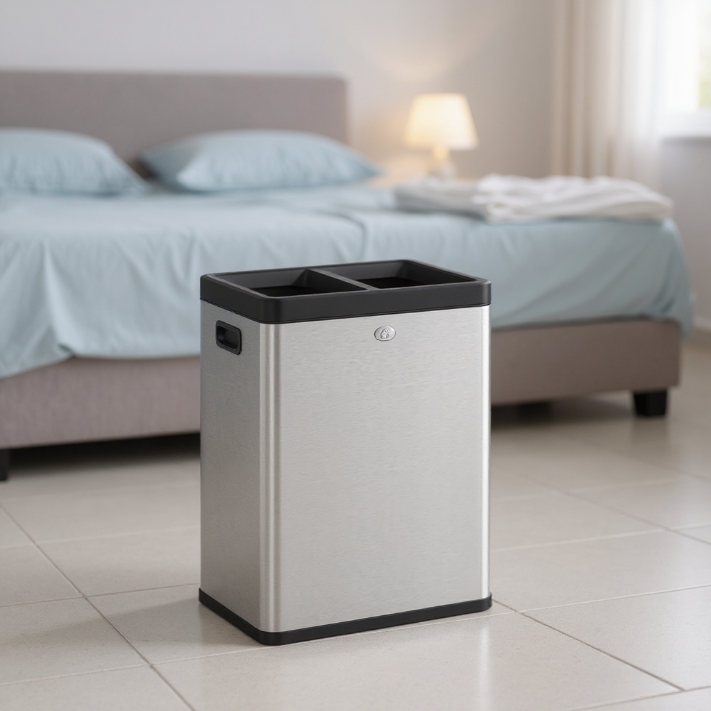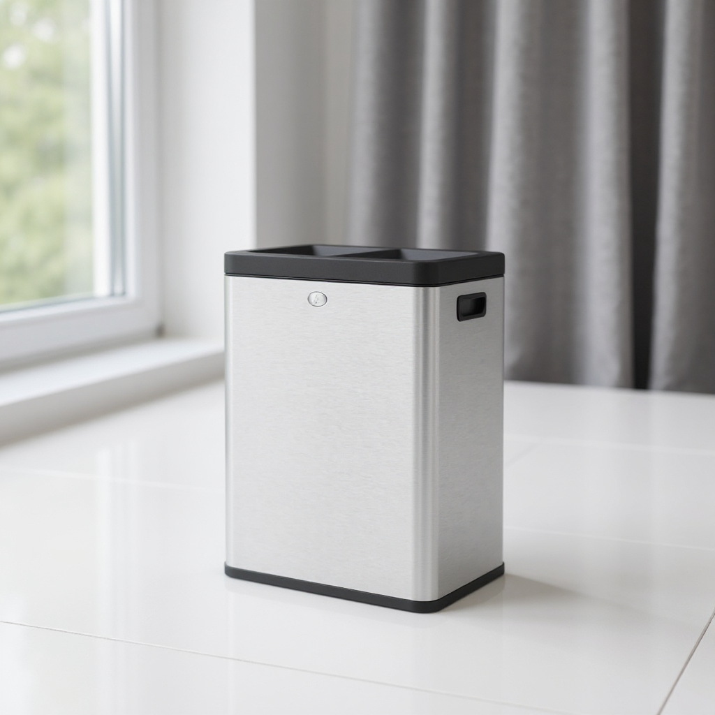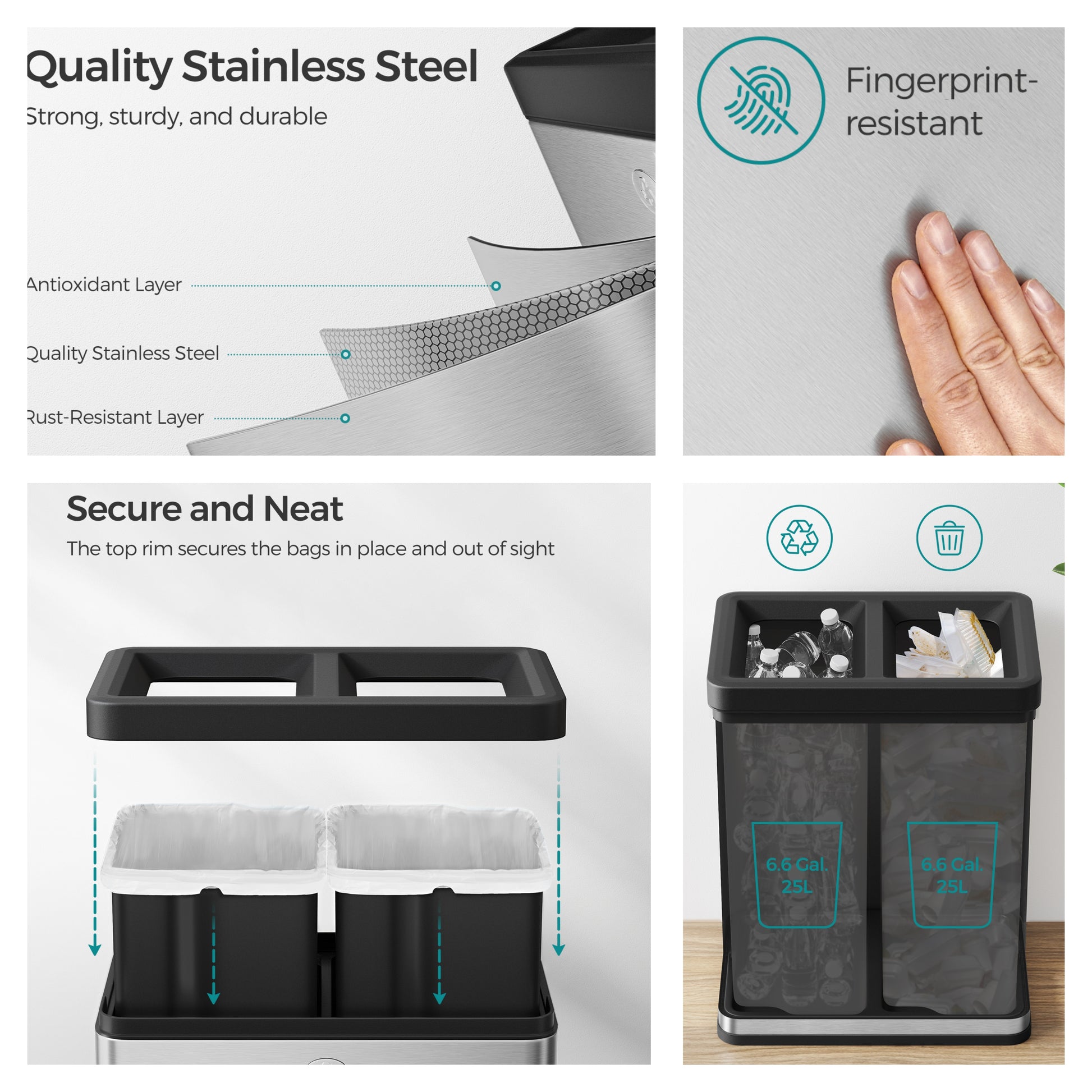 Dual Compartment Trash Can, 2 x 6.6-Gallon Open Top Recycling Bin, Stainless Steel Waste Separator for Office Restaurant Use,Silver