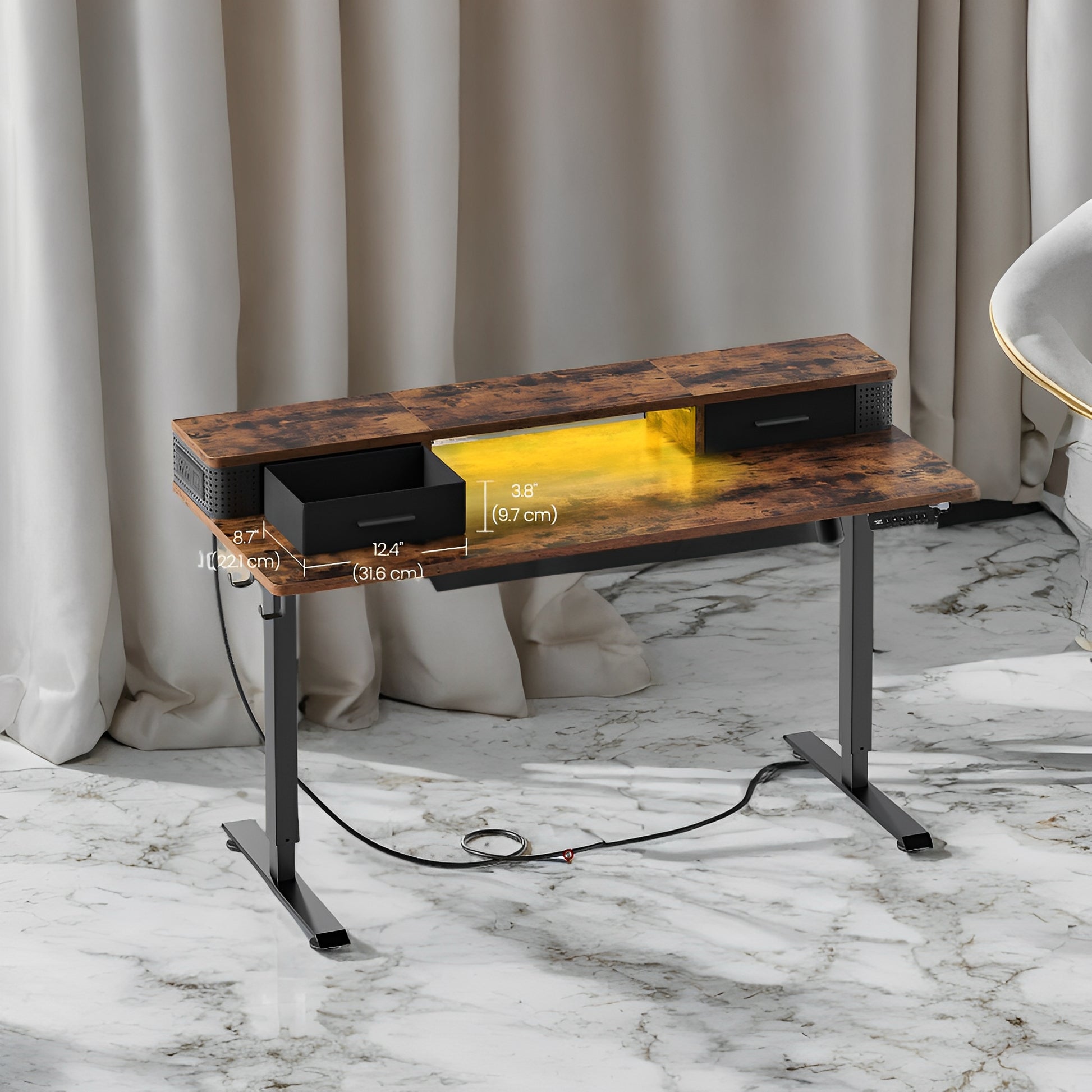 Electric Standing Desk with LED Lights & USB Ports, 55.1" Adjustable Height Office Desk with 3 Memory Presets, Storage Drawers, Rustic Brown