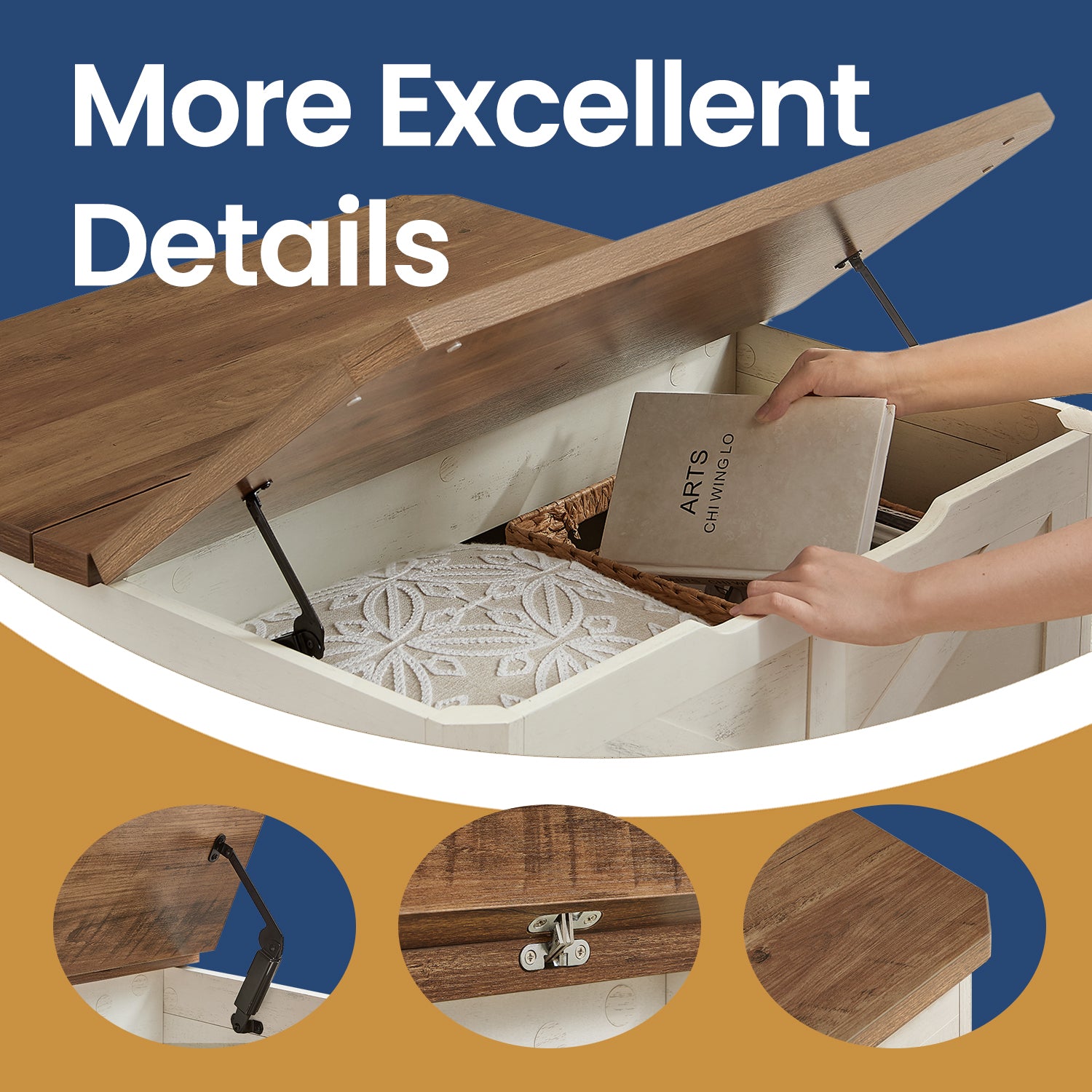Farmhouse Square Coffee Table with Flip-Top Storage, 31.5" Rustic Center Table for Living Room, Honey Brown and White