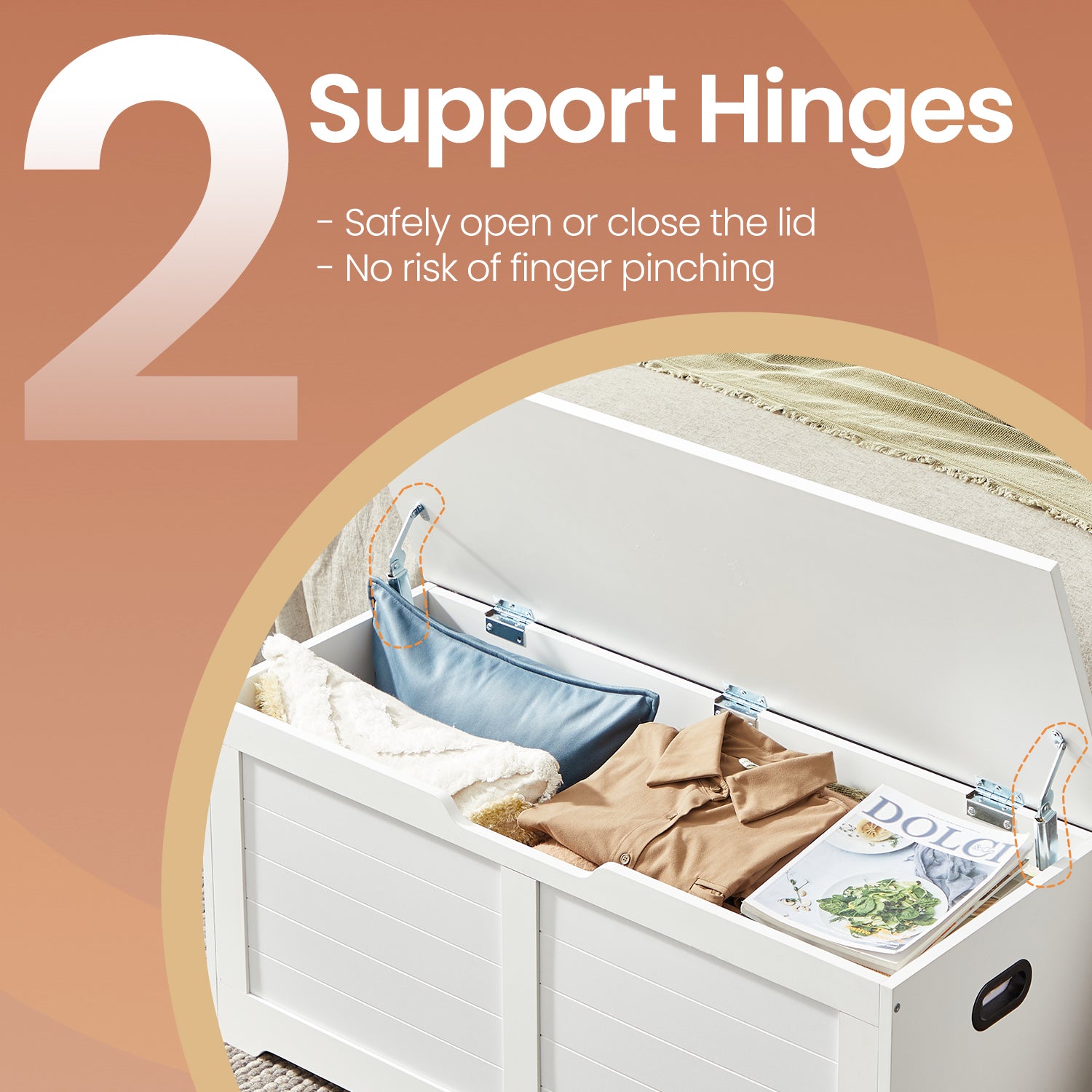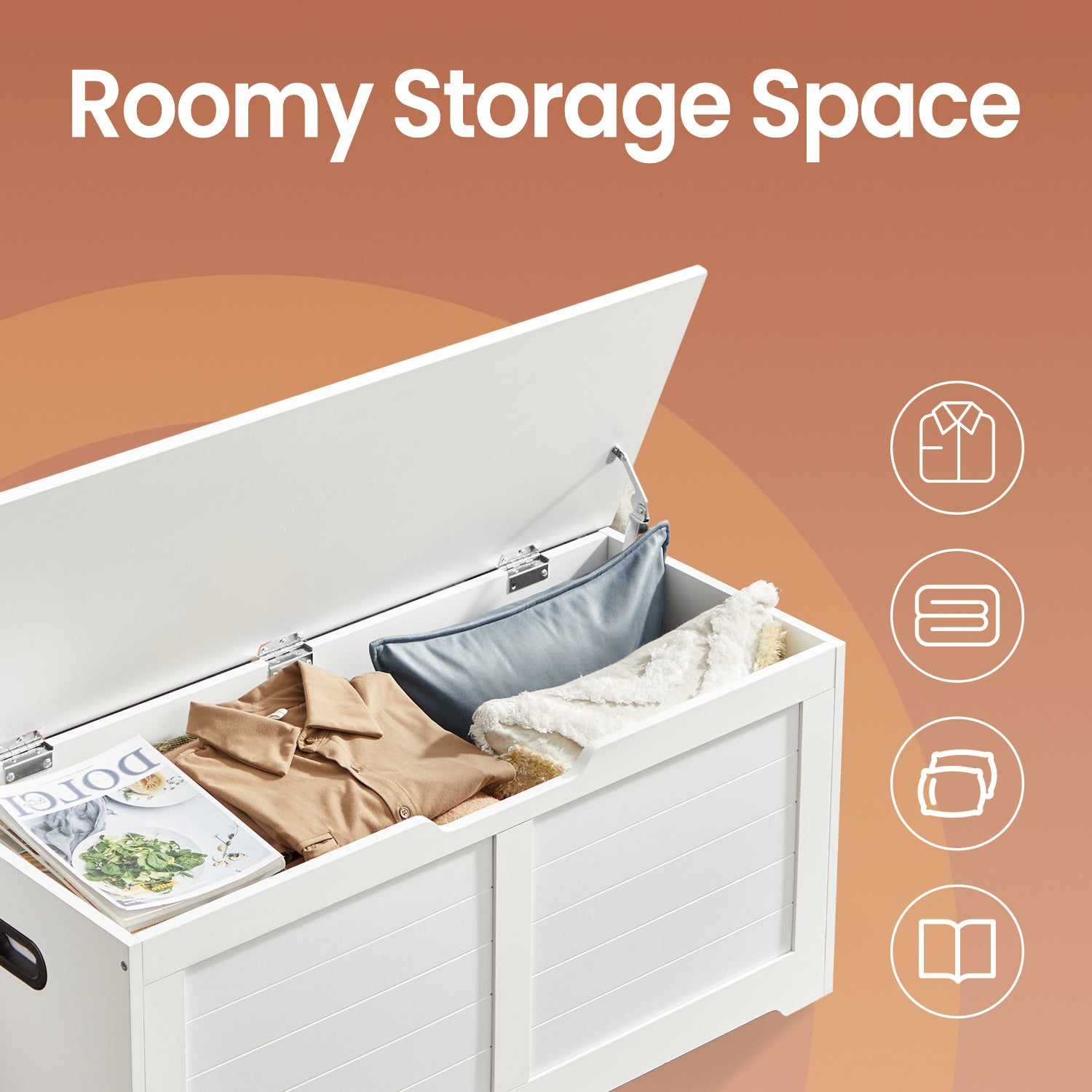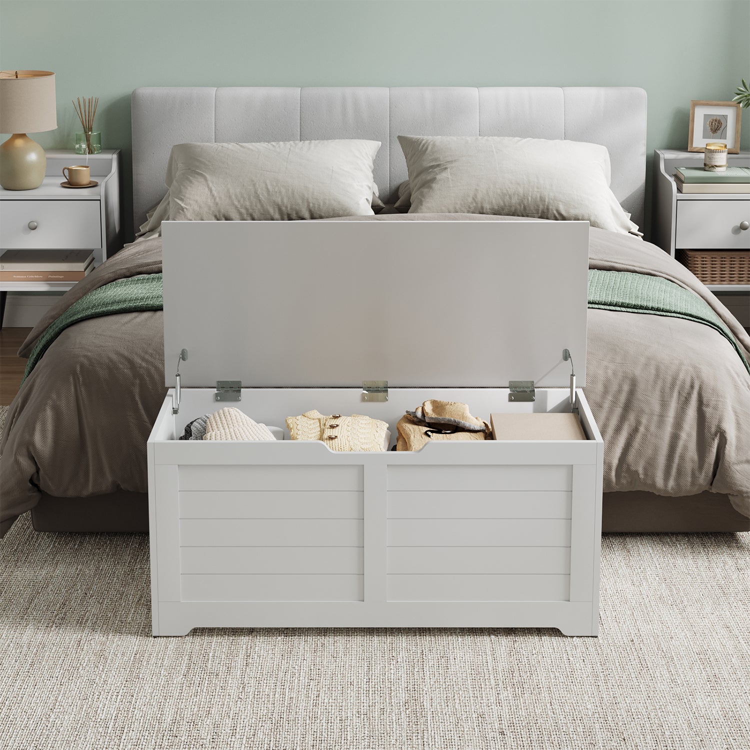 Farmhouse Storage Bench with Safety Hinges, 300lb Weight Capacity, Entryway Organizer, Easy Assembly, Cloud White
